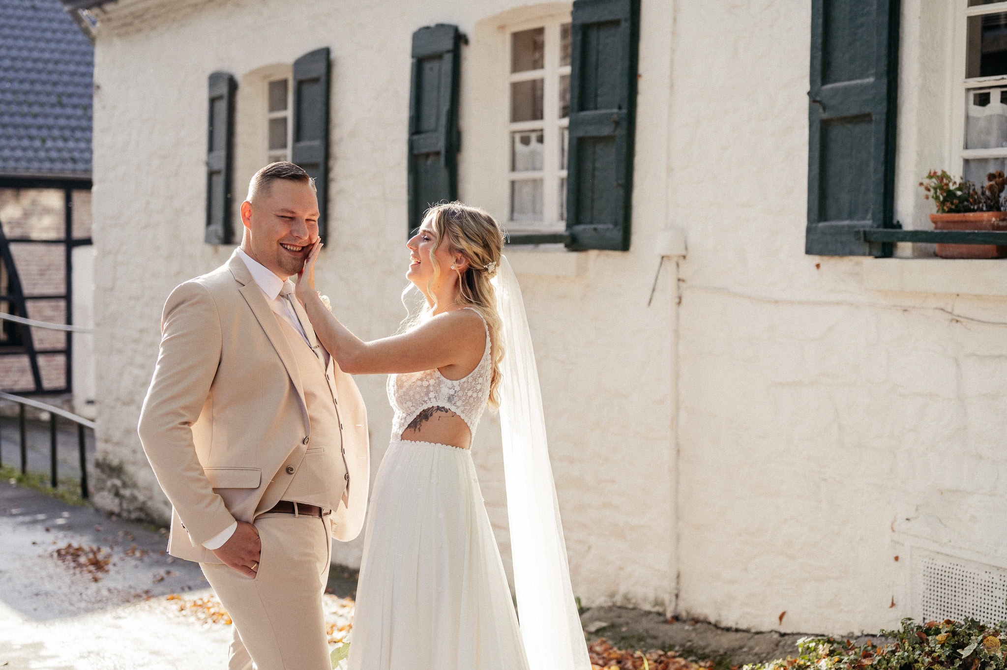 Ein weiterer großer Vorteil eines After-Wedding-Shootings ist die völlige Freiheit bei der Wahl der Location. Ihr müsst Euch nicht an den Ablauf des Tages anpassen, nicht in der Nähe der Location bleiben und keine Kompromisse eingehen. Ob in der Natur, am Wasser, in der Altstadt von Ratingen oder an einem Ort, der für Euch eine ganz besondere Bedeutung hat – wir begleiten Euch genau dorthin, wo Ihr Euch wohlfühlt. Auch Ziele außerhalb von NRW sind problemlos möglich. So entstehen nicht nur wunderschöne Bilder, sondern Erinnerungen mit echtem emotionalem Wert, die Eure Geschichte widerspiegeln.