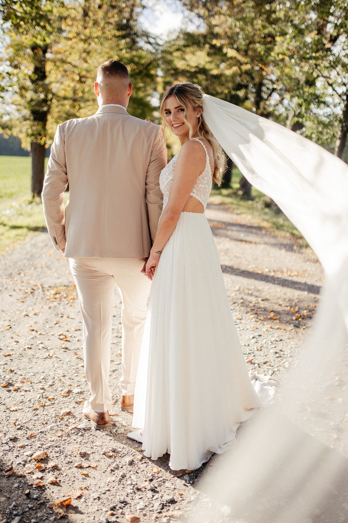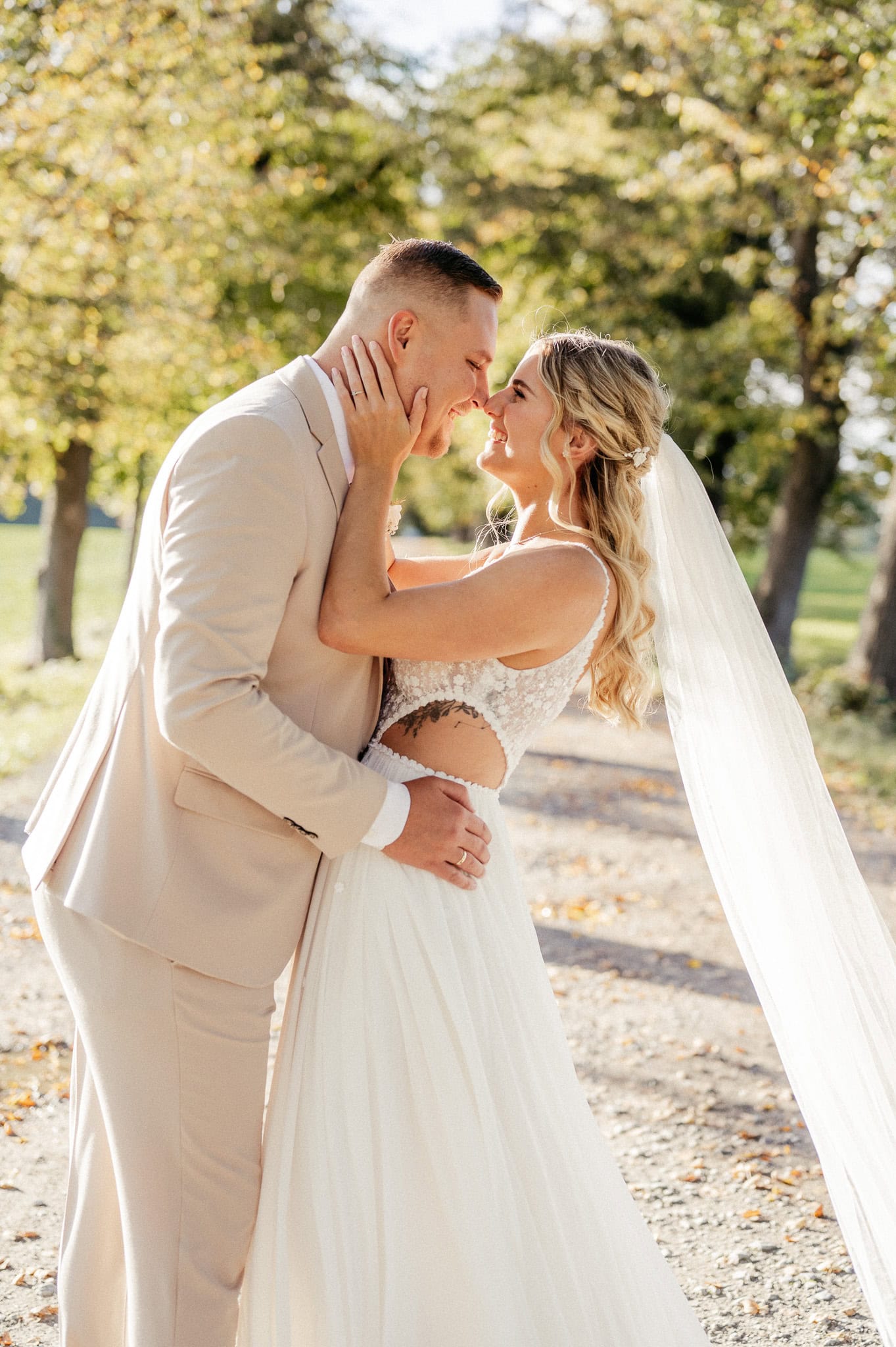 Viele unserer Paare genießen es besonders, sich für das After-Wedding-Shooting noch einmal in ihr Hochzeitsoutfit zu werfen. Das Kleid. Der Anzug. Dieses besondere Gefühl. Alles darf noch einmal strahlen – ganz ohne Aufregung. Vielleicht möchtet Ihr Euer Outfit mit einem neuen Styling kombinieren, andere Accessoires wählen oder Euch bewusst für einen lockeren Look entscheiden. Genau das macht das Shooting so individuell.