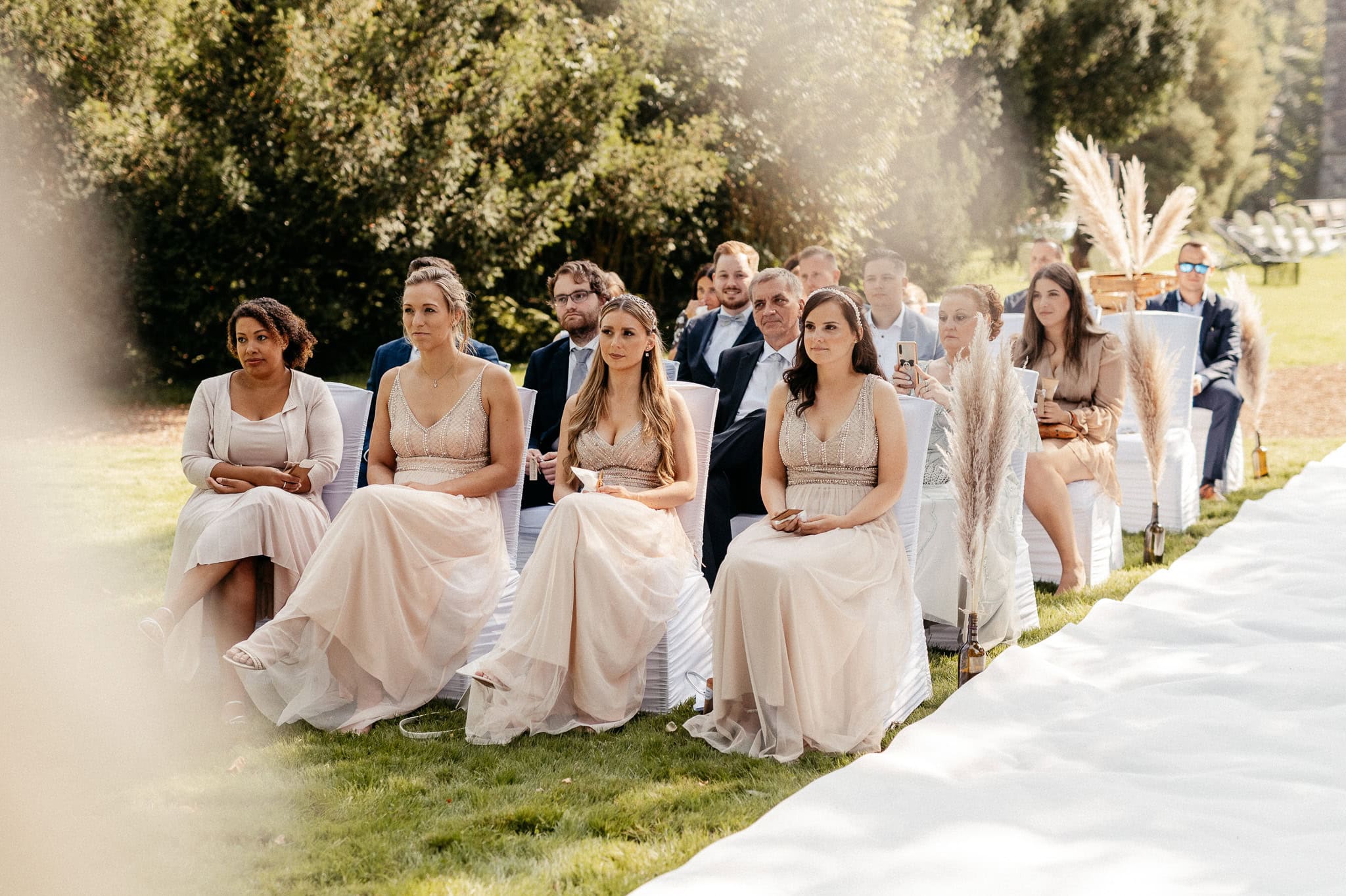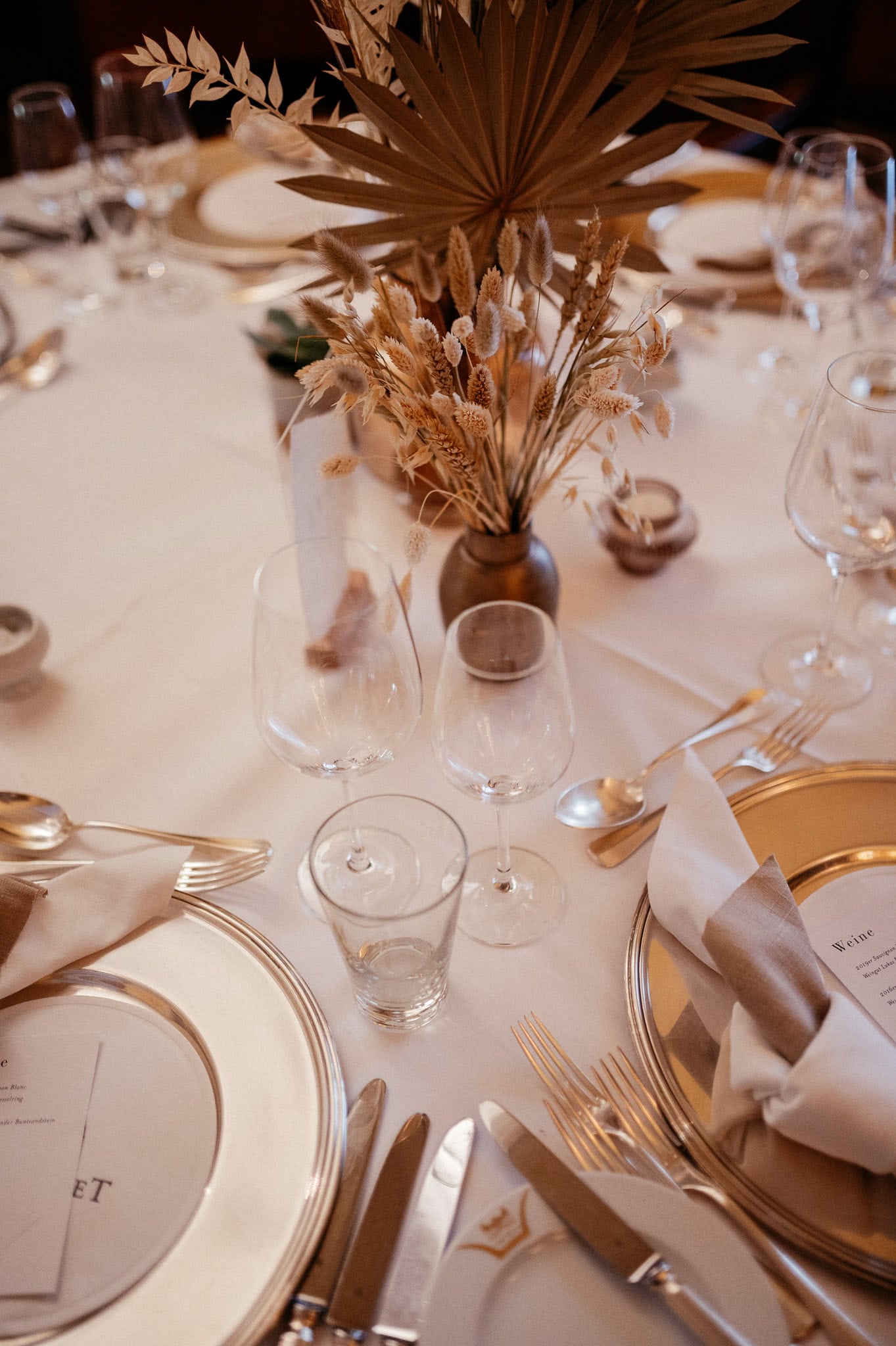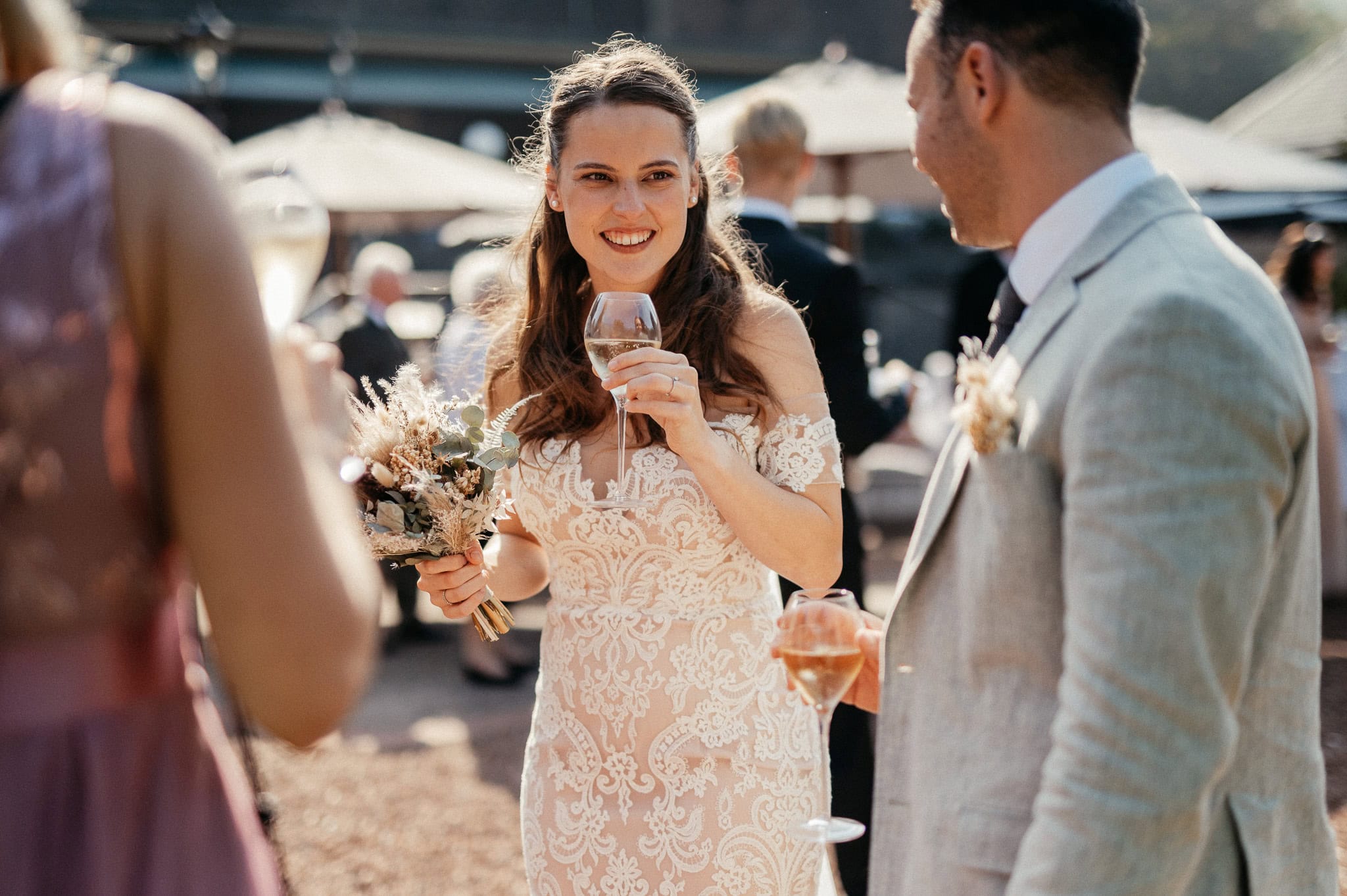 Ob die Tischdekoration mit cremefarbenen Trockenblumen oder die Candy Bar, an der man unmöglich einfach vorbeigehen konnte – überall gab es etwas zu entdecken. Und dann stand da plötzlich auch noch eine „Dosenwerfen“-Station für die Hochzeitsgäste. Natürlich wurde sie direkt getestet. Nicht nur von den kleinen Gästen.