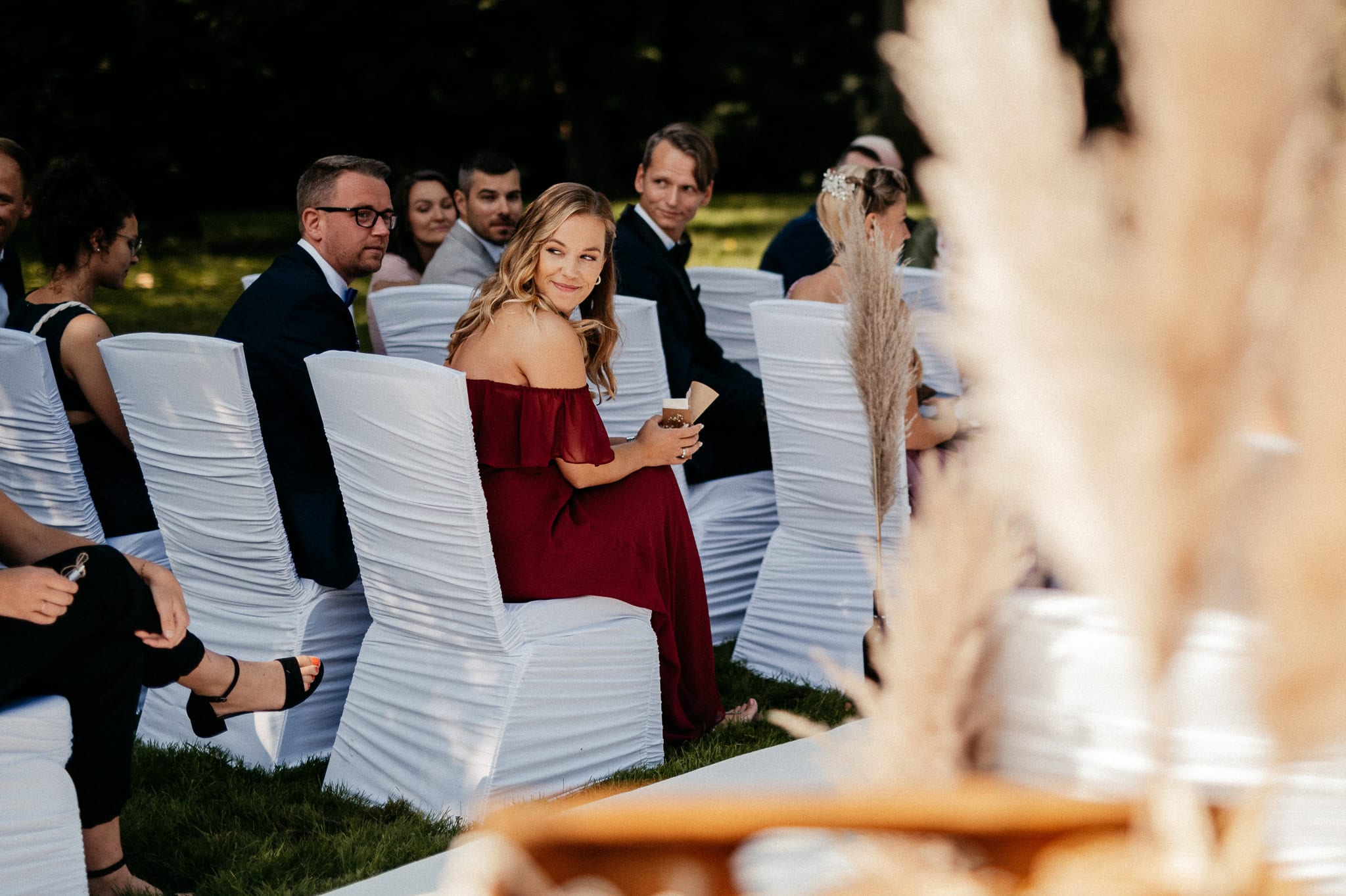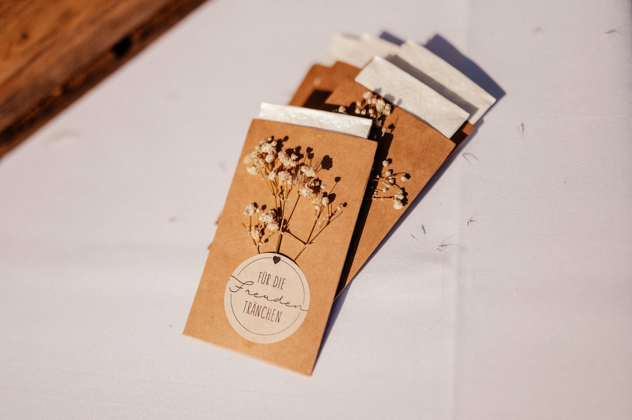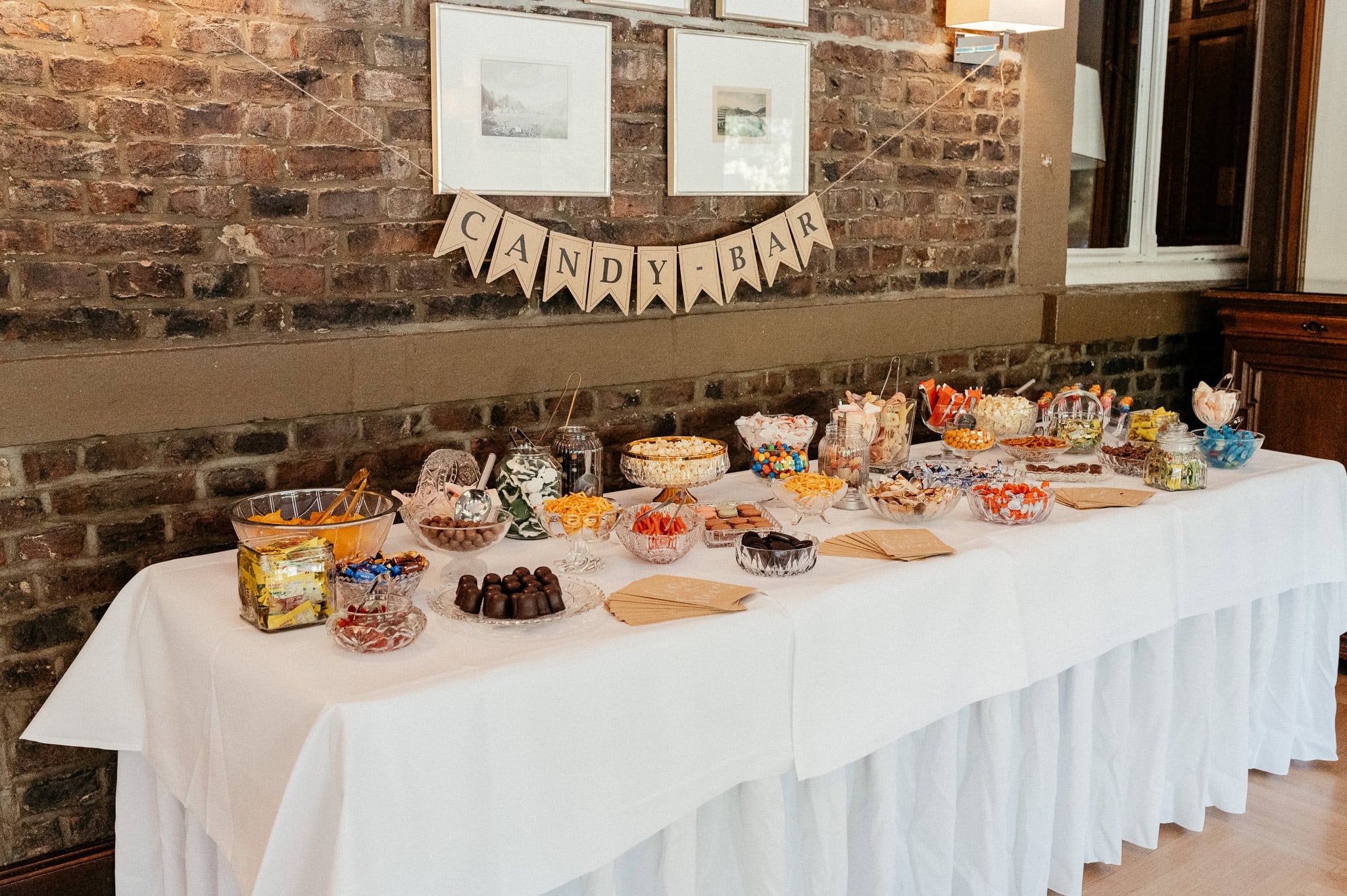 Ob die Tischdekoration mit cremefarbenen Trockenblumen oder die Candy Bar, an der man unmöglich einfach vorbeigehen konnte – überall gab es etwas zu entdecken. Und dann stand da plötzlich auch noch eine „Dosenwerfen“-Station für die Hochzeitsgäste. Natürlich wurde sie direkt getestet. Nicht nur von den kleinen Gästen.