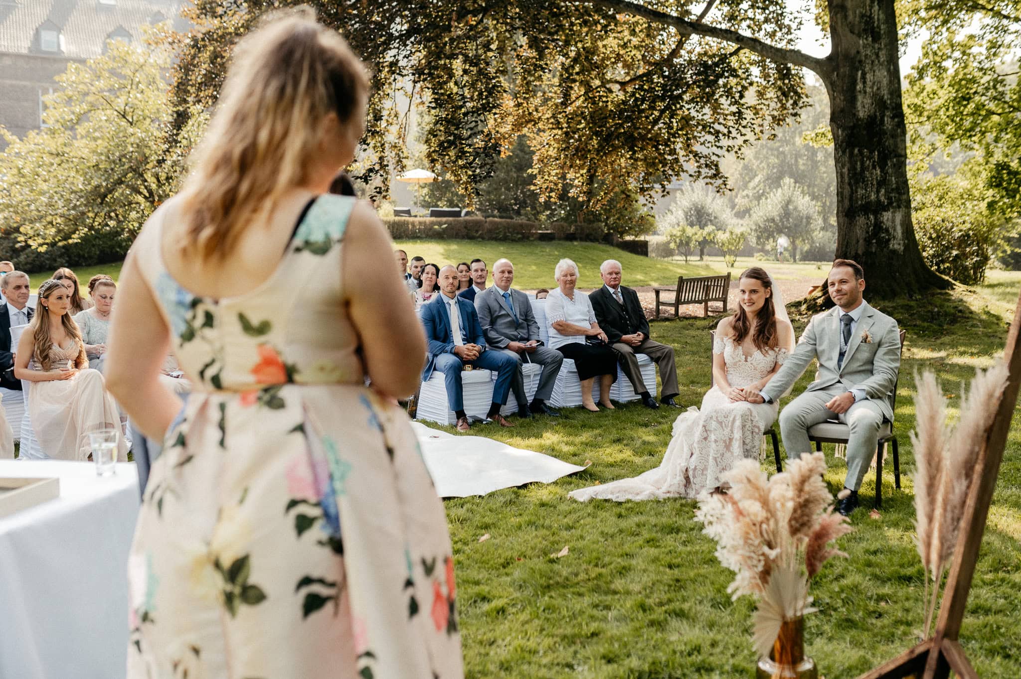 Kathi und Marcel haben ihre Hochzeit inklusive freier Trauung auf dem Schloss Hugenpoet gefeiert. Eine traumhaft schöne Location, um seine Hochzeit in Essen auszurichten. Besonders im Sommer ist Schloss Hugenpoet einfach etwas ganz Besonderes – sogar ein Picknick im Schlossgarten kann dort gebucht werden. Eine wunderbare Idee, um zwischen majestätischen Bäumen kurz durchzuatmen und den Moment zu genießen.