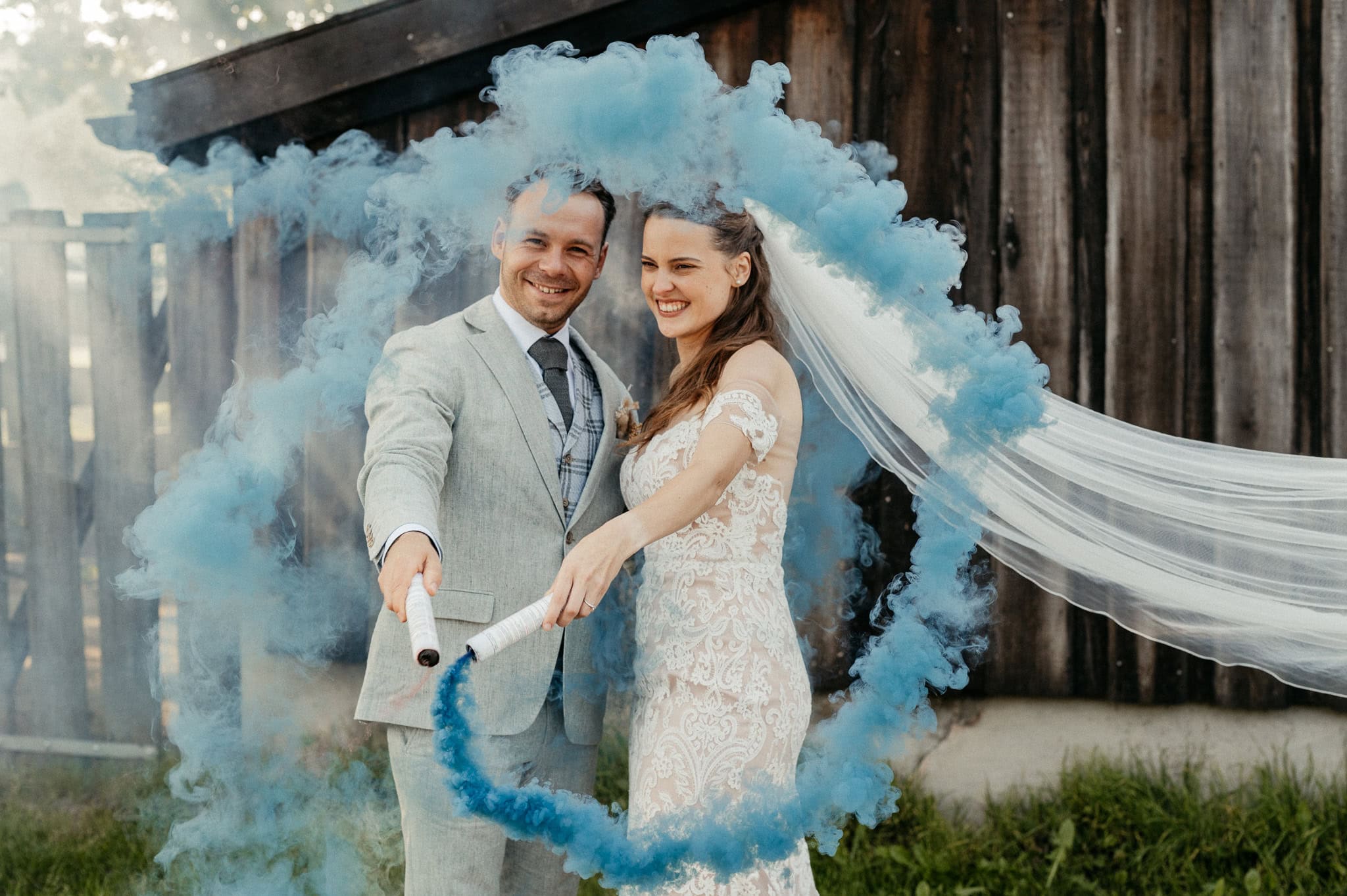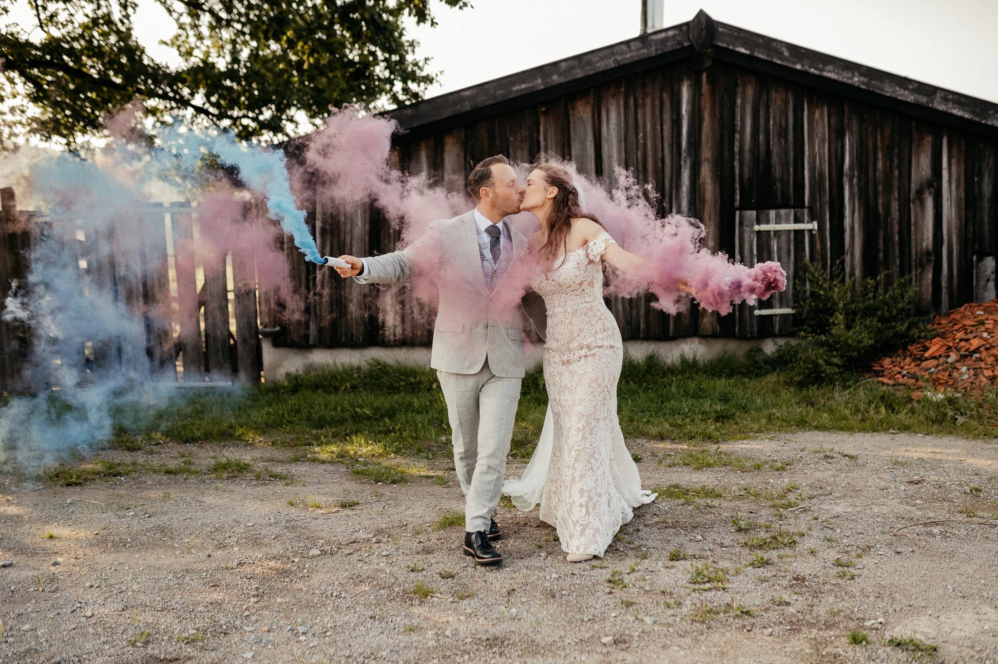 Und ja, wir geben es ehrlich zu: Rauchbomben stinken ziemlich. Aber für Euer Hochzeitsshooting können wir sie Euch trotzdem absolut empfehlen. Der Effekt, die Farben und die Stimmung sind einfach einzigartig.
