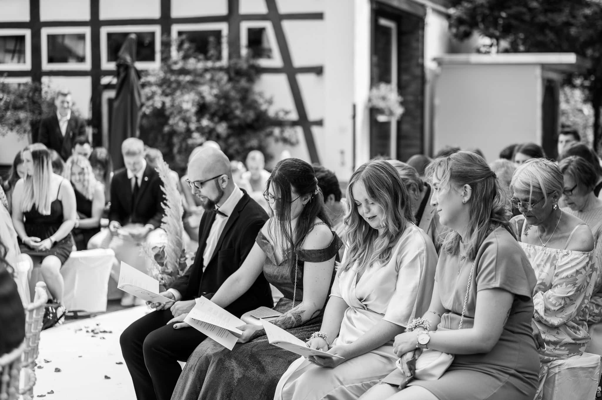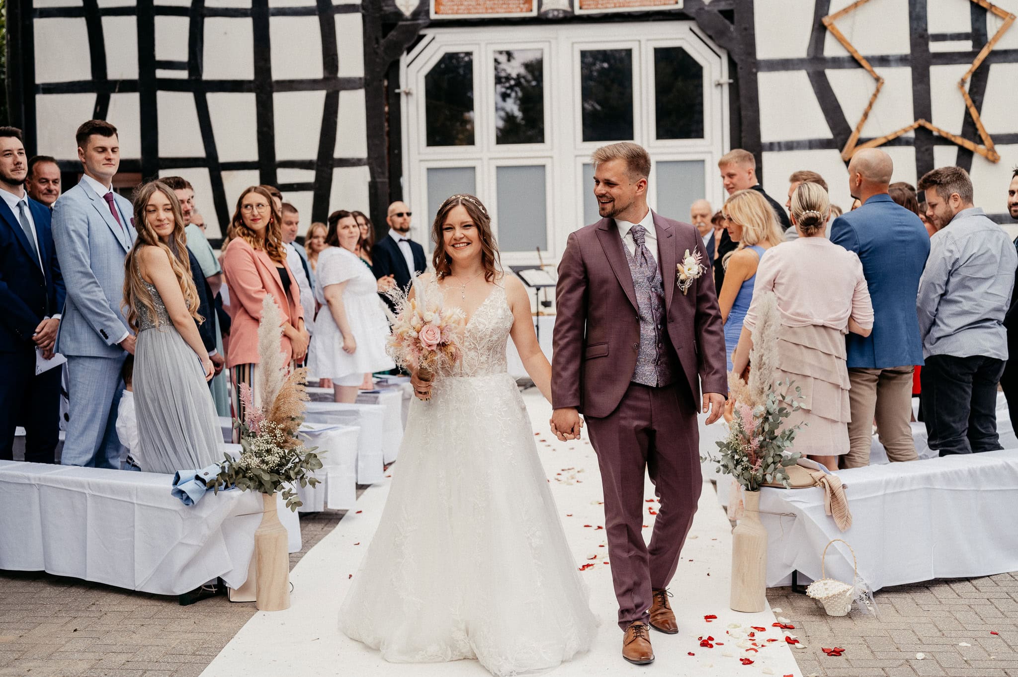 Schon beim Einzug von Sabrina war klar – das wird keine gewöhnliche Hochzeit, sondern ein Fest der Liebe. Tom, der eigentlich ein ziemlich cooler Typ ist, hatte diesen speziellen Blick im Gesicht, eine Mischung aus „Wow, das ist meine Frau“ und „Atmen, Tom, atmen!“. Als die beiden sich dann ihre ganz persönlichen Eheversprechen gaben, wurde es richtig emotional.