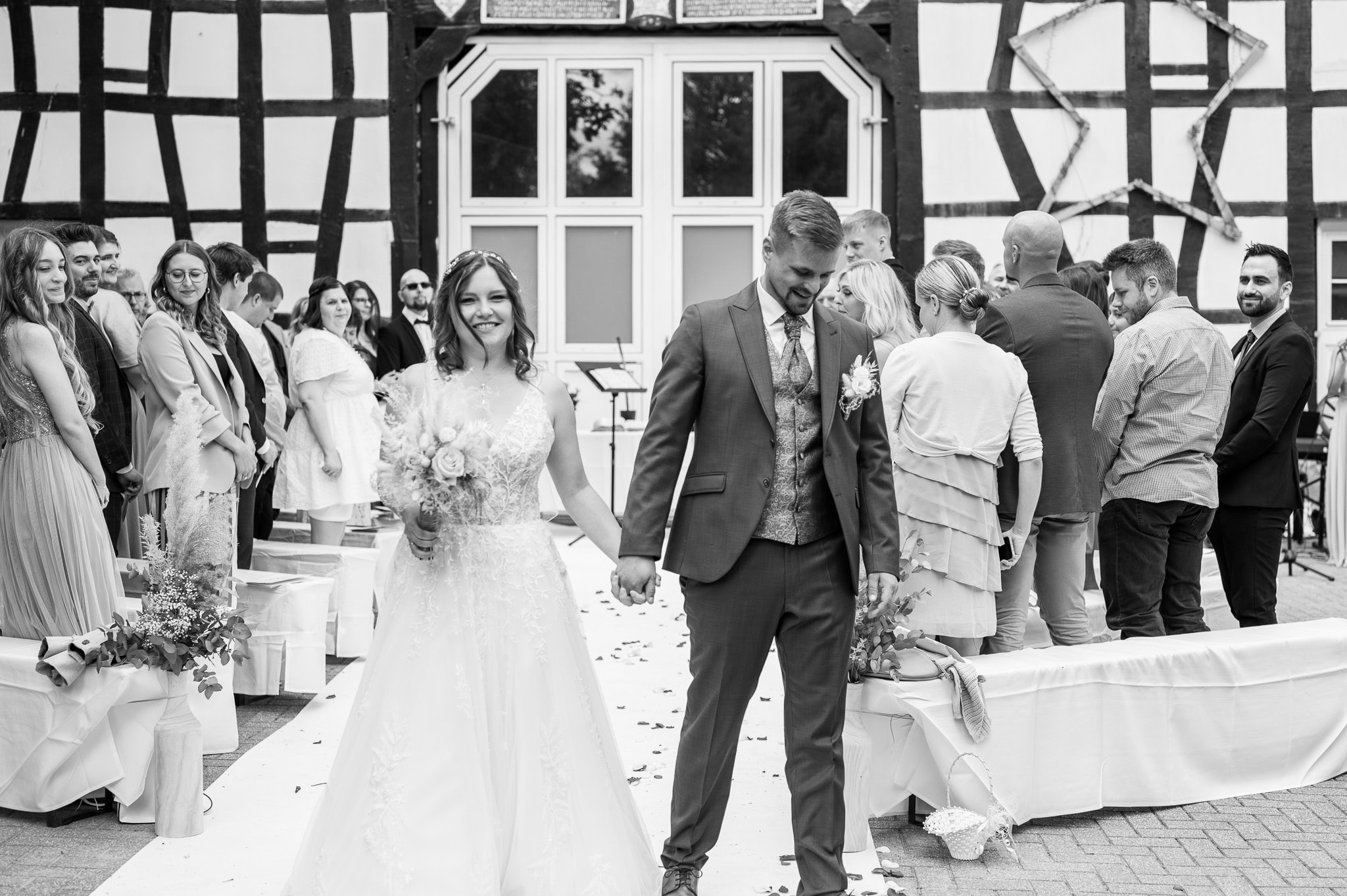 Sabrina und Tom, zwei Menschen, die nicht nur JA zueinander gesagt haben, sondern auch zu einer Hochzeit, die alles war, außergewöhnlich. Denn warum sich zwischen Tradition und Freiheit entscheiden, wenn man beides haben kann? Ihre Trauung war ein wunderschöner Mix aus kirchlicher Feierlichkeit und der ganz persönlichen Note einer freien Zeremonie. Und genau das machte diesen Tag so besonders.