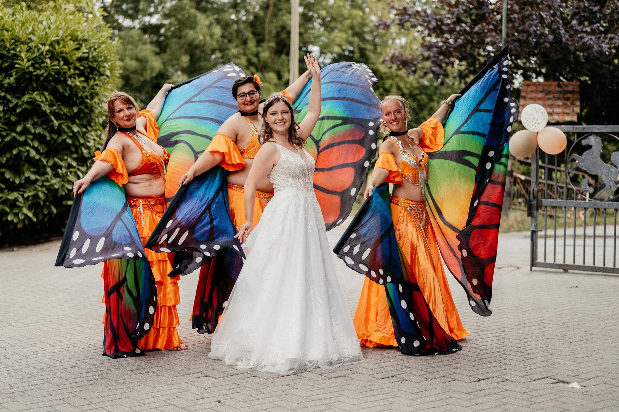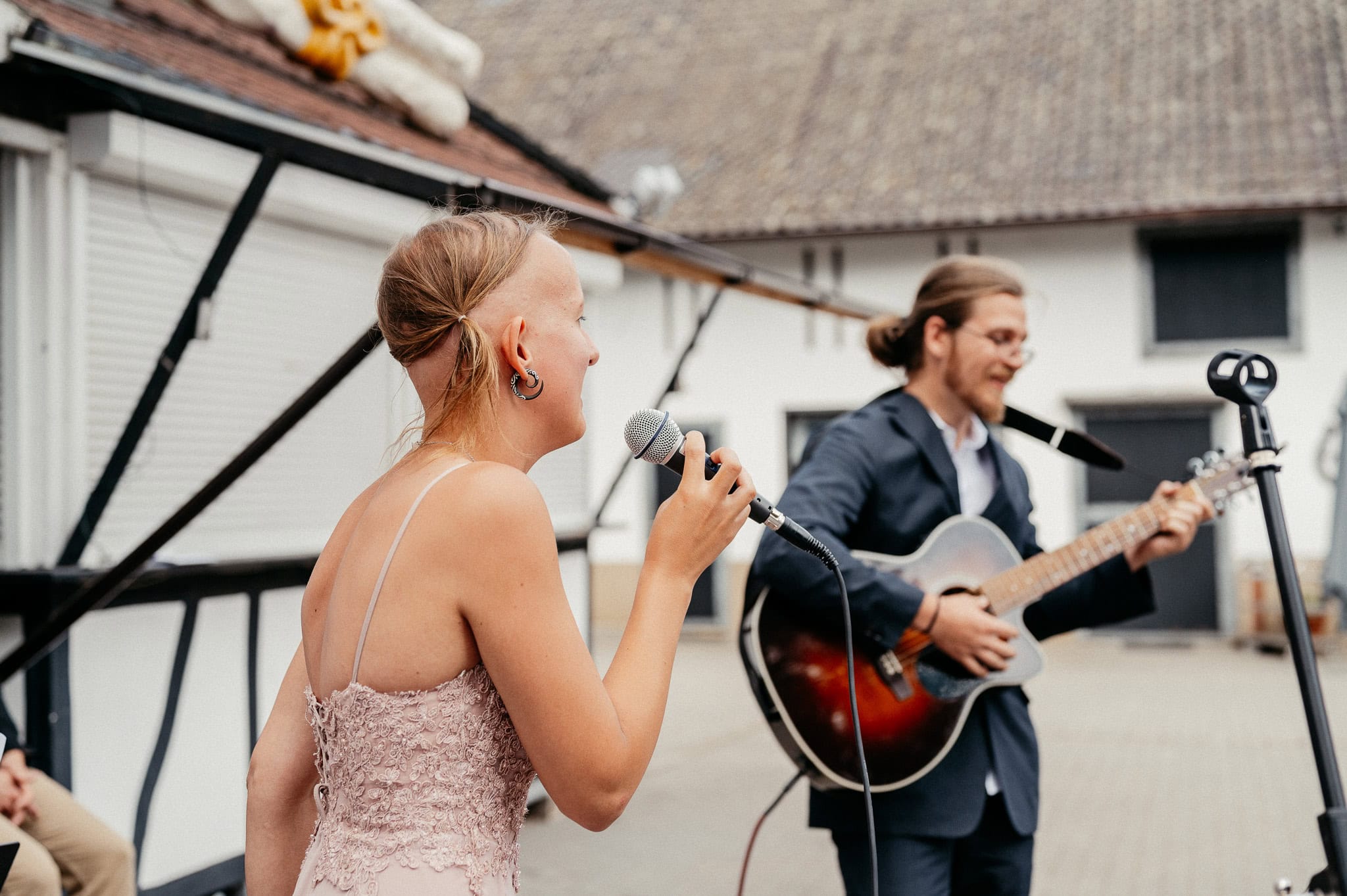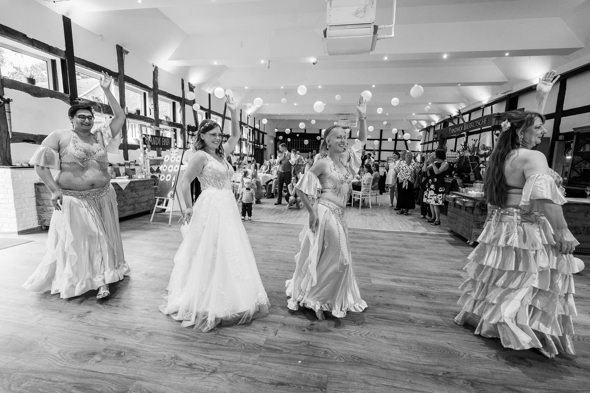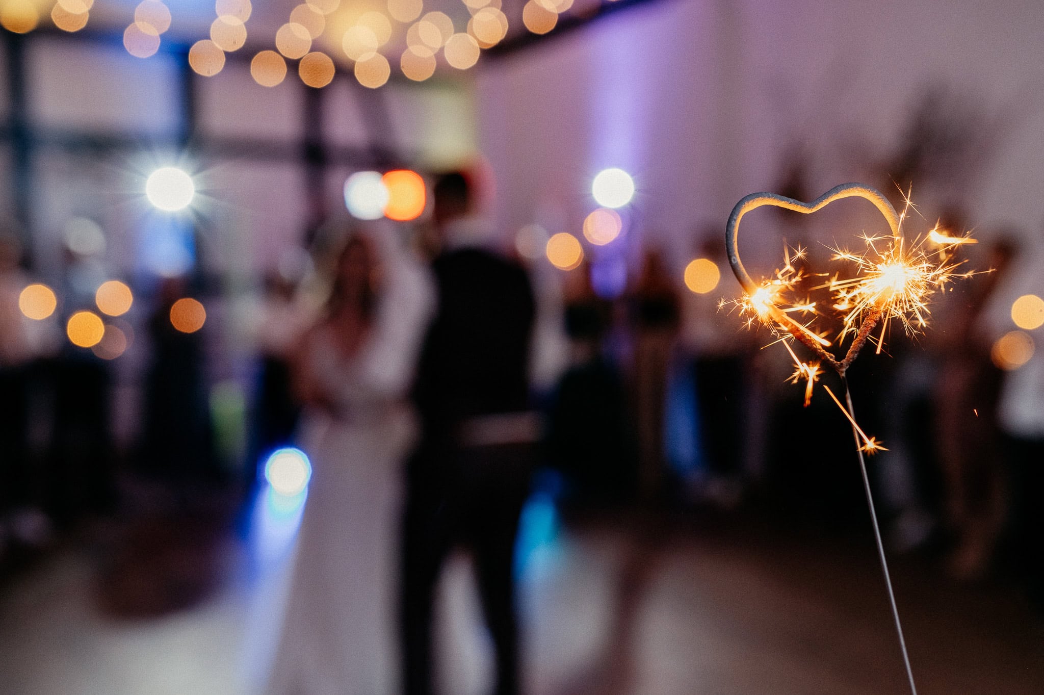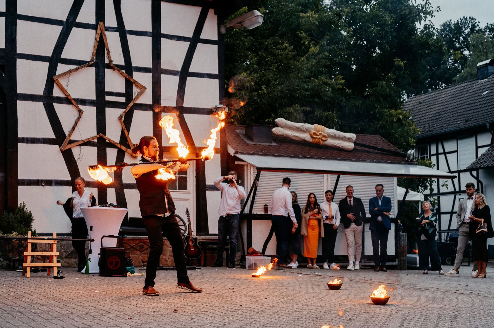 Nach der Trauung kam dann die nächste Gänsehaut-Attacke. Diese Trauung hatte ganz viel Herz, Humor und Persönlichkeit! Sabrinas Freundin, die eine unglaubliche Stimme hat, sang für das frisch vermählte Paar. Es war einer dieser Gänsehaut-Momente, in denen die Zeit kurz stillzustehen schien. Danach ging es über in eine Feier, die kaum abwechslungsreicher hätte sein können. Eine Feuershow brachte den Abend zum Leuchten, eine Bauchtanzgruppe verzauberte die Gäste mit anmutigen Bewegungen und das große Finale, ein brennendes Feuerherz, was den Nachthimmel in warmem Licht erstrahlen ließ.