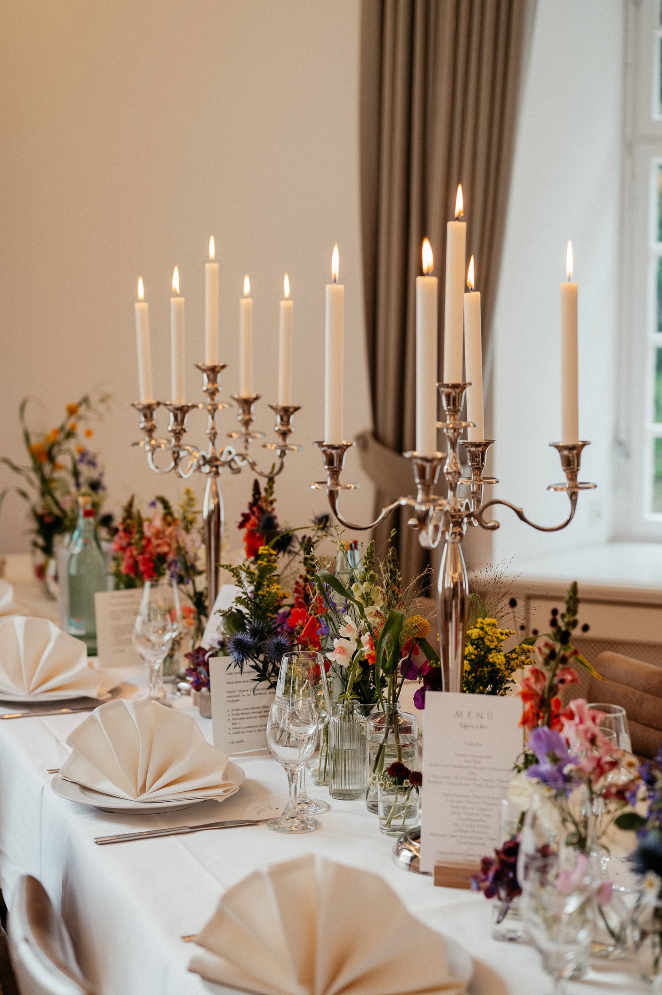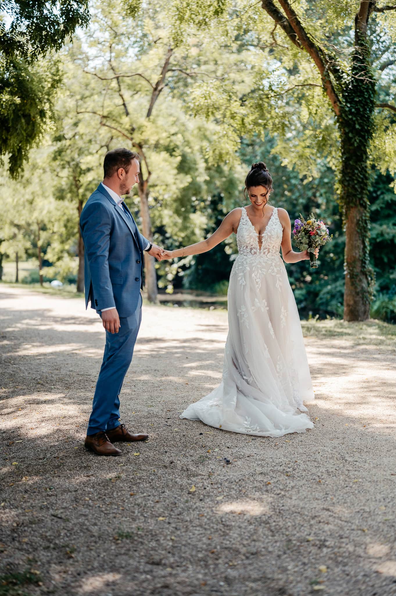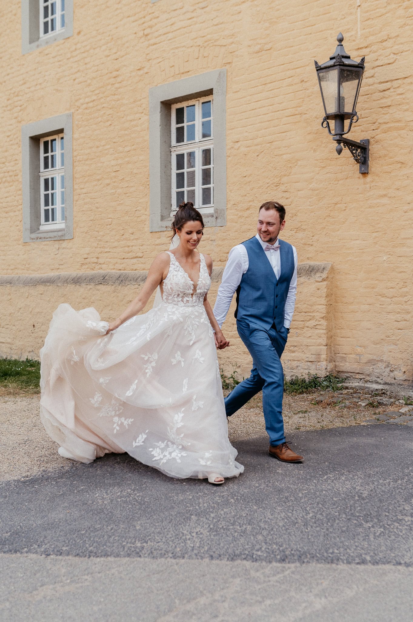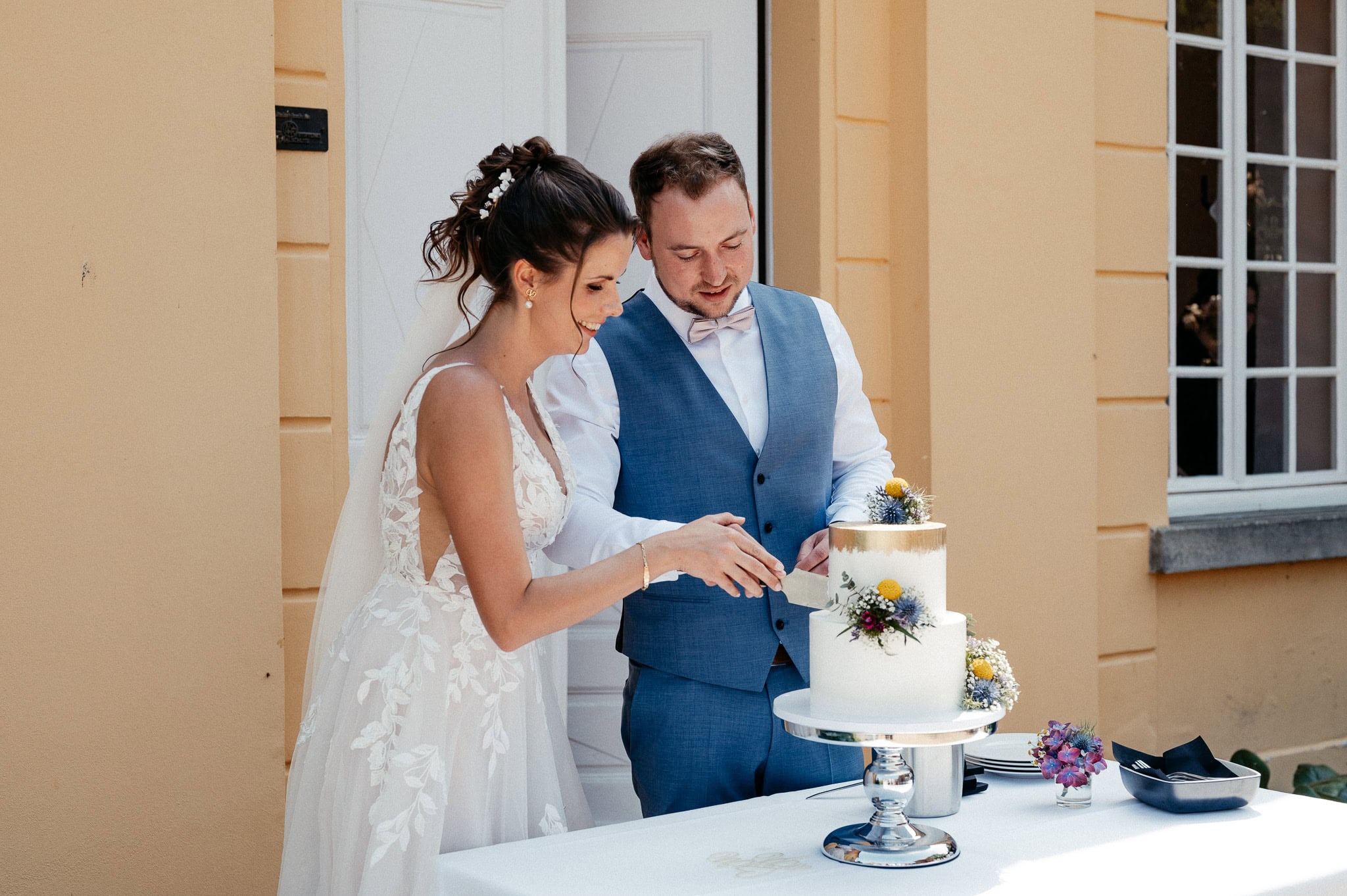Gestartet haben wir an diesem besonderen Tag unseres Hochzeitspaares mit einem Getting Ready. Die zwei haben vor Ort im Schloss übernachtet und konnten somit entspannt in den Tag starten. Die Trauung war vor Ort im Standesamt, der Sektempfang im Teehaus und die Feier im Schloss. Wenn alles an einem Ort stattfindet, ist es für alle Beteiligten super entspannt.
