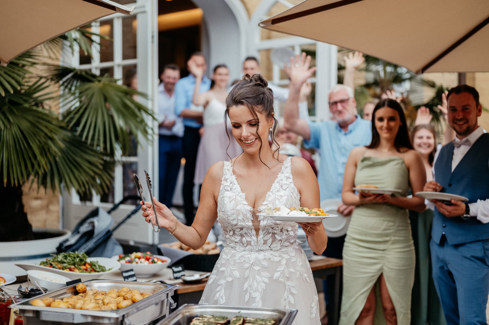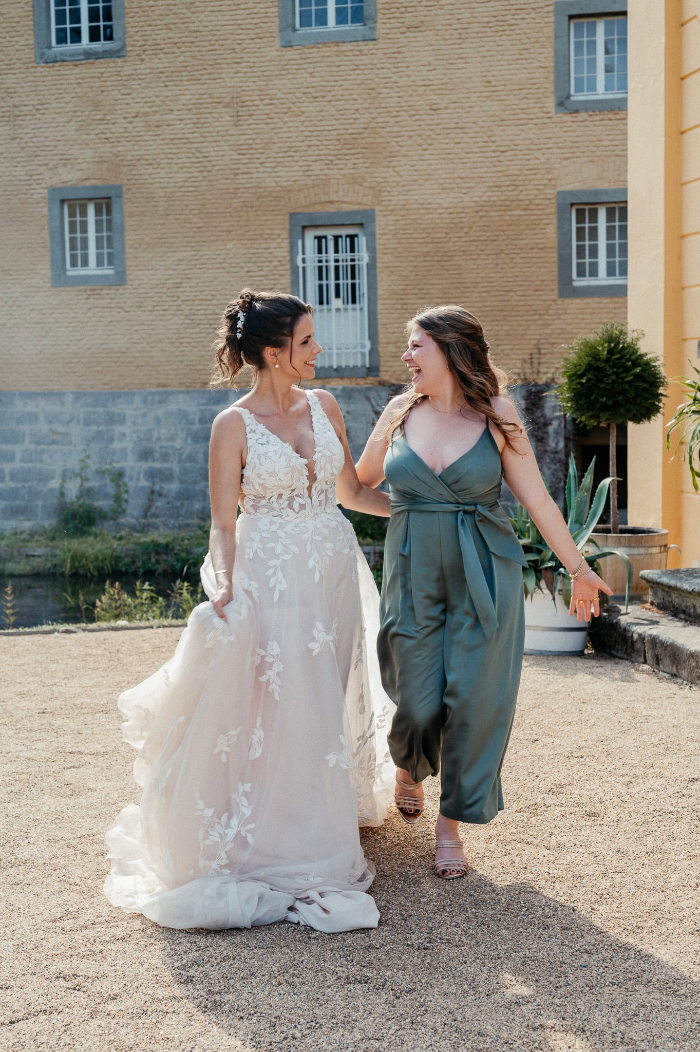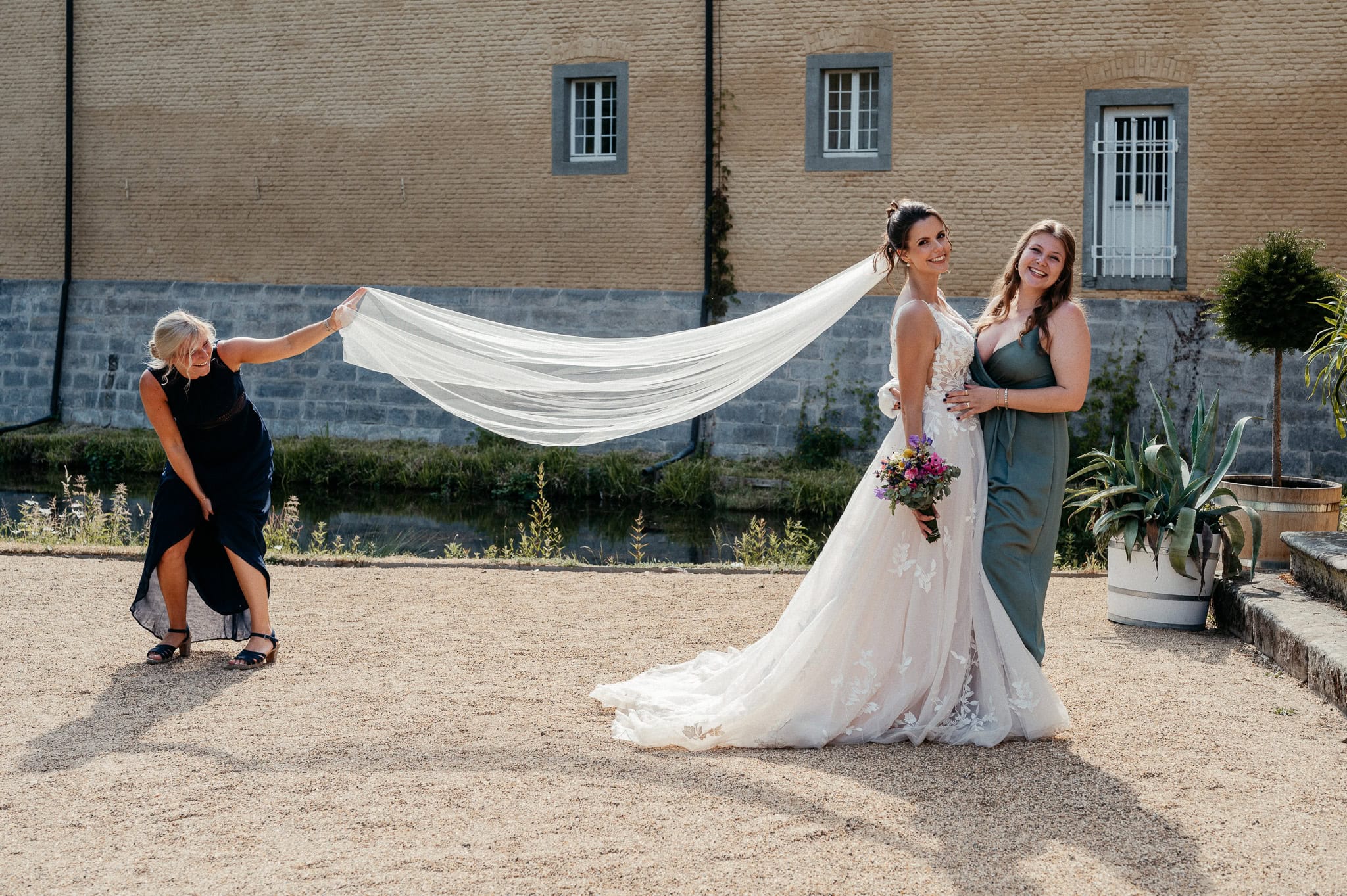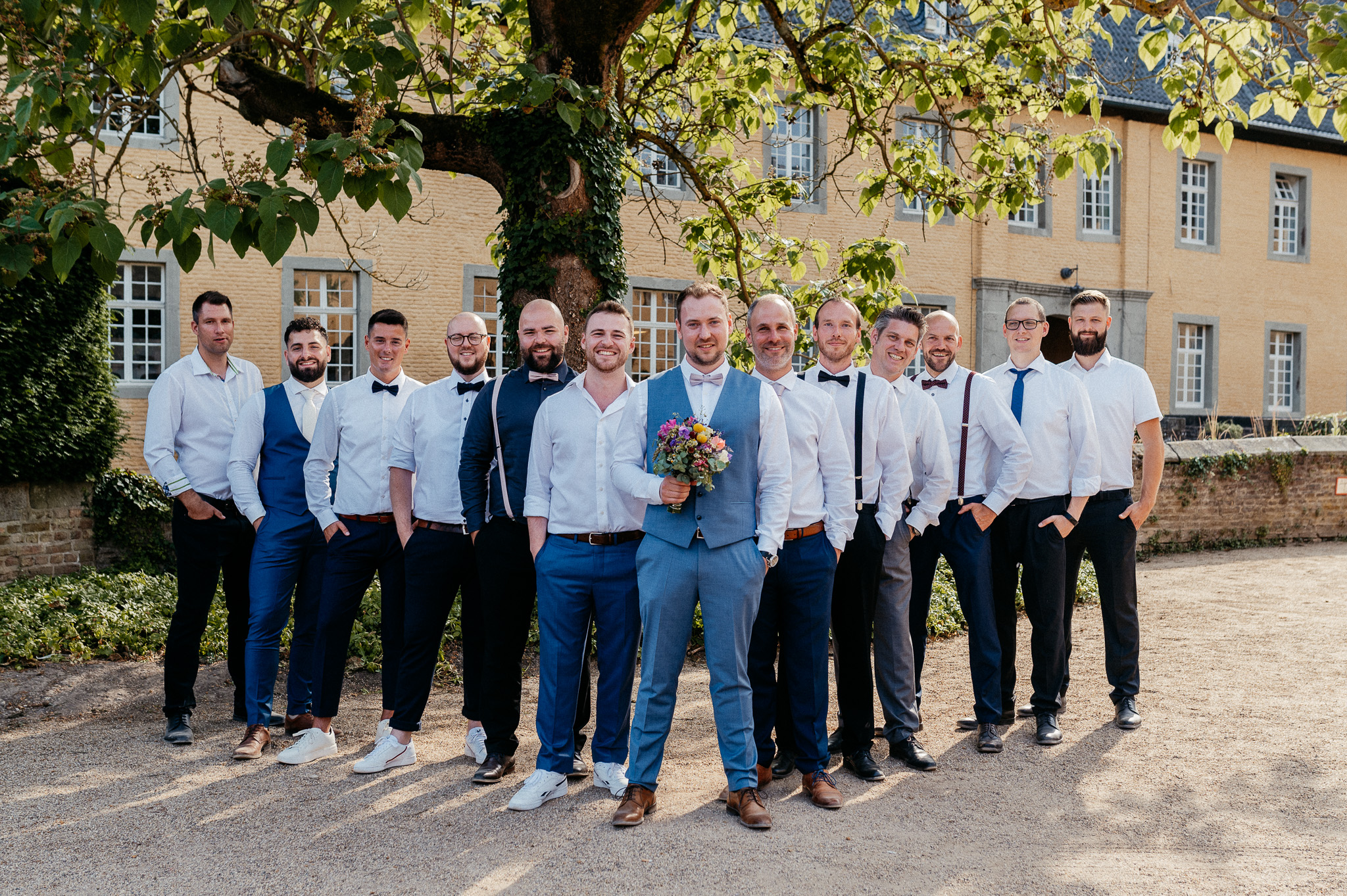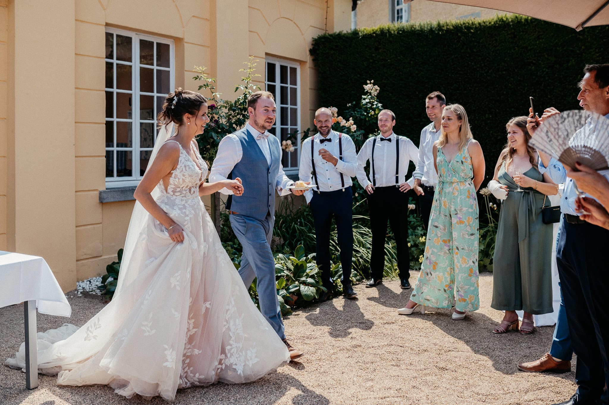 Gestartet haben wir an diesem besonderen Tag unseres Hochzeitspaares mit einem Getting Ready. Die zwei haben vor Ort im Schloss übernachtet und konnten somit entspannt in den Tag starten. Die Trauung war vor Ort im Standesamt, der Sektempfang im Teehaus und die Feier im Schloss. Wenn alles an einem Ort stattfindet, ist es für alle Beteiligten super entspannt.