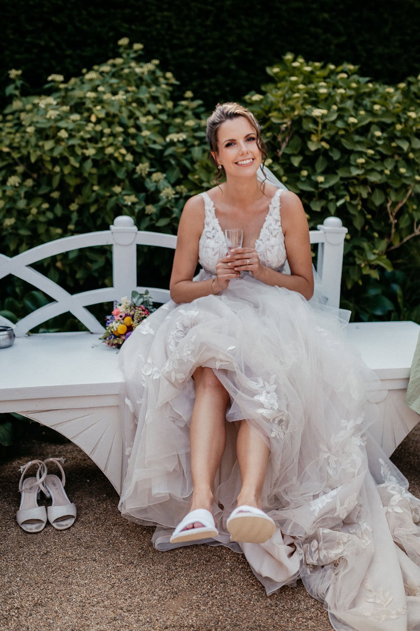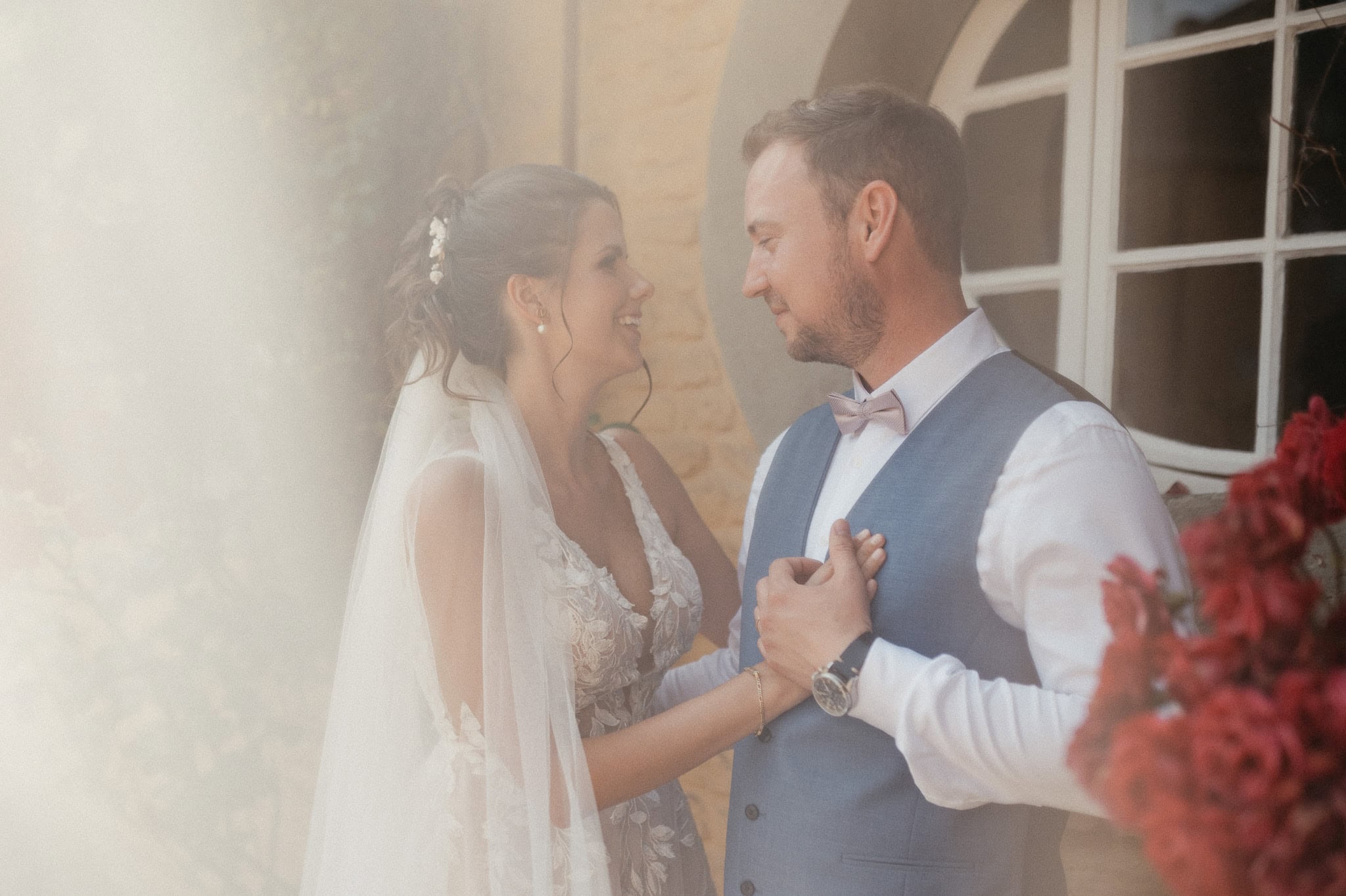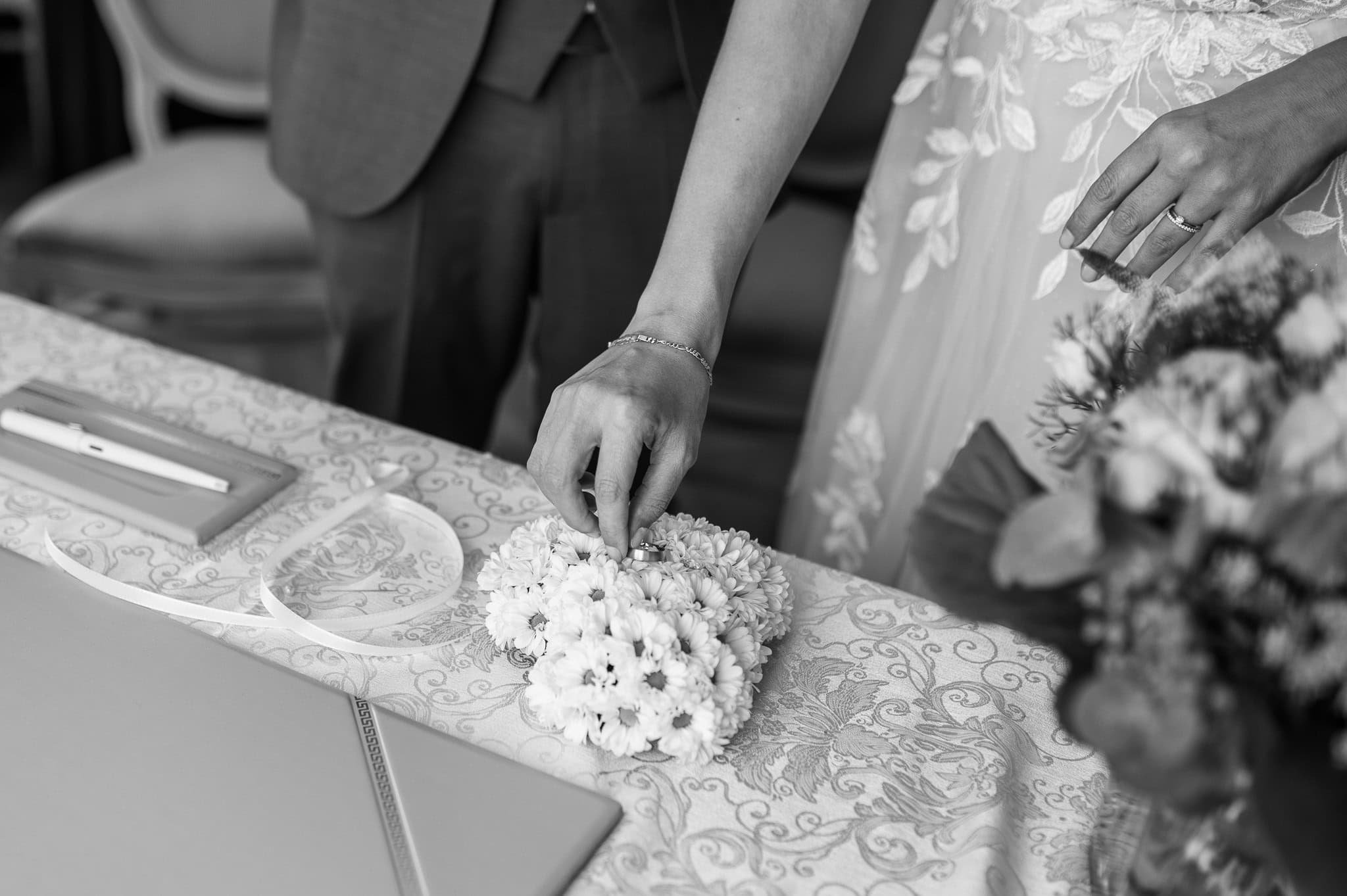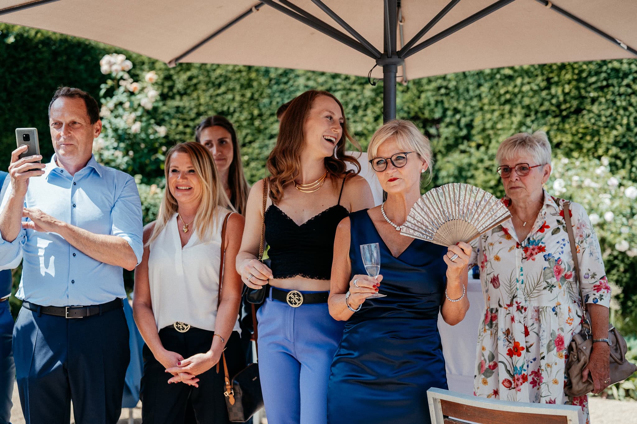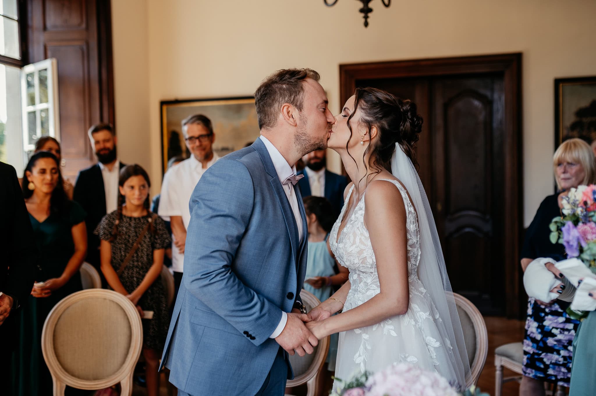 Gestartet haben wir an diesem besonderen Tag unseres Hochzeitspaares mit einem Getting Ready. Die zwei haben vor Ort im Schloss übernachtet und konnten somit entspannt in den Tag starten. Die Trauung war vor Ort im Standesamt, der Sektempfang im Teehaus und die Feier im Schloss. Wenn alles an einem Ort stattfindet, ist es für alle Beteiligten super entspannt.
