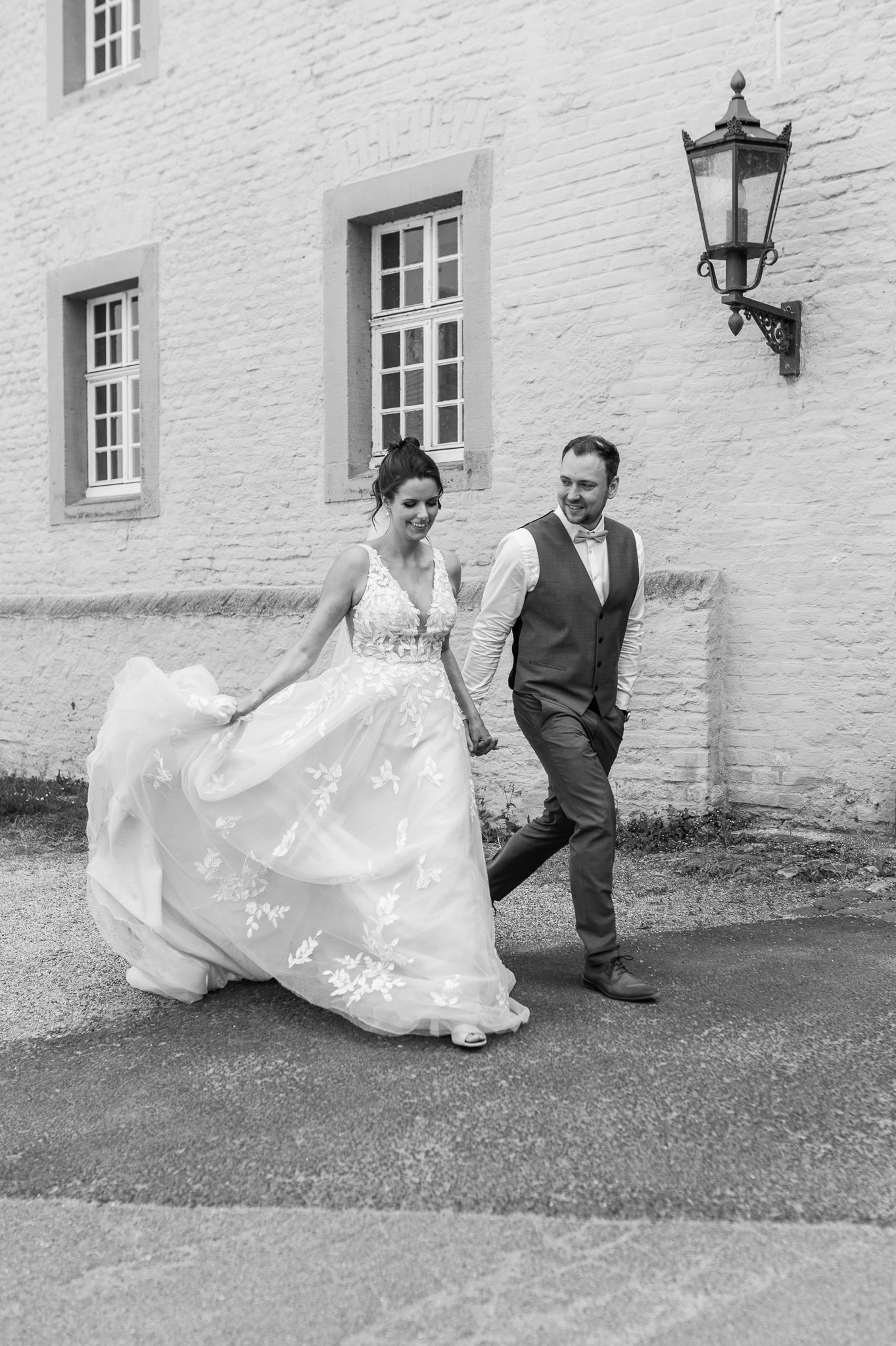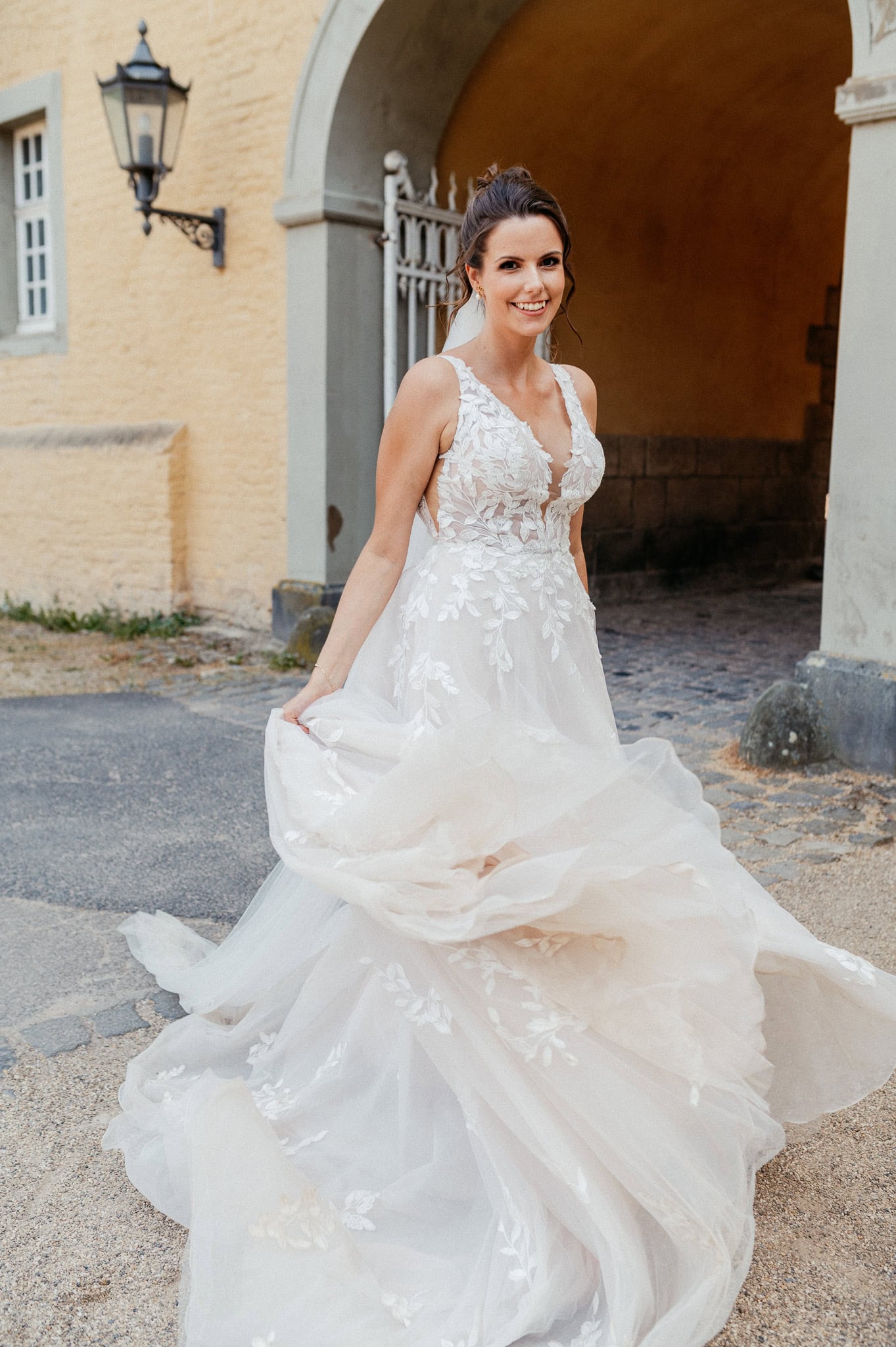 Na ja, wie es der Zufall so wollte, hat Moni mich dann als Hochzeitsfotografin empfohlen und kurze Zeit später mit den beiden zusammengebracht. Es hat gematcht. BÄM! Die Hochzeit von Tatjana & René war ein Traum. Die Hochzeits-Location auf Schloss Dyck in Jüchen ist wirklich wunderschön. Das Ambiente vor Ort hat etwas ganz Besonderes. Das Schloss Dyck kann für private Feiern, Konzerte, Tagungen und Hochzeiten gebucht werden. Es liegt am Niederrhein, inmitten eines englischen Landschaftsparks. Es gibt ein Teehaus und eine Orangerie, welches bei Hochzeiten gerne dazu gebucht wird, um z. B. den Sektempfang stattfinden zu lassen.