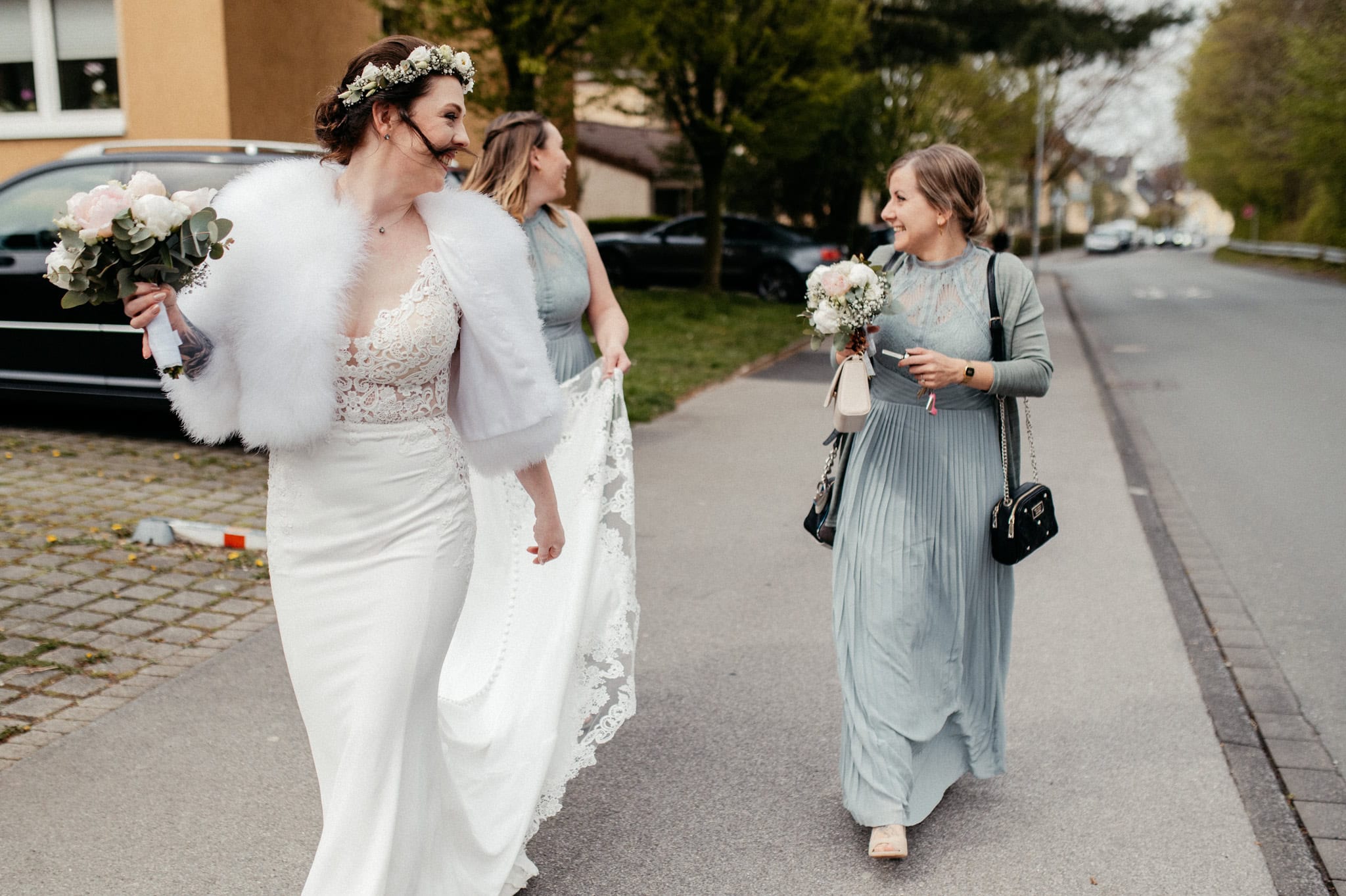 Der letzte Pinselstrich beim Make-up. Ein Glas Sekt mit Deiner besten Freundin. Eine innige Umarmung. Vielleicht Freudentränen. Das Anziehen des Kleides, das Schließen der Schuhe, das Anlegen des Schmucks.