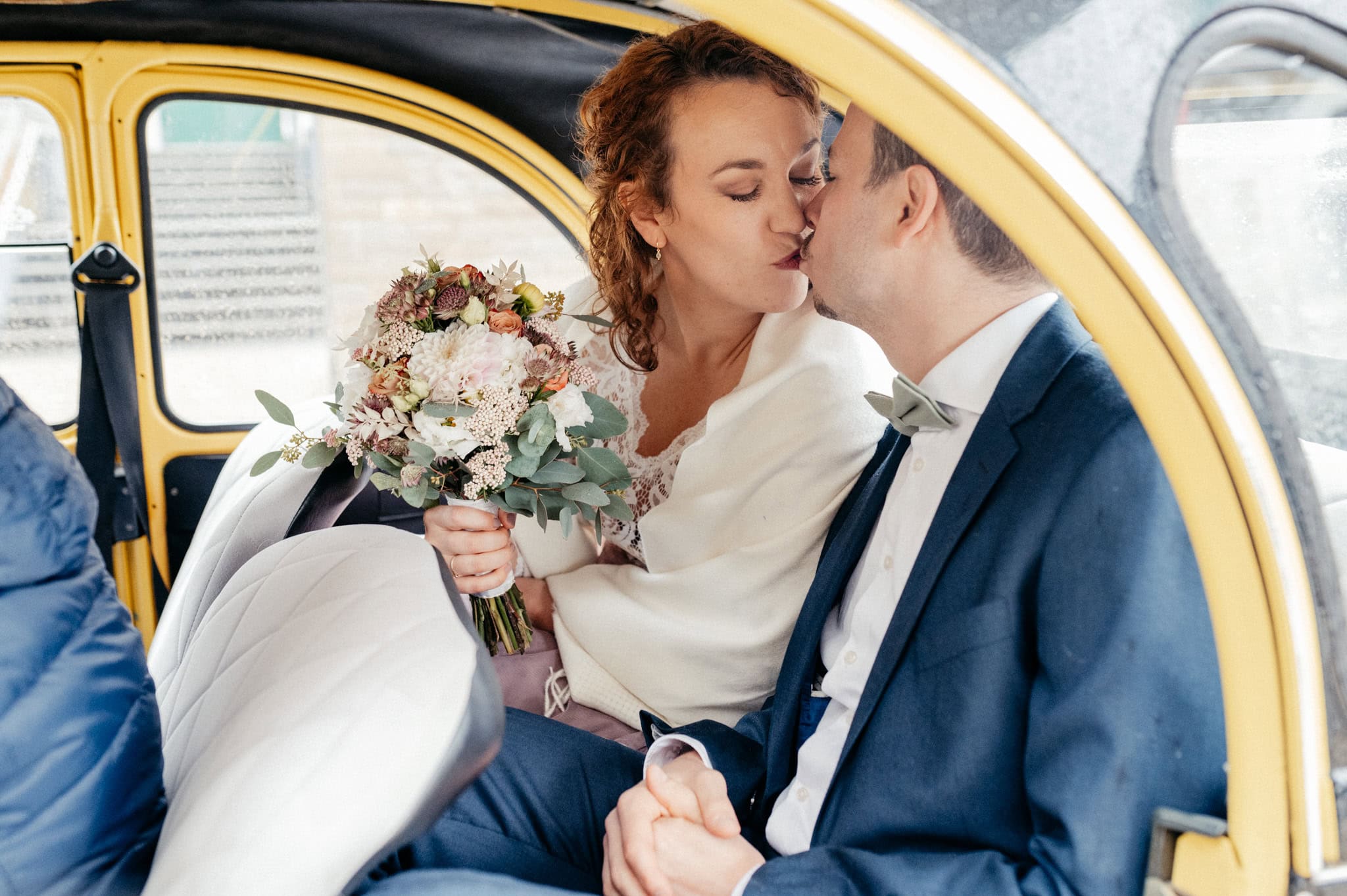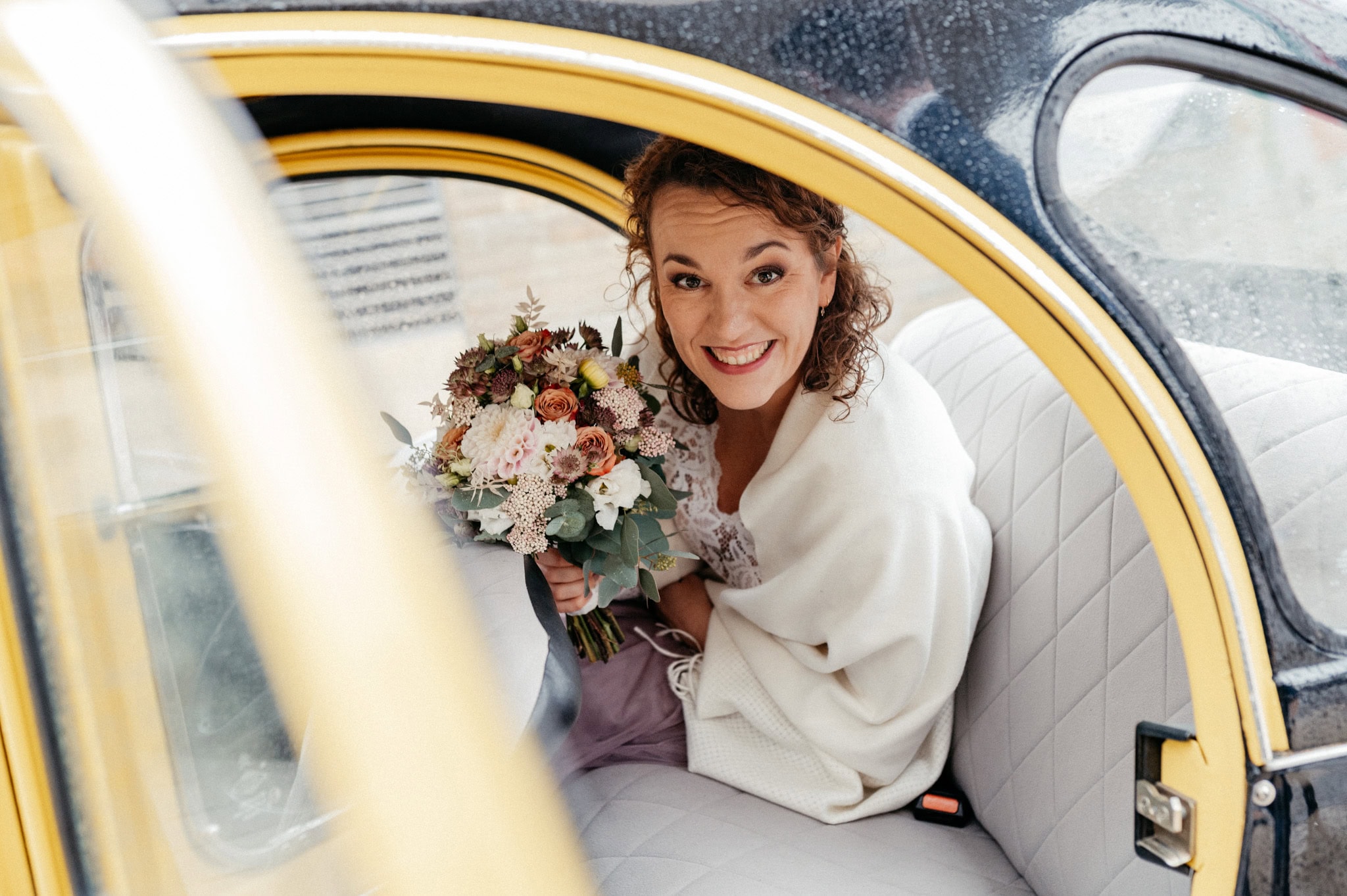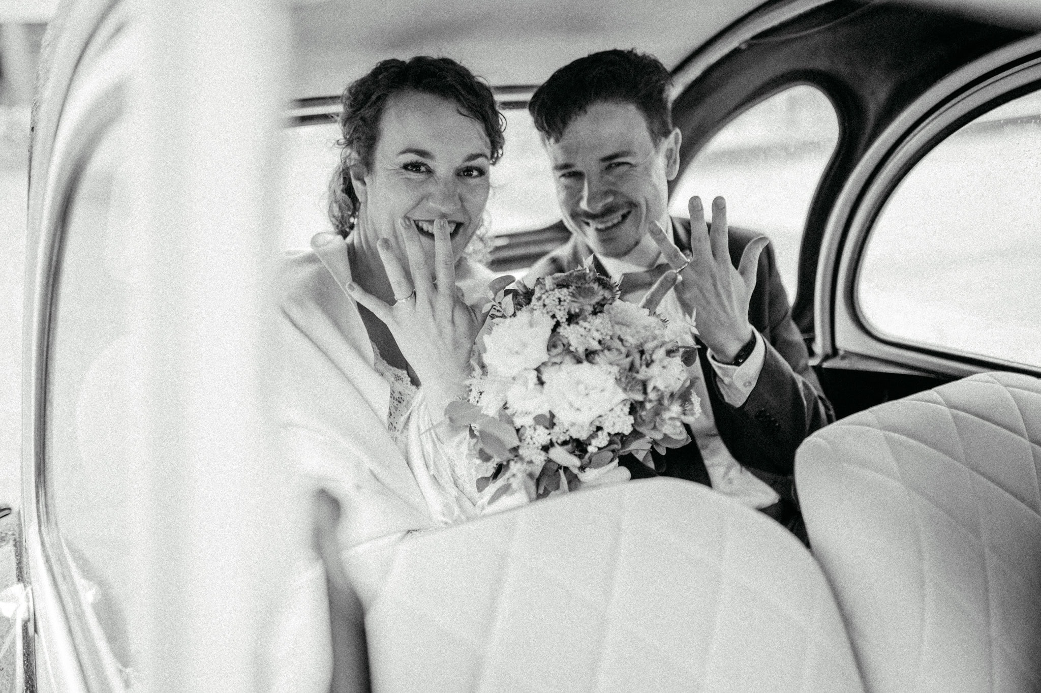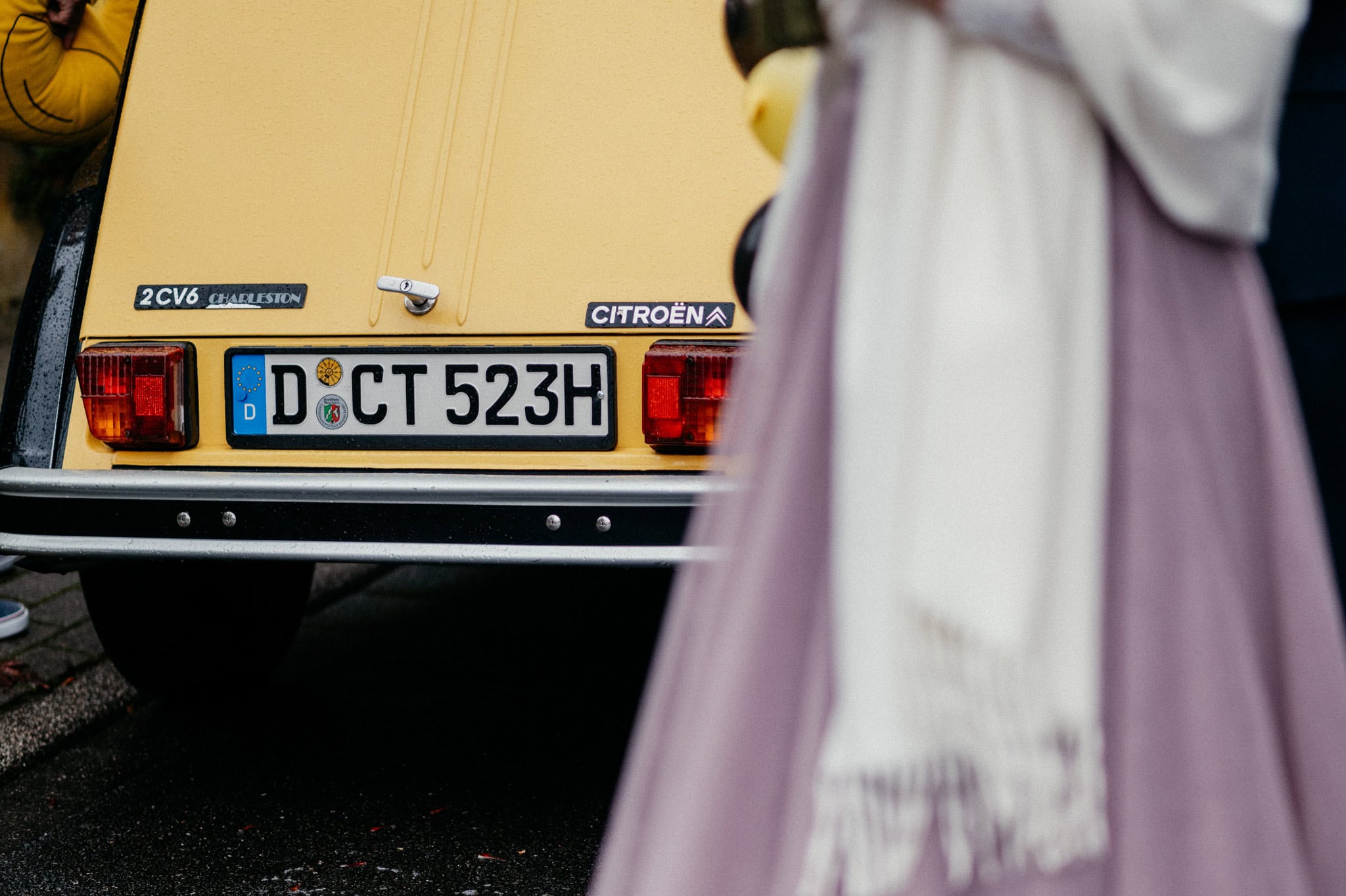 Das persönliche Highlight des Tages war diese bezaubernde schwarz-gelbe Ente, mit der die beiden vom Standesamt Ratingen abgeholt wurden. Nein – keine BVB-Ente. Sondern die Farben ihres Basketballvereins. Solche Details lieben wir.