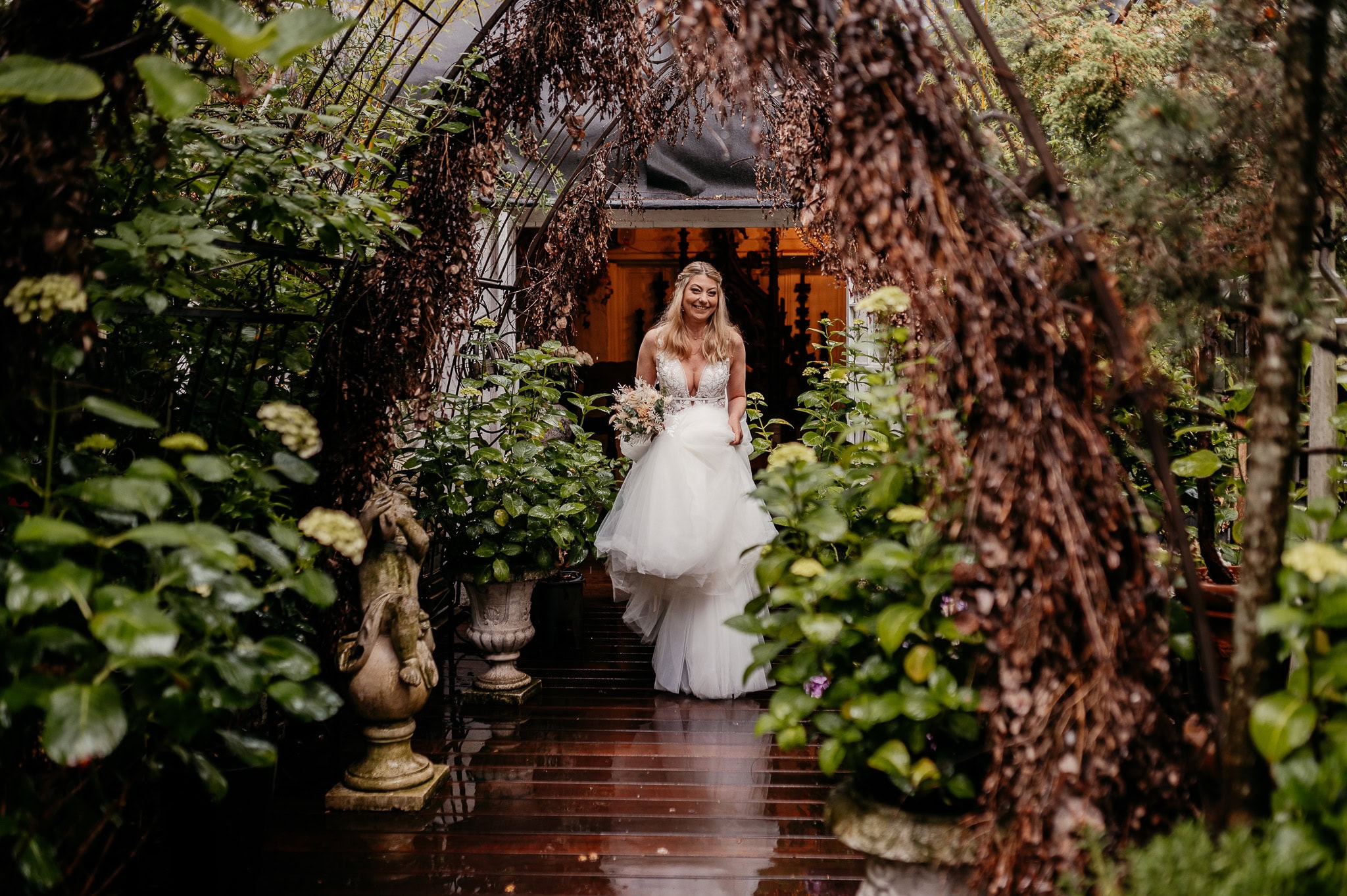Neben dem verträumten Garten, der selbst bei strömendem Regen einfach wunderschön ist, hatten wir Zeit für ein kurzes, aber sehr inniges Paarshooting. Der Außenbereich hat etwas von einem verwunschenen Ort.