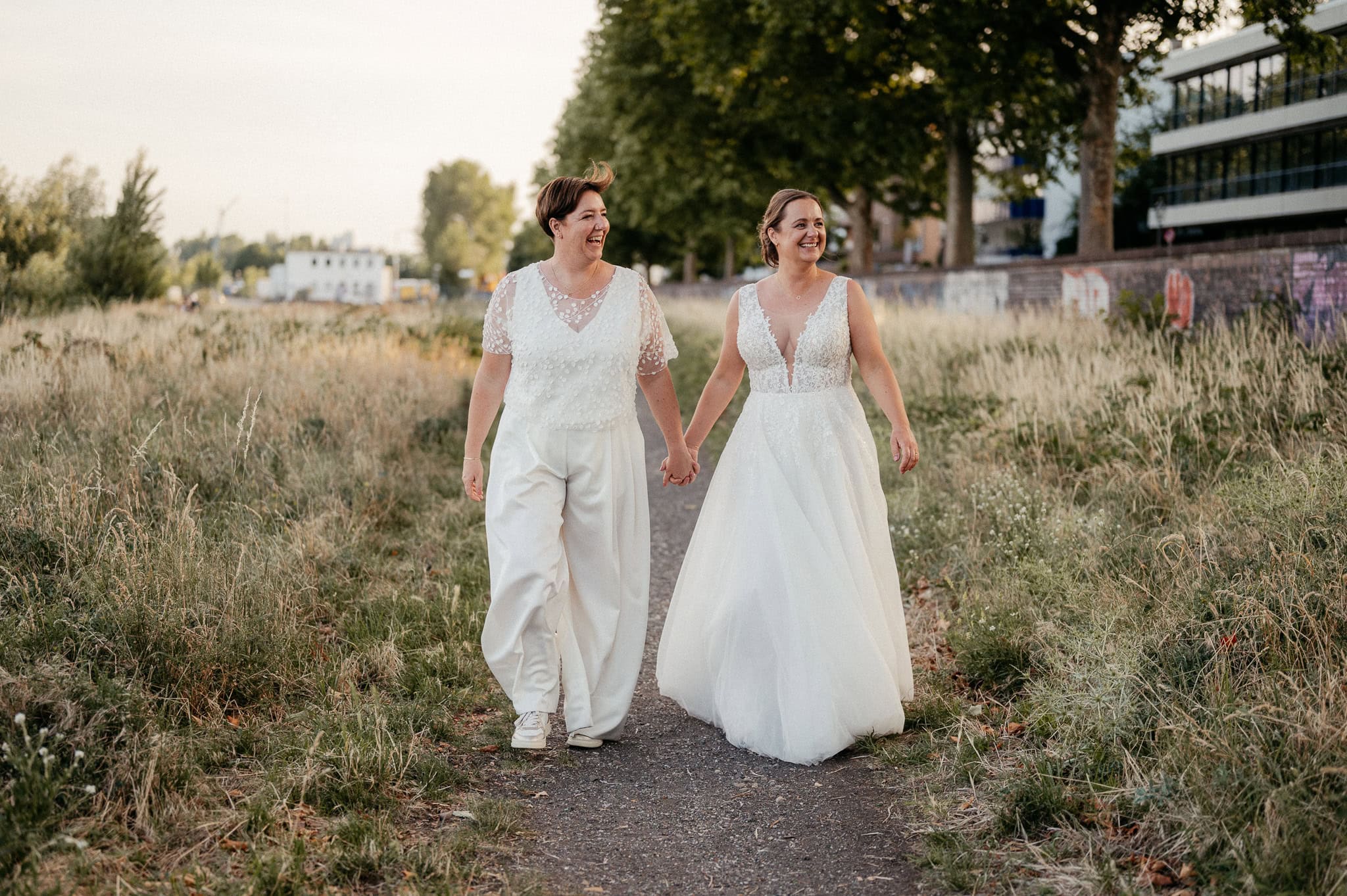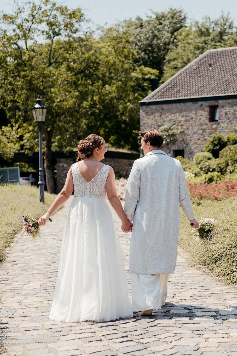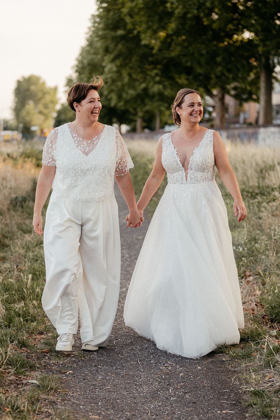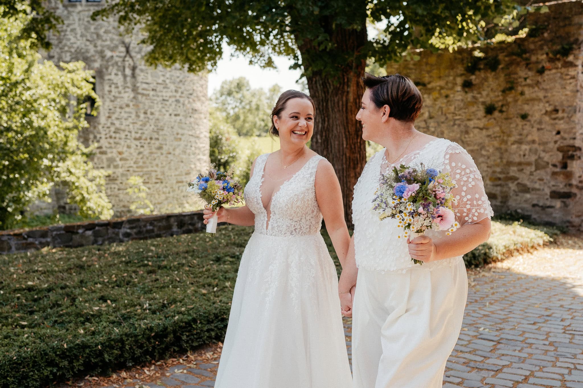 Natürliche Hochzeitsfotografie lebt davon, dass Paare sich fallen lassen können. Dass sie sich sicher fühlen, gesehen werden und einfach sie selbst sein dürfen. Das gilt für queere Paare genauso wie für alle anderen – doch hier ist Vertrauen oft noch ein wenig wichtiger. Ihr sollt Euch nicht erklären müssen. Nicht vor Euren Gästen und nicht vor der Kamera.