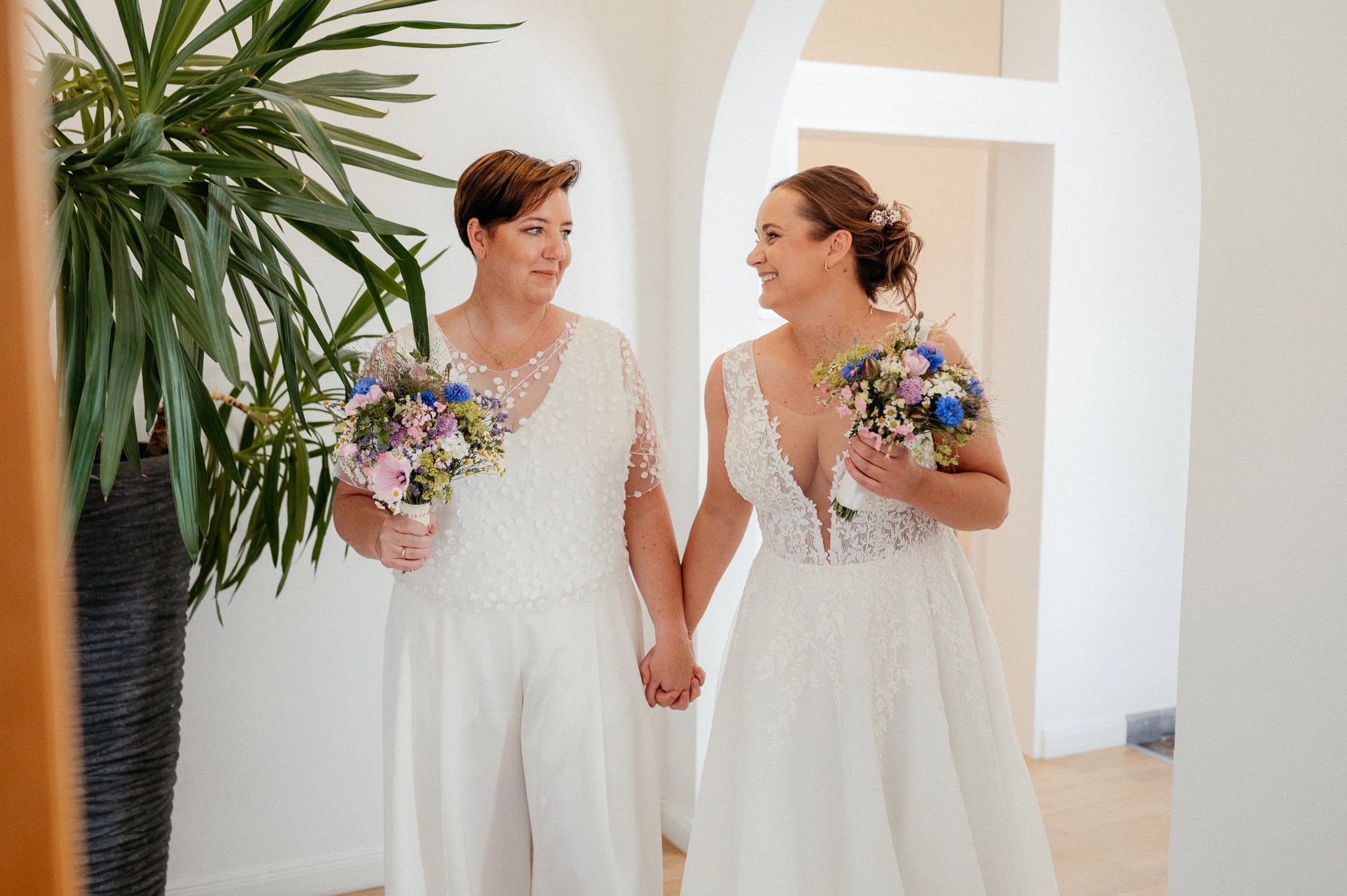 Eine Hochzeit mit zwei Frauen ist vor allem eines: echt. Persönlich, emotional und voller Liebe – genauso wie jede andere Hochzeit auch. Und doch hat sie oft ihre ganz eigene Energie. Es geht weniger um klassische Rollenbilder, sondern vielmehr um das, was wirklich zählt: die Verbindung zweier Menschen, die sich ganz bewusst füreinander entschieden haben.