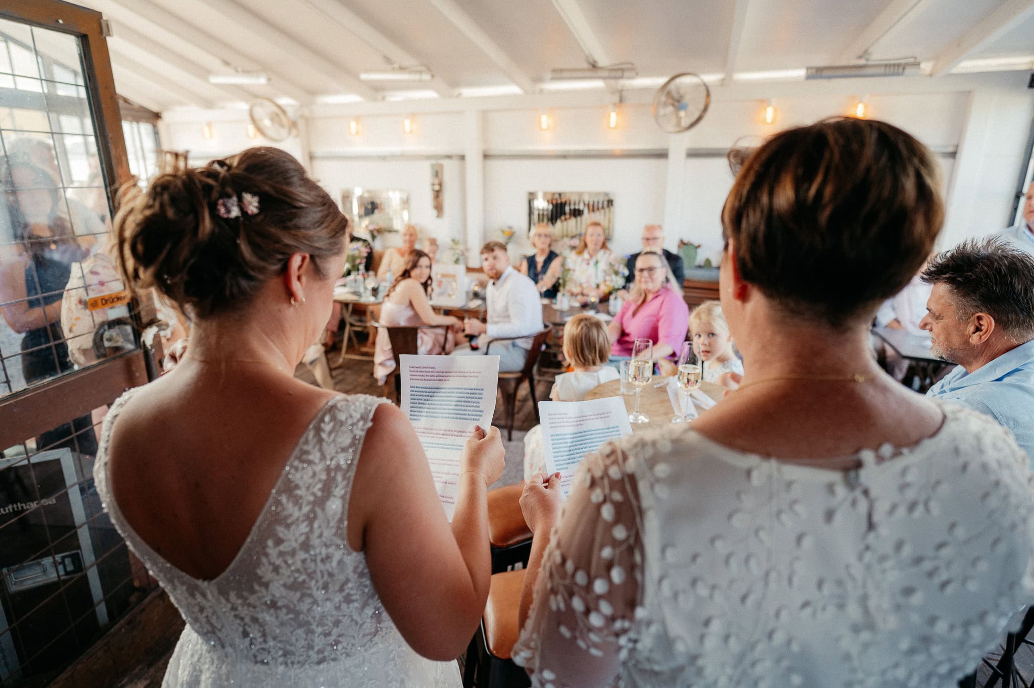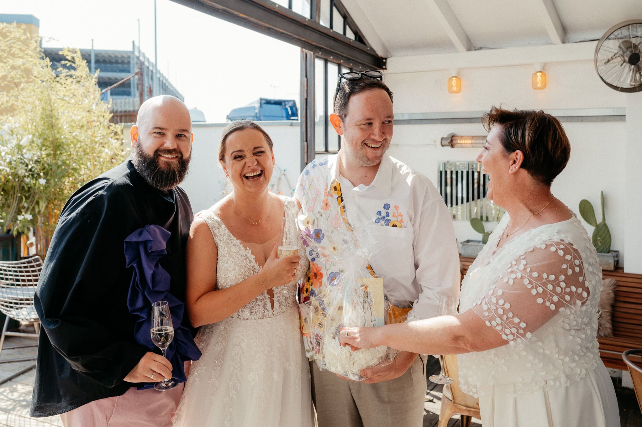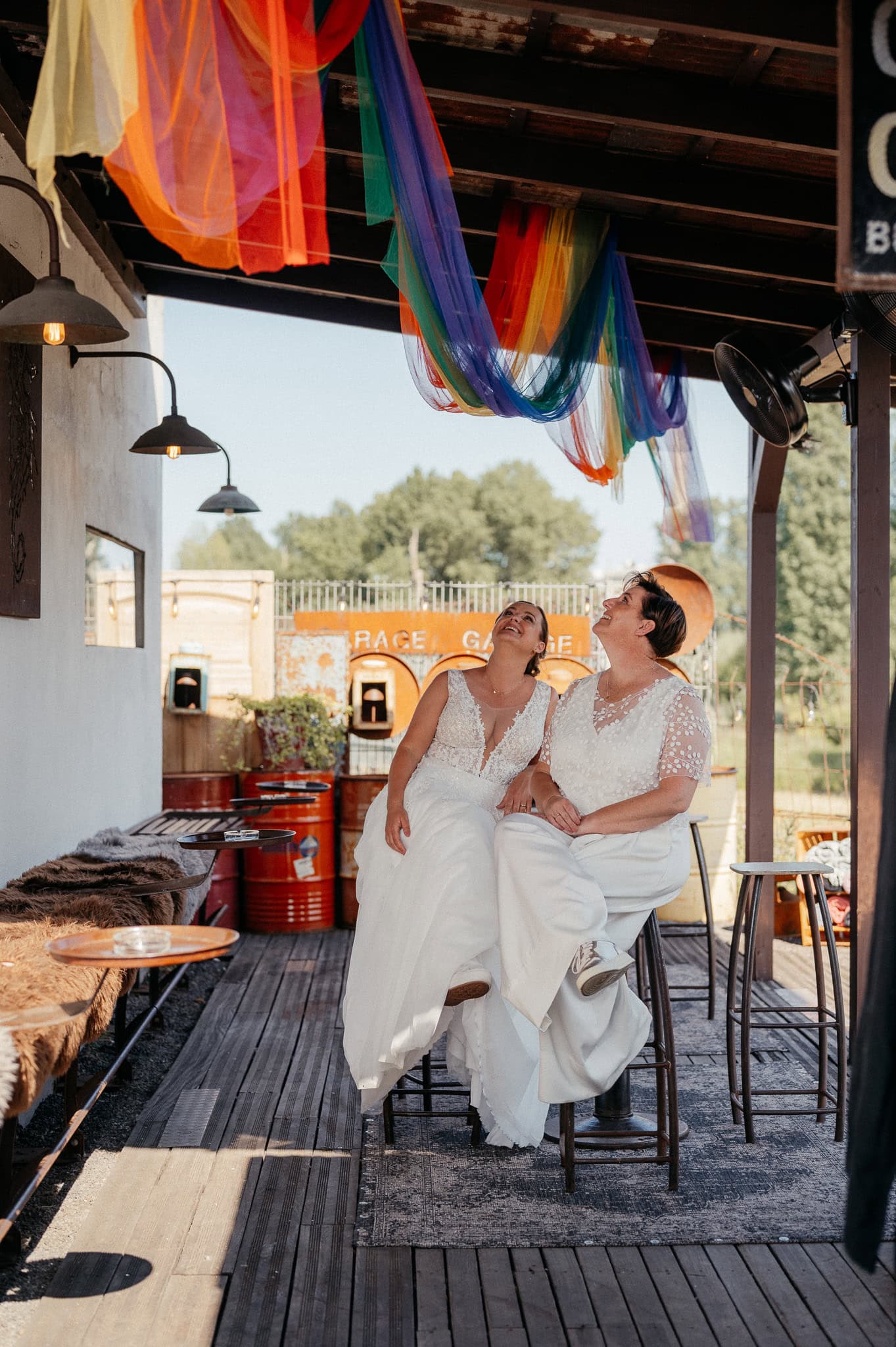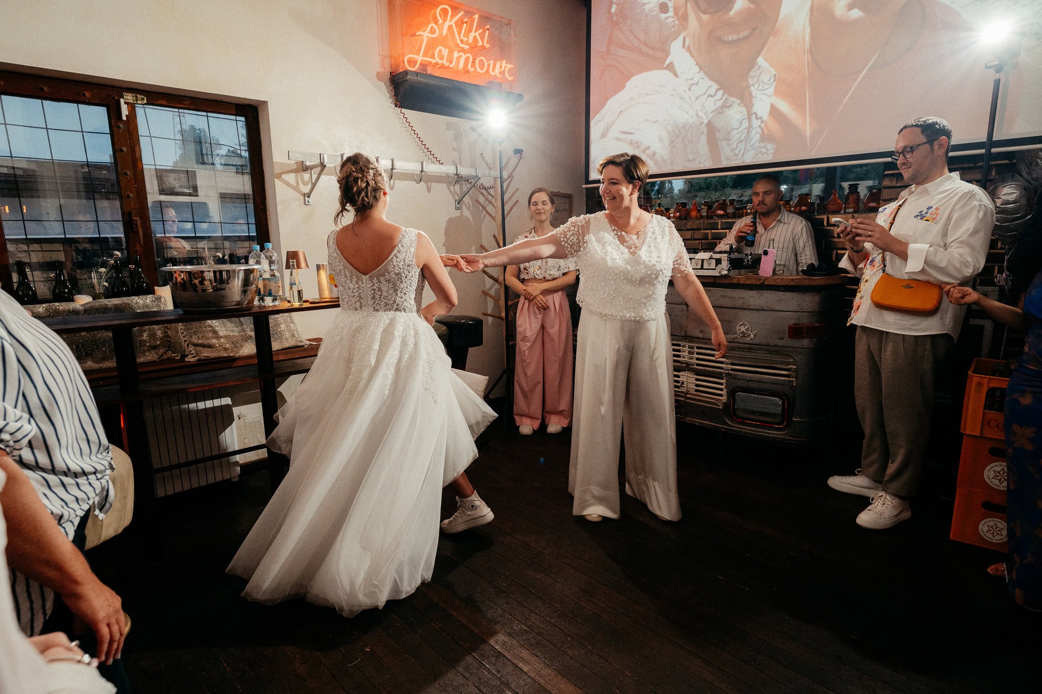 Gleicher Ort, vertraute Menschen, aber eine ganz neue Geschichte. Genau das liebe ich an Hochzeiten: Jede ist einzigartig, selbst wenn der Rahmen ähnlich ist. Die urbane, moderne Atmosphäre der Garage passte perfekt zu dieser queeren Hochzeit und hat den individuellen Charakter des Tages unterstrichen. Eine wundervolle Location für etwas kleinere Feiern.