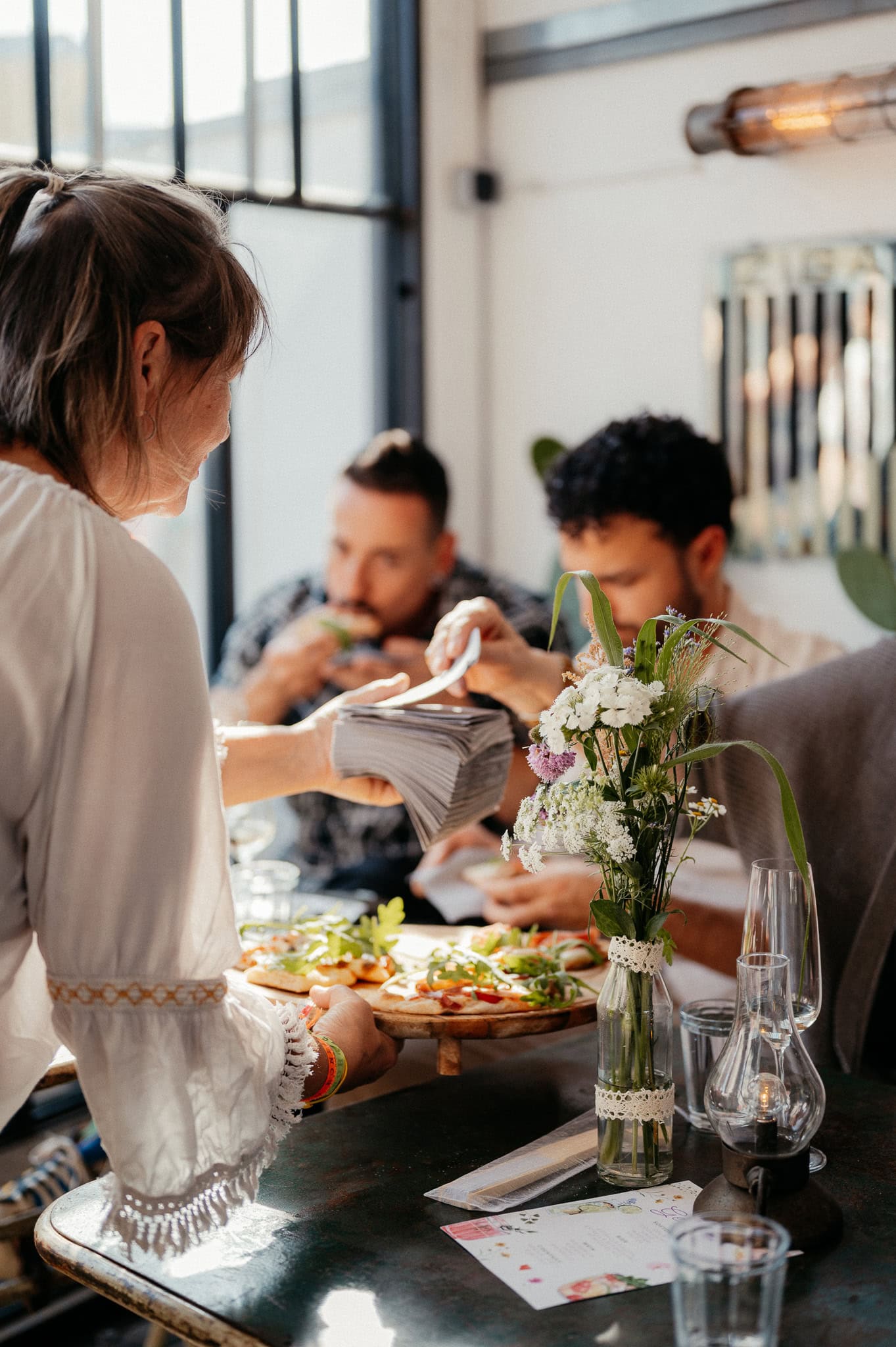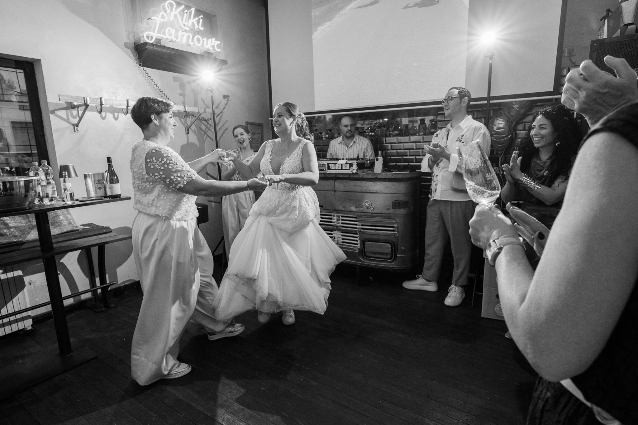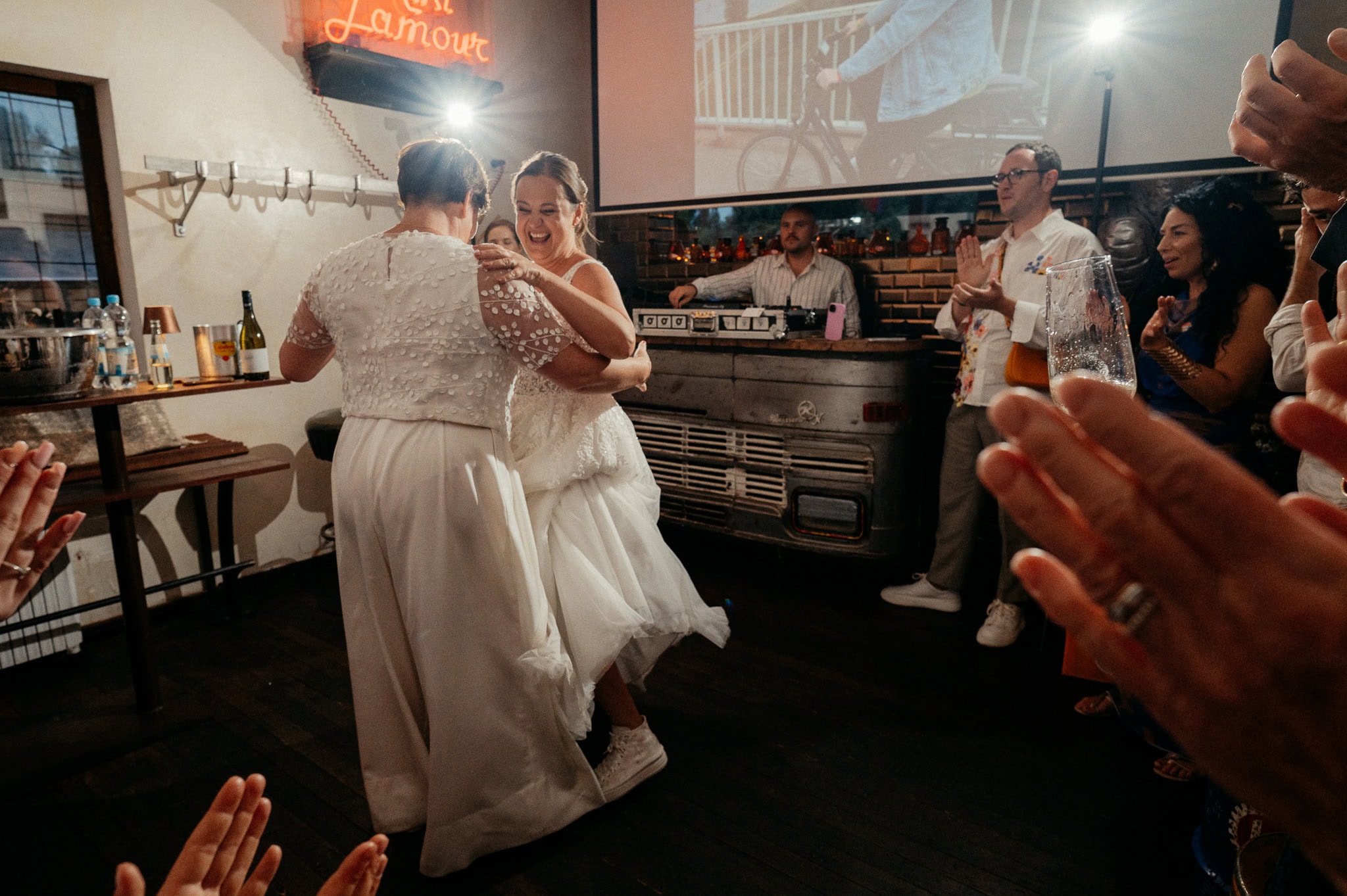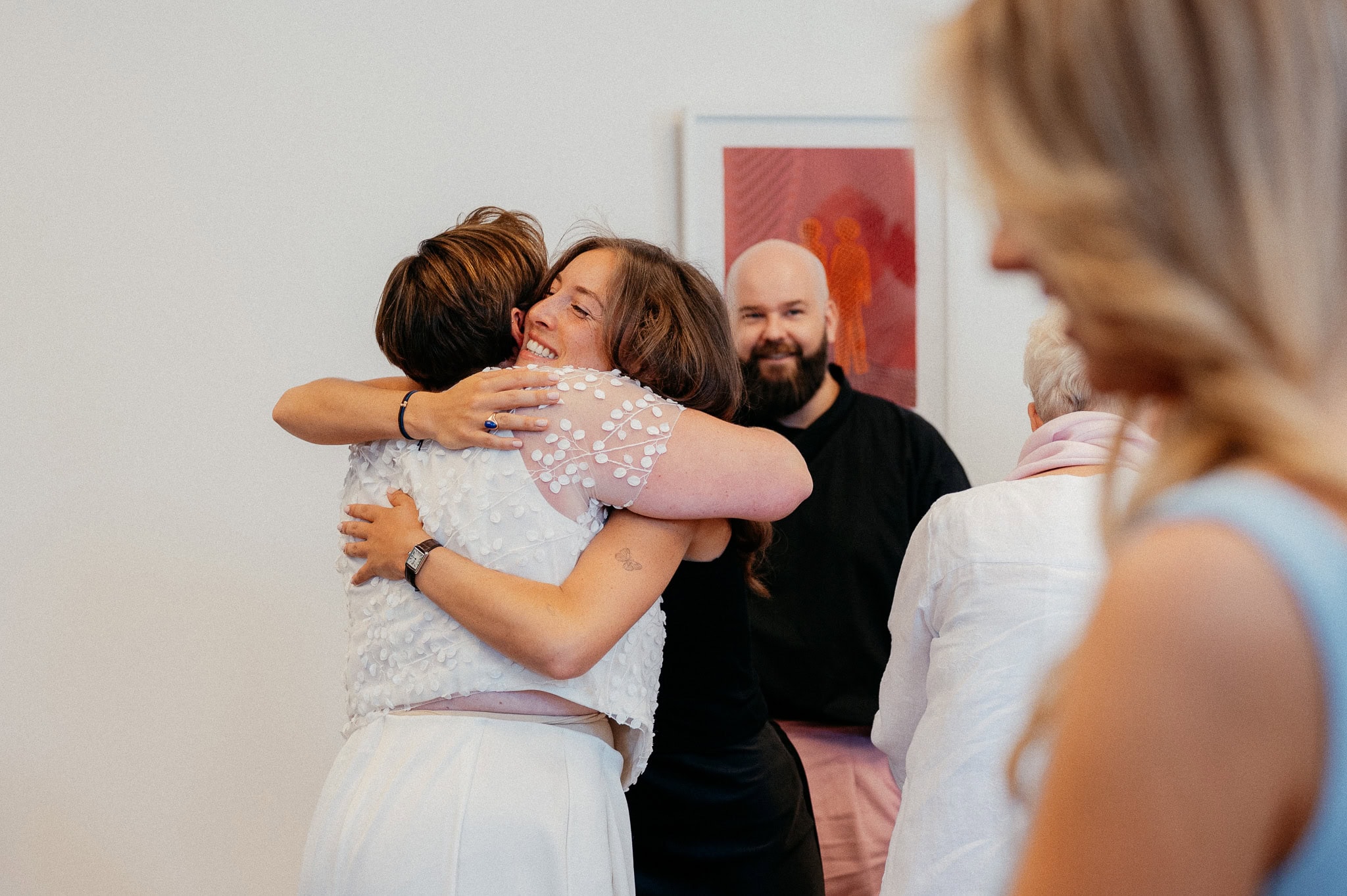 Gleicher Ort, vertraute Menschen, aber eine ganz neue Geschichte. Genau das liebe ich an Hochzeiten: Jede ist einzigartig, selbst wenn der Rahmen ähnlich ist. Die urbane, moderne Atmosphäre der Garage passte perfekt zu dieser queeren Hochzeit und hat den individuellen Charakter des Tages unterstrichen. Eine wundervolle Location für etwas kleinere Feiern.