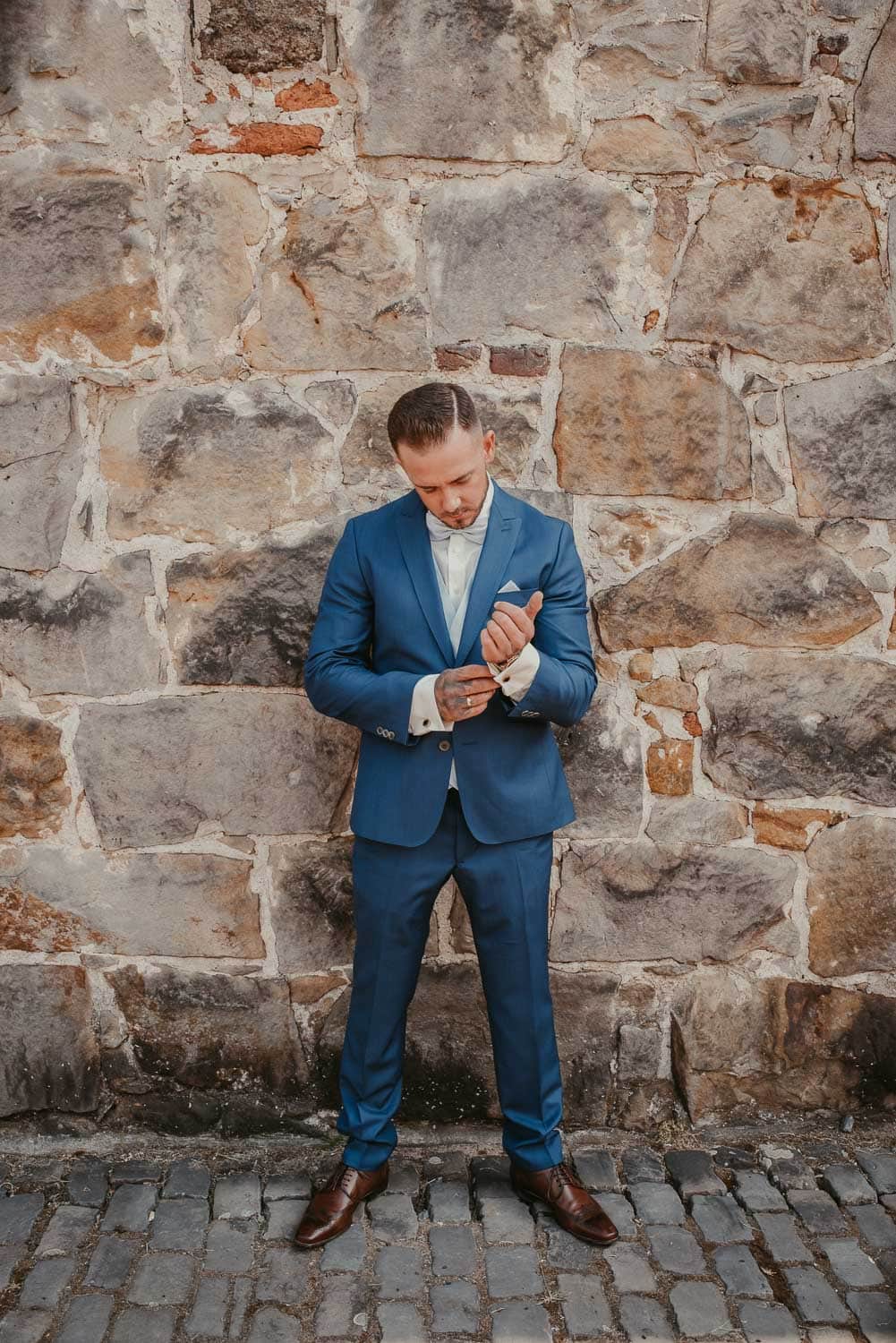 Die standesamtliche Trauung fand auf der Burg Wissem in Troisdorf statt – eine Kulisse mit historischem Charme, die sofort Atmosphäre schafft. Der Tag war hochsommerlich heiß (so ein typischer „dieses Jahr ist es wieder richtig warm“-Tag). Umso dankbarer waren alle, dass das Standesamt angenehm klimatisiert war. Klingt nach einem kleinen Detail – ist aber an solchen Tagen Gold wert und bleibt definitiv hängen.