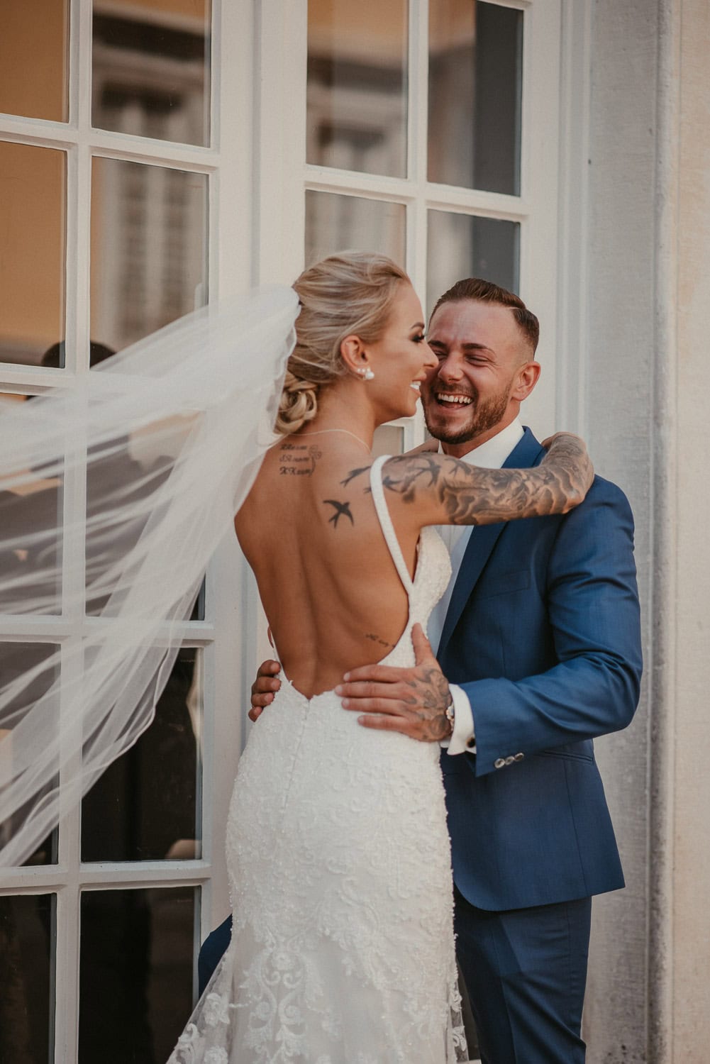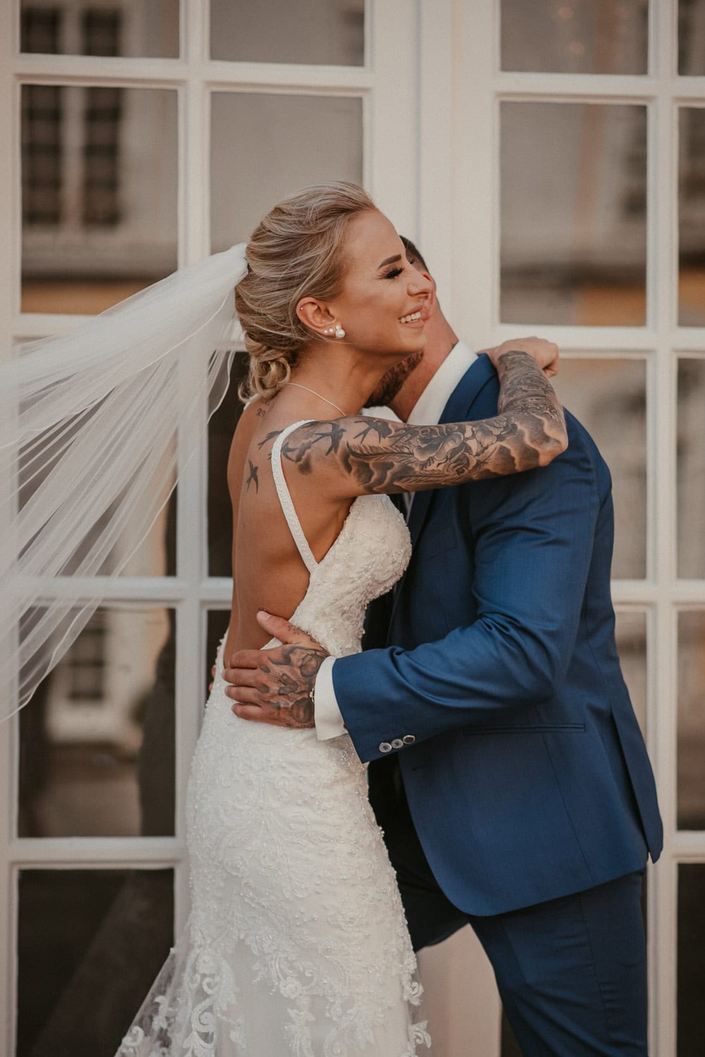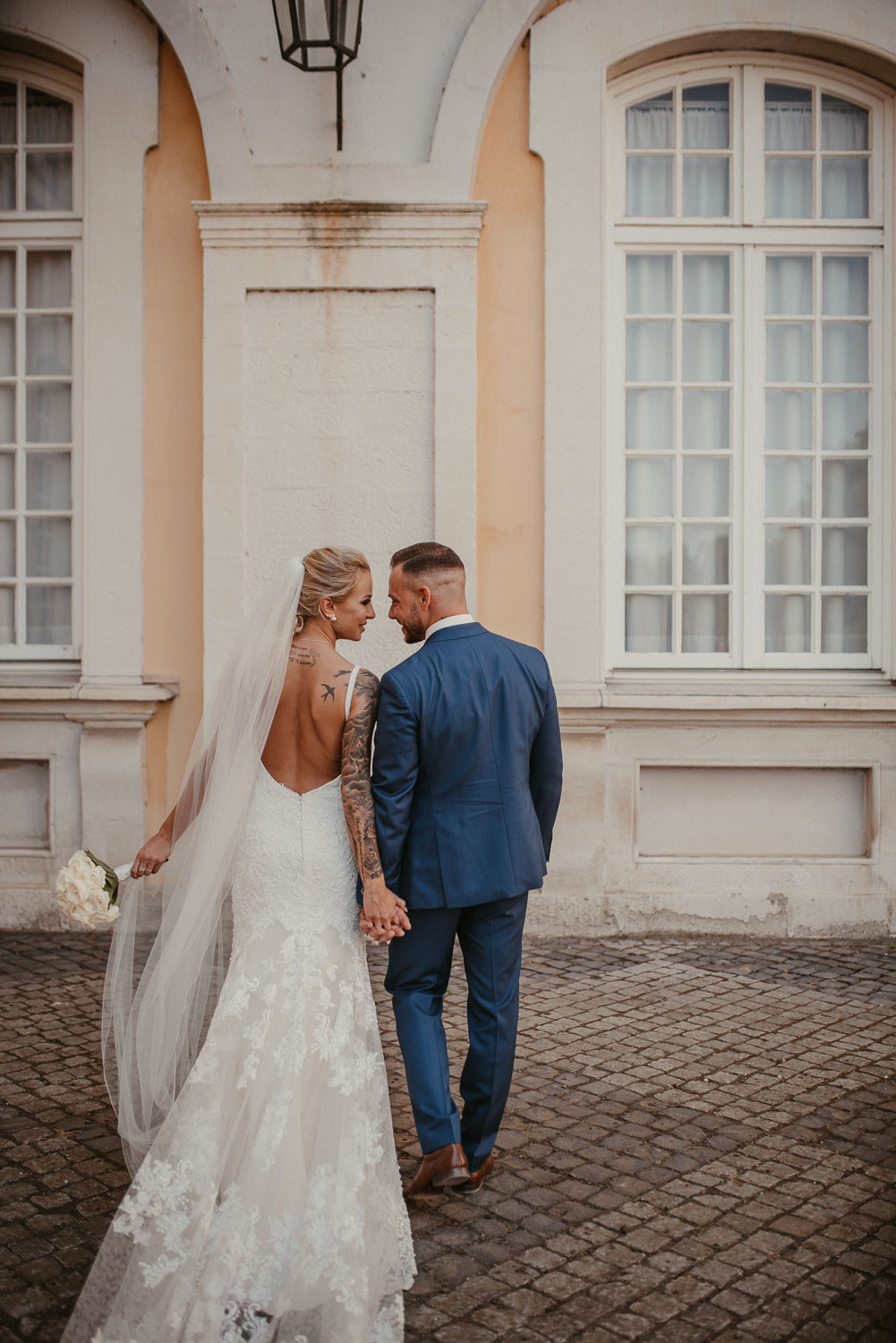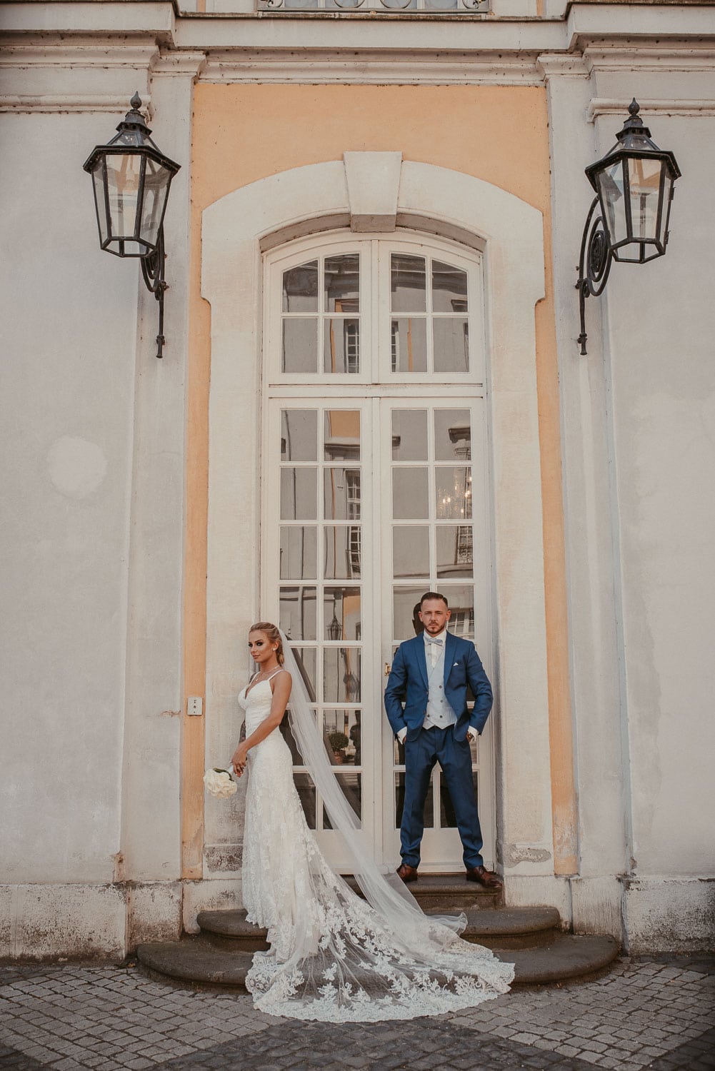 Für das Brautpaarshooting haben wir uns eine traumhafte Kulisse ausgesucht: das Gelände rund um das Schloss Brühl. Diese Location bietet nicht nur eine malerische Umgebung mit historischem Flair, sondern auch viele ruhige Ecken für intime Momente zu zweit. Genau das macht es so perfekt für emotionale Hochzeitsfotos.