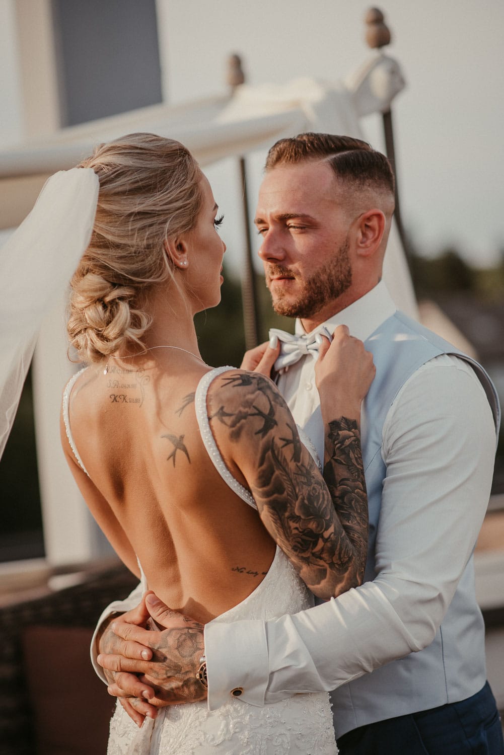 Für uns als Hochzeitsfotografen sind genau diese Rahmenbedingungen wichtig: Wenn Ihr Euch wohlfühlt, entstehen automatisch entspanntere Bilder. Und Ihr könnt Euch viel mehr auf Euch konzentrieren – statt auf die Hitze.