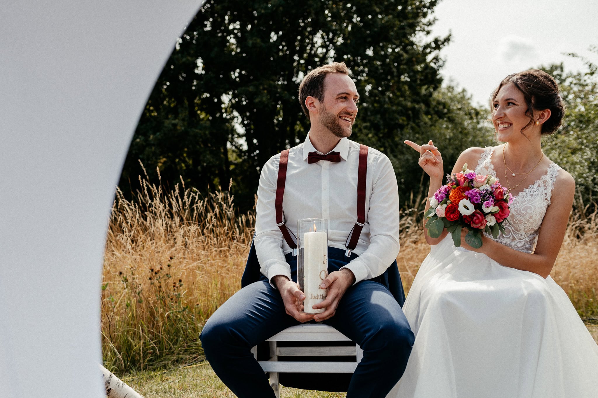 Hey Düsseldorf – Lust auf freie Trauungen an der frischen Luft? Die Beliebtheit von feien Trauungen steigt Jahr für Jahr, was einfach daran liegt, dass jedes Brautpaar individuell entscheiden kann, wie Sie diese gestalten möchten. Ob klassisch mit Trauredner*in oder wie im Fall von Judith und Lukas mit kirchlicher Unterstützung. Es war für uns tatsächlich das erste Mal, dass wir als Hochzeitsfotograf ein Brautpaar bei seiner kirchlichen Trauung unter freiem Himmel begleiten durften. Es war einfach nur wunderschön.