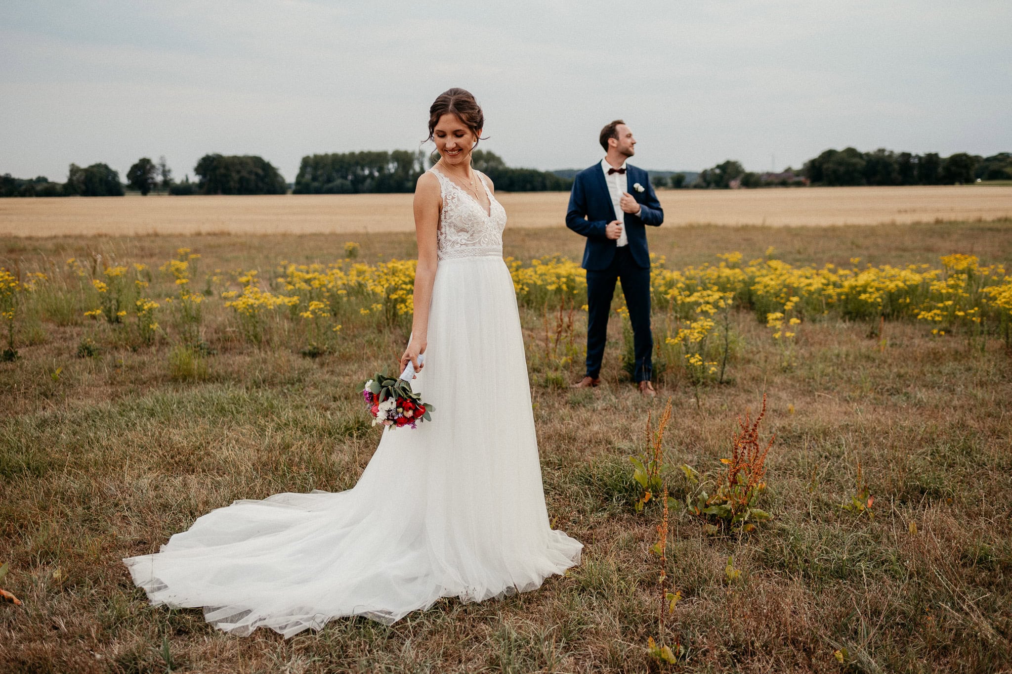 Für das Paar-Shooting sind wir gegen Abend zuerst auf das nahegelegene Feld gewandert und haben dort den Platz und die Weite genutzt, um Fotos in Bewegung zu machen.