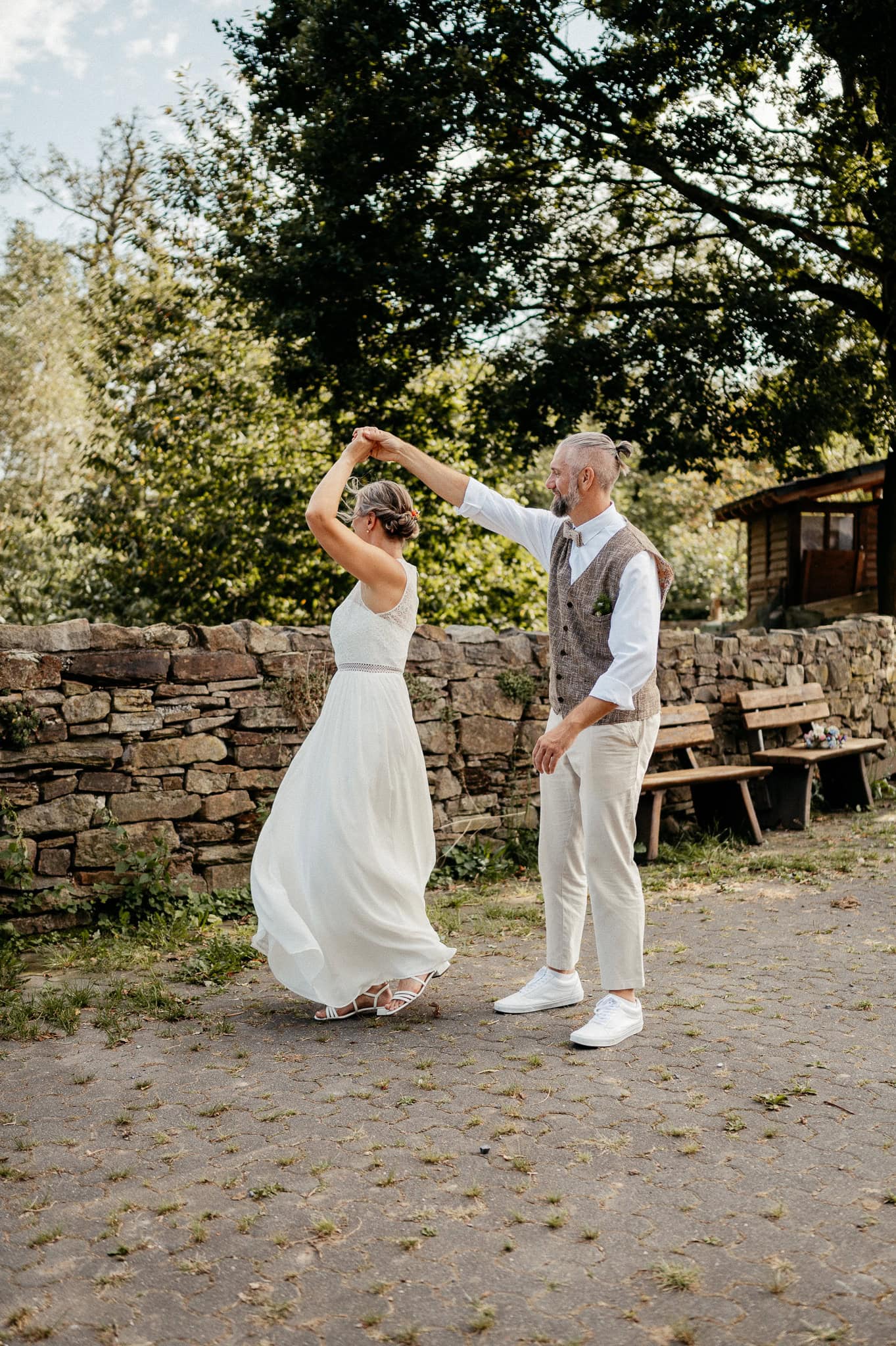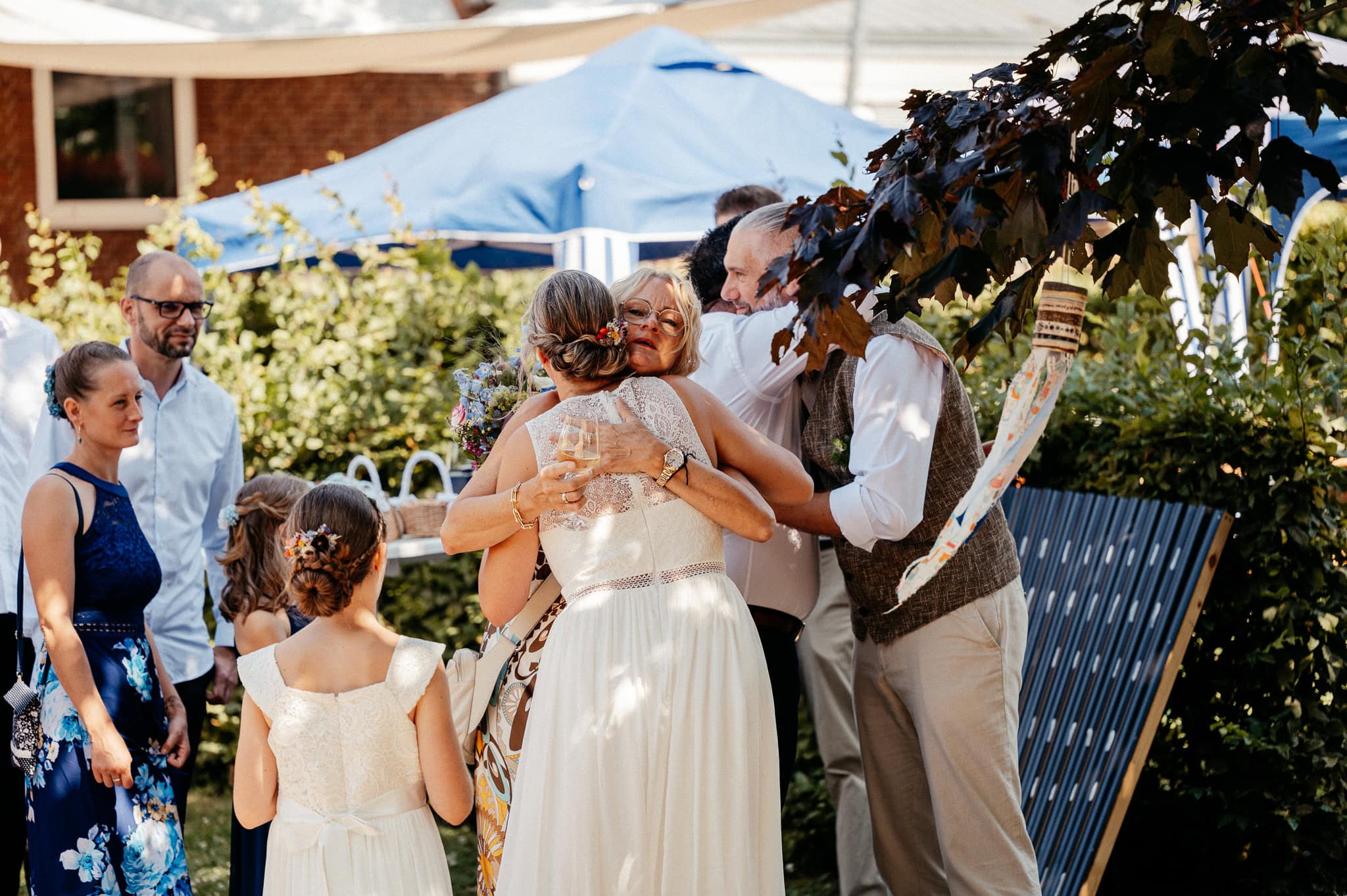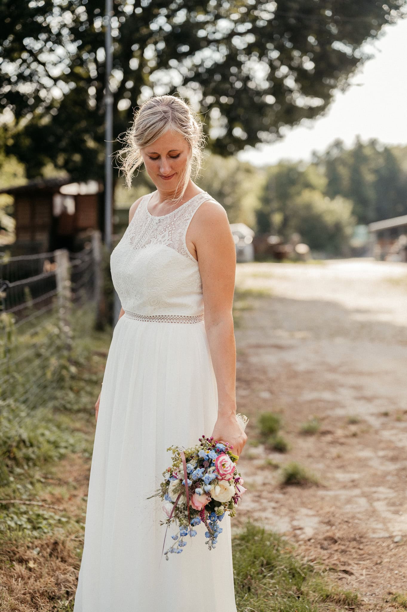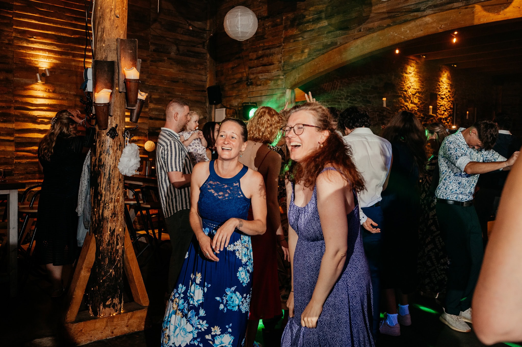 Rustikale Locations bringen oft automatisch Ruhe in den Tag. Gäste verteilen sich entspannt, es entstehen kleine Gespräche am Rand, ein kurzes Lachen zwischendurch, eine Umarmung, die niemand „plant“. Für Euch als Brautpaar heißt das: Ihr erlebt Euren Tag bewusster. Für uns als Fotografinnen entstehen Bilder, die genau diese Nähe und Leichtigkeit zeigen.