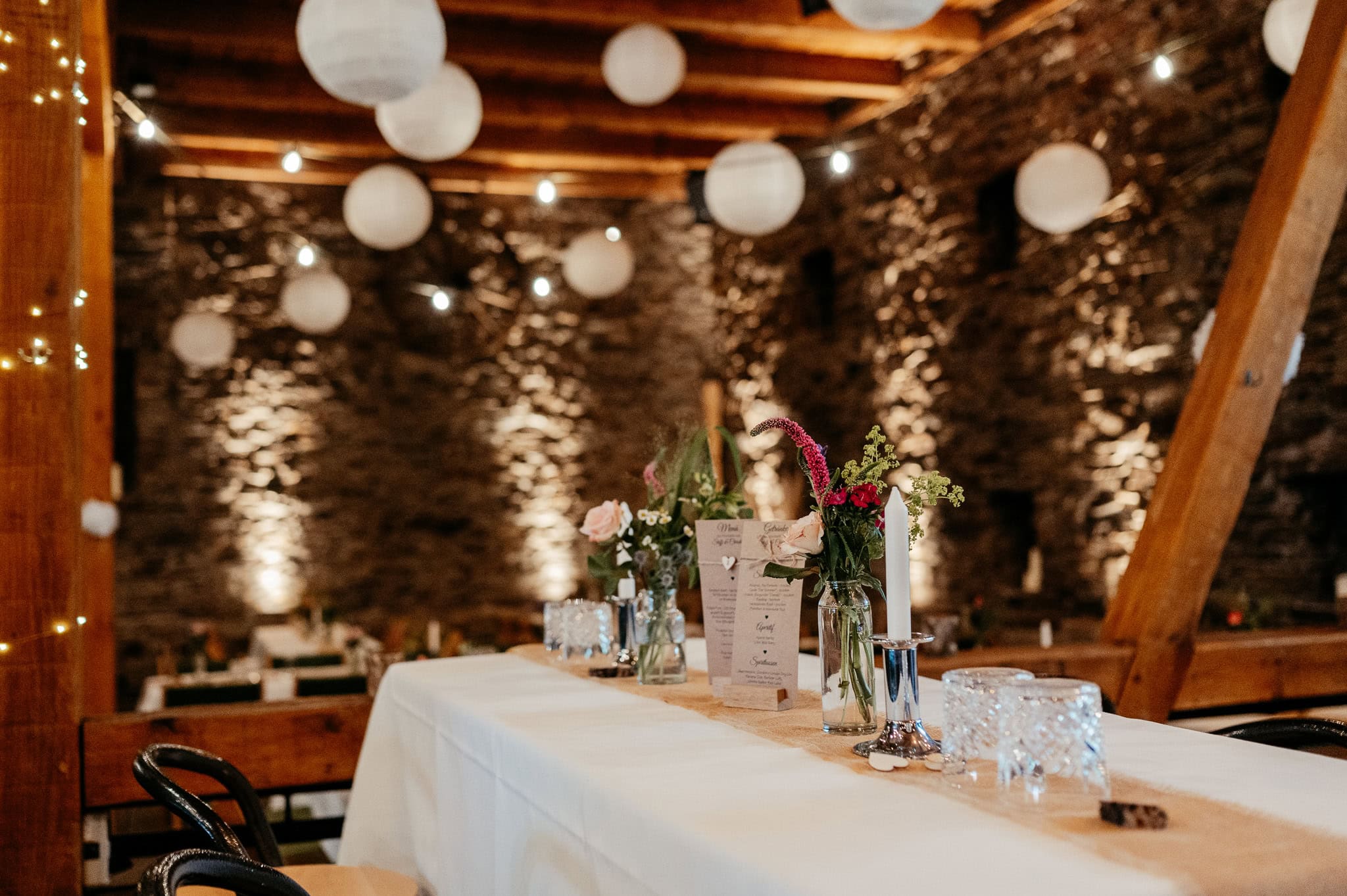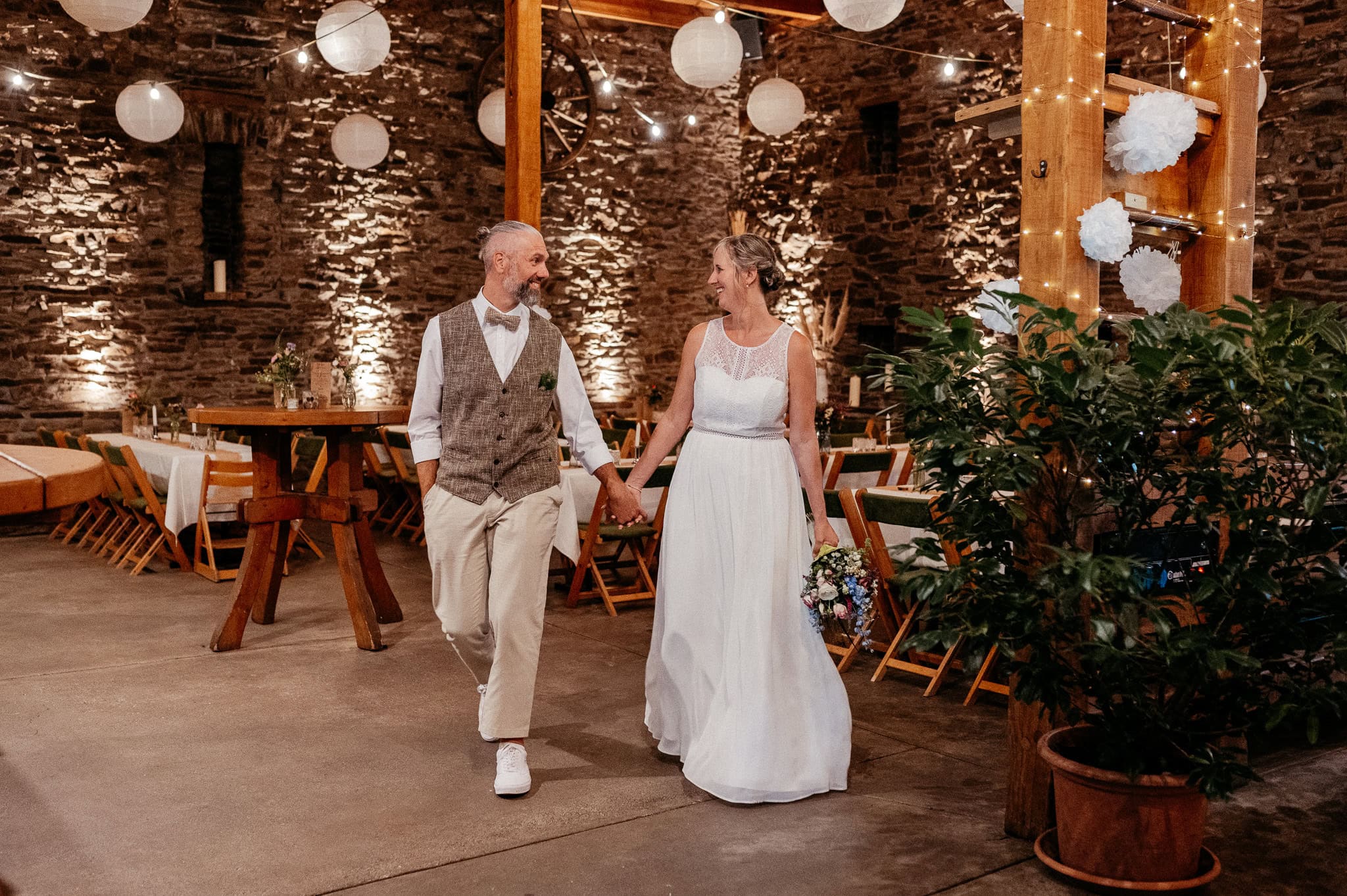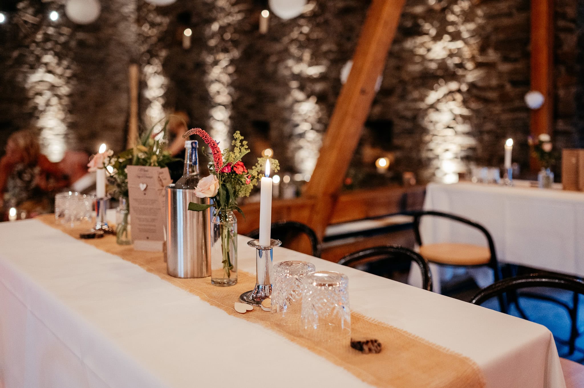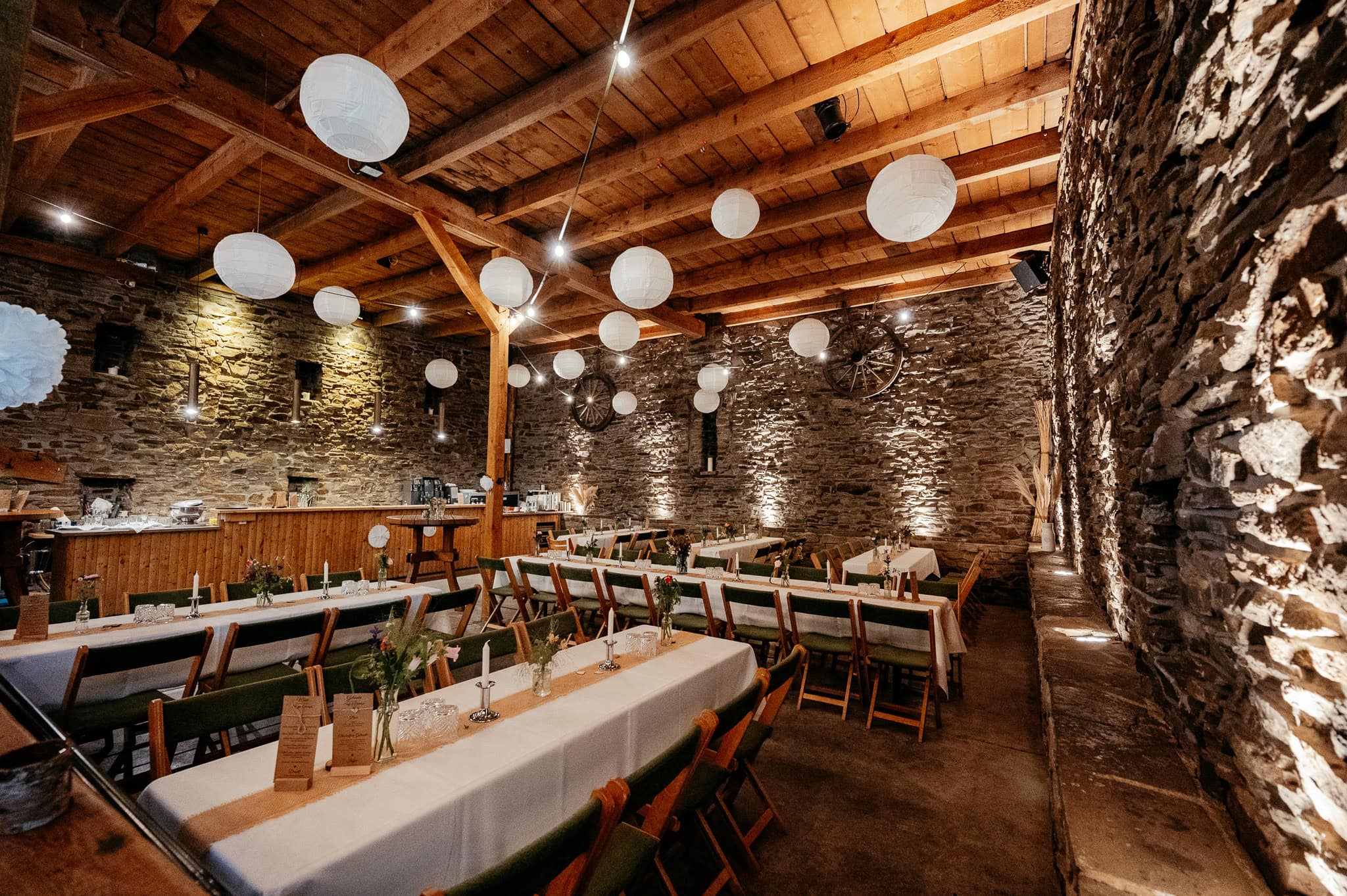 Wenn der Tag langsam in den Abend übergeht, verändert sich die Stimmung in der Scheune spürbar. Das Licht wird weicher, die Atmosphäre intimer, Gespräche werden leiser, Lachen wird wärmer. Diese Stimmung trägt die Bilder fast von selbst – und rundet Eure Reportage emotional ab.