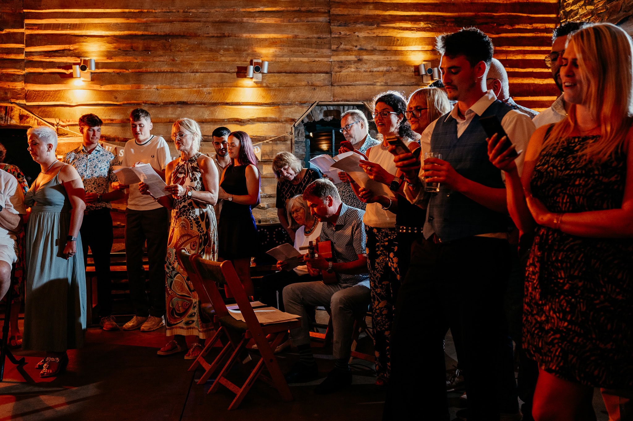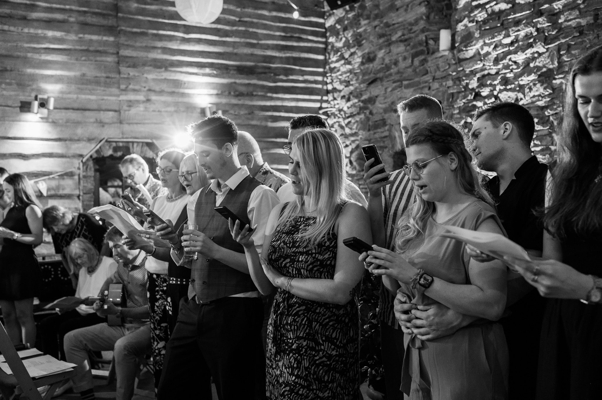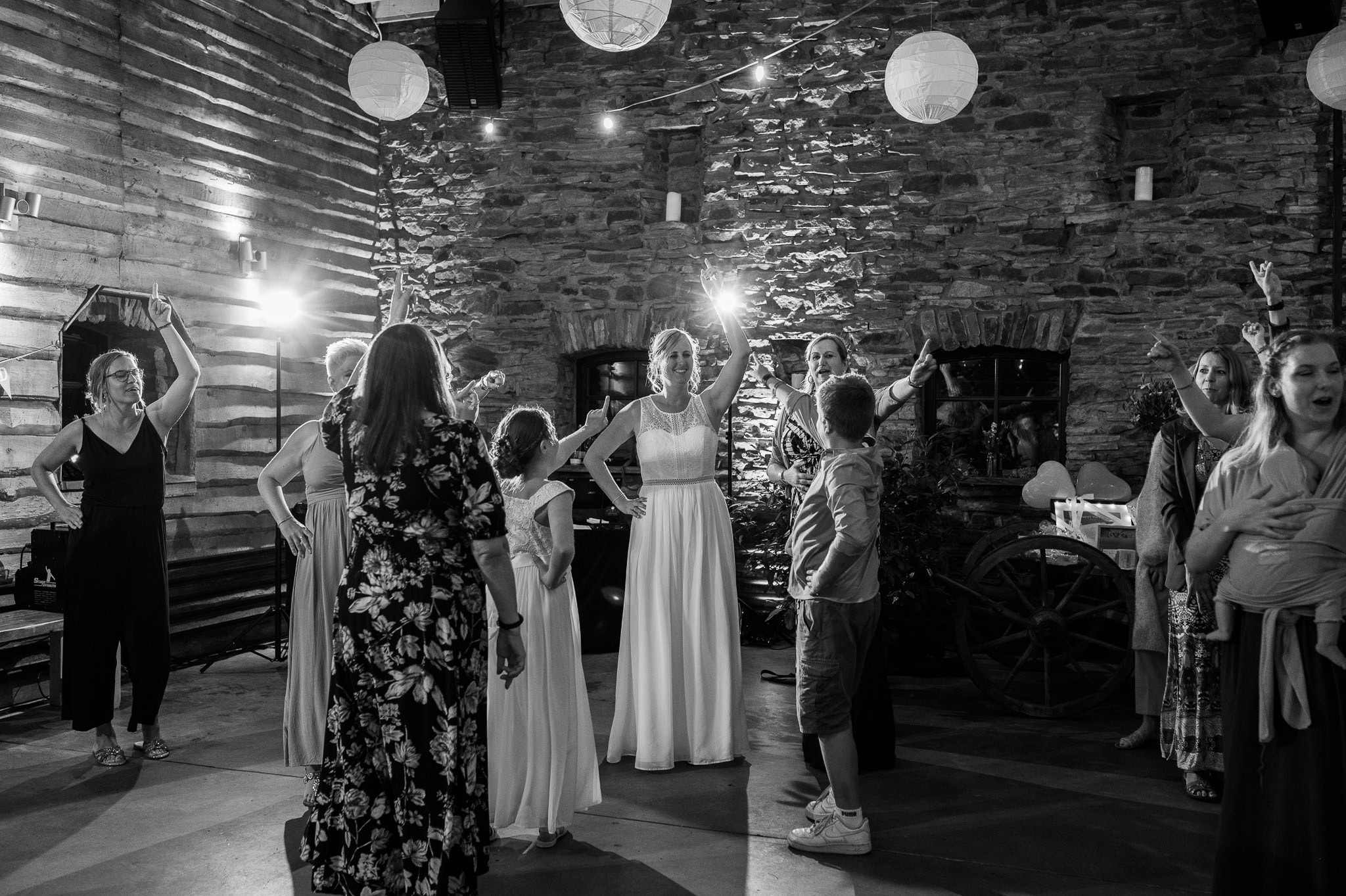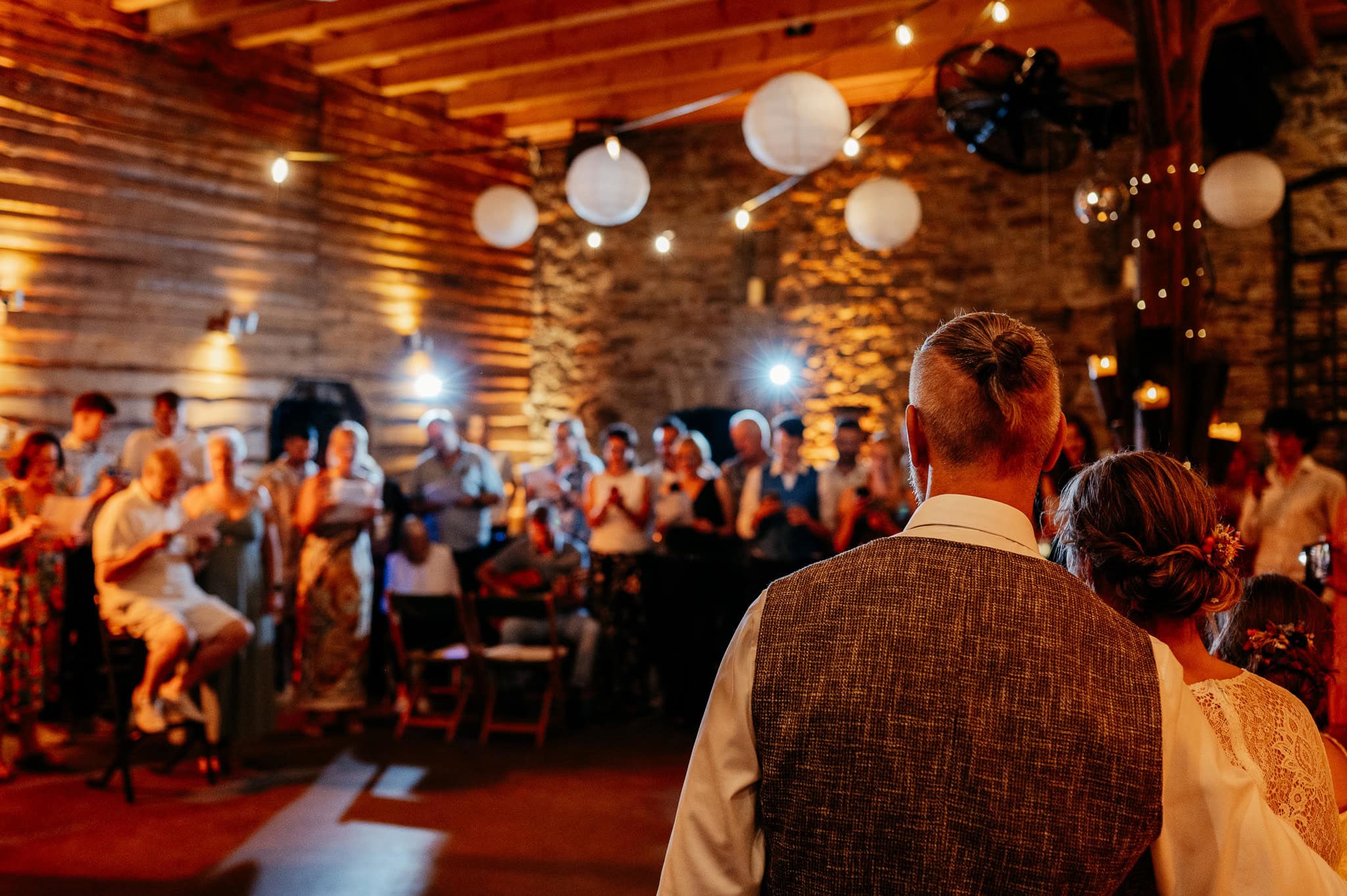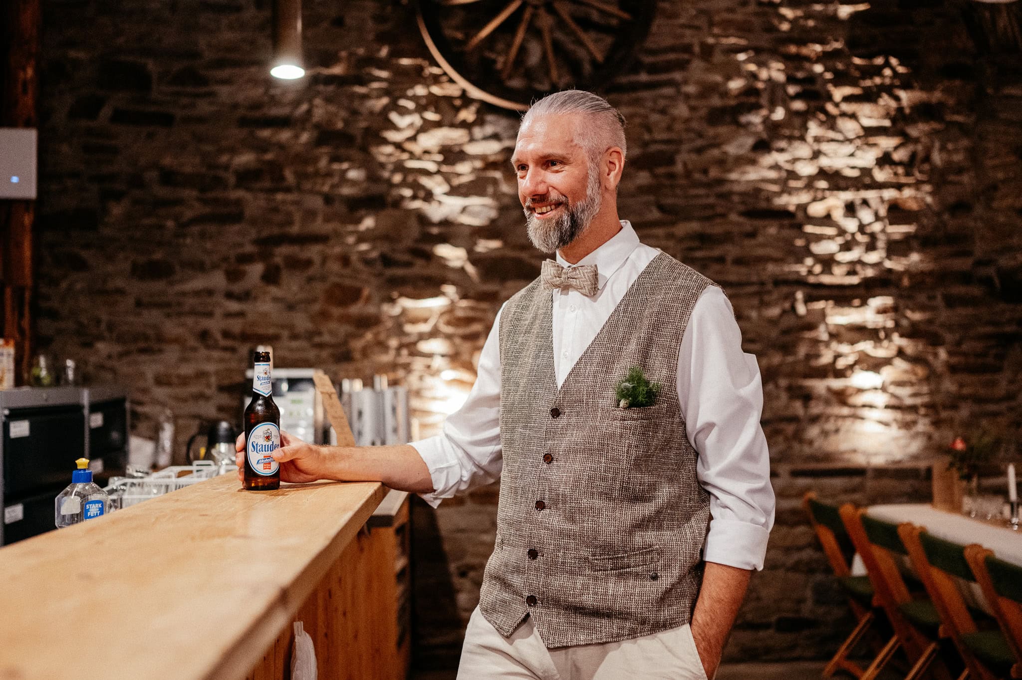 Wenn der Tag langsam in den Abend übergeht, verändert sich die Stimmung in der Scheune spürbar. Das Licht wird weicher, die Atmosphäre intimer, Gespräche werden leiser, Lachen wird wärmer. Diese Stimmung trägt die Bilder fast von selbst – und rundet Eure Reportage emotional ab.