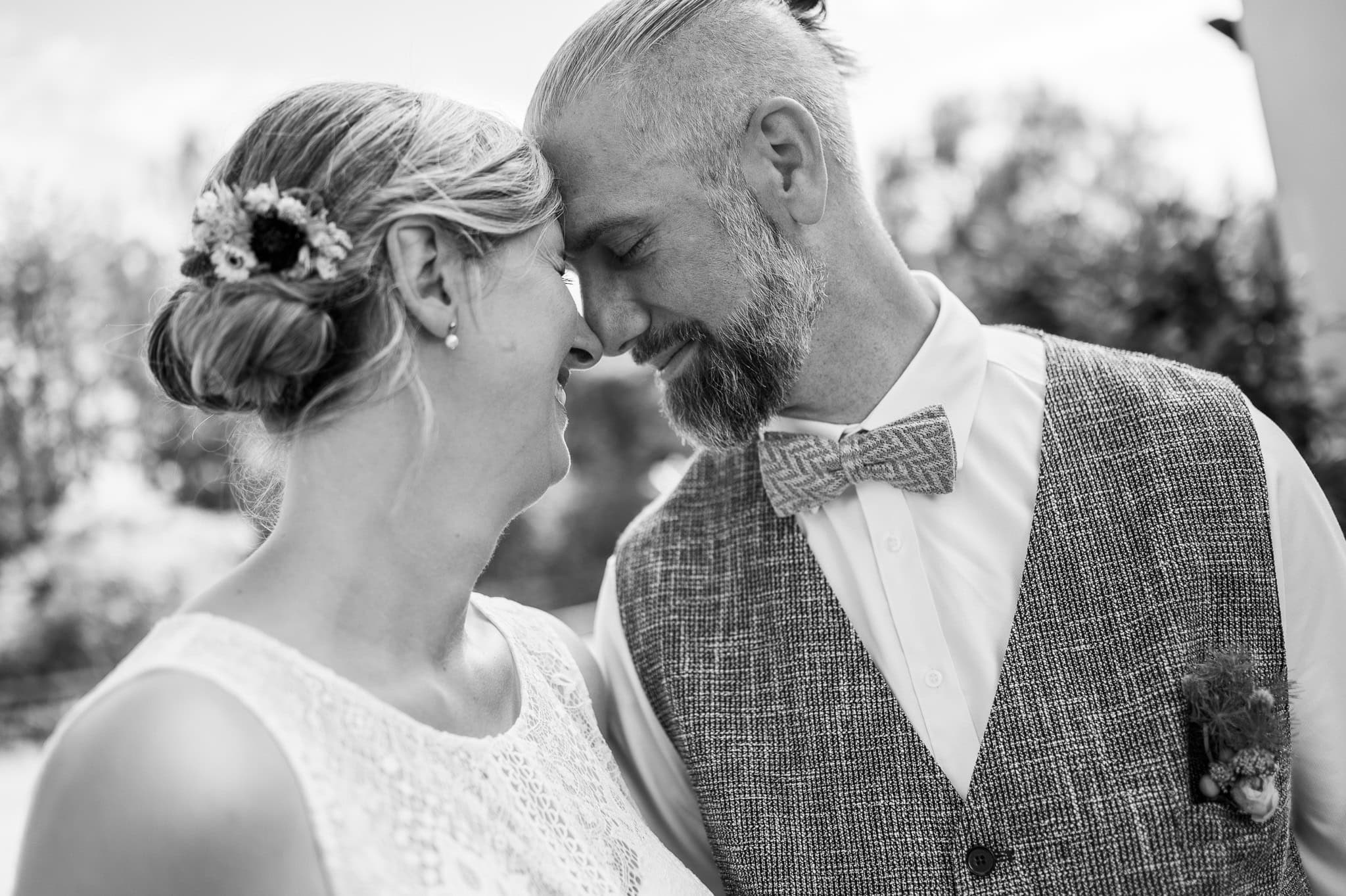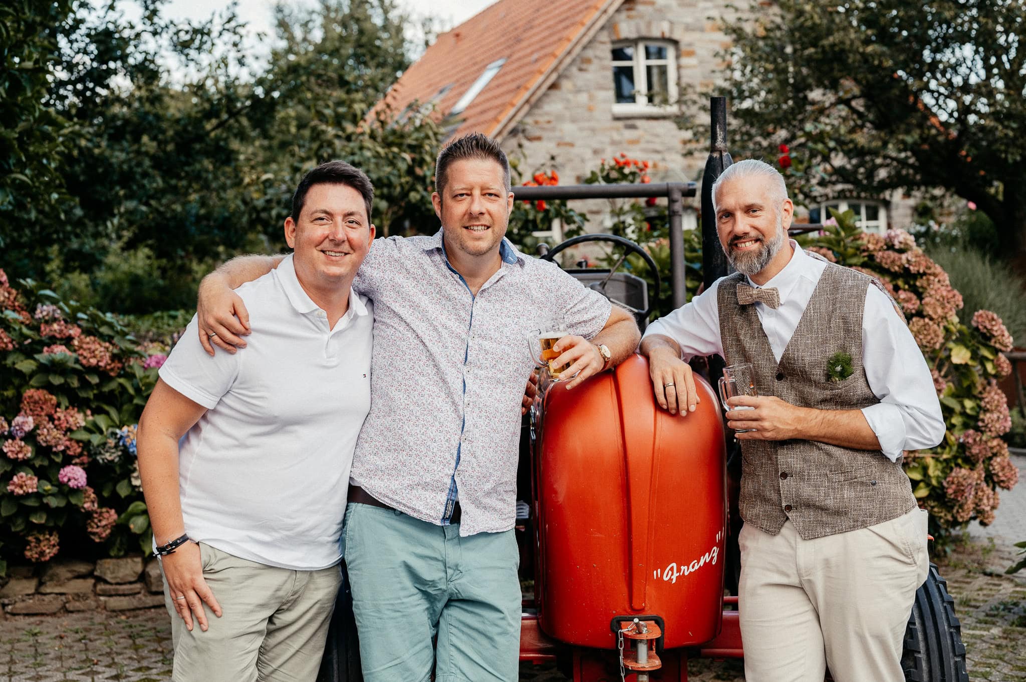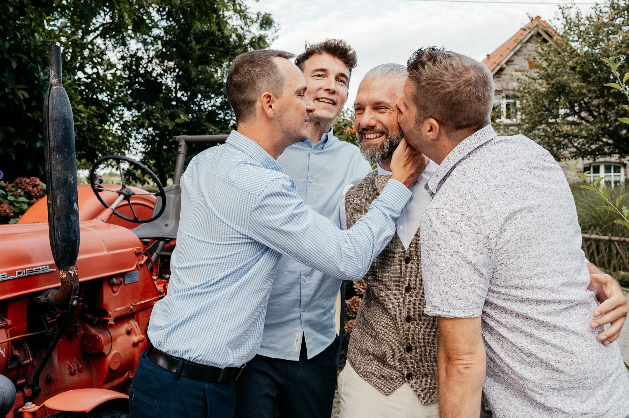 In den meisten Fällen lohnt es sich, Paarfotos und Gruppenbilder direkt vor Ort zu machen. Ein schöner Hof bietet oft viele unterschiedliche Fotospots: mal rustikal, mal weit und offen, mal ruhig im Hintergrund. Und das Beste: Es passt sich Eurem Tagesablauf an. Kein Stress, keine langen Wege, kein ständiges „Wir müssen jetzt los“.