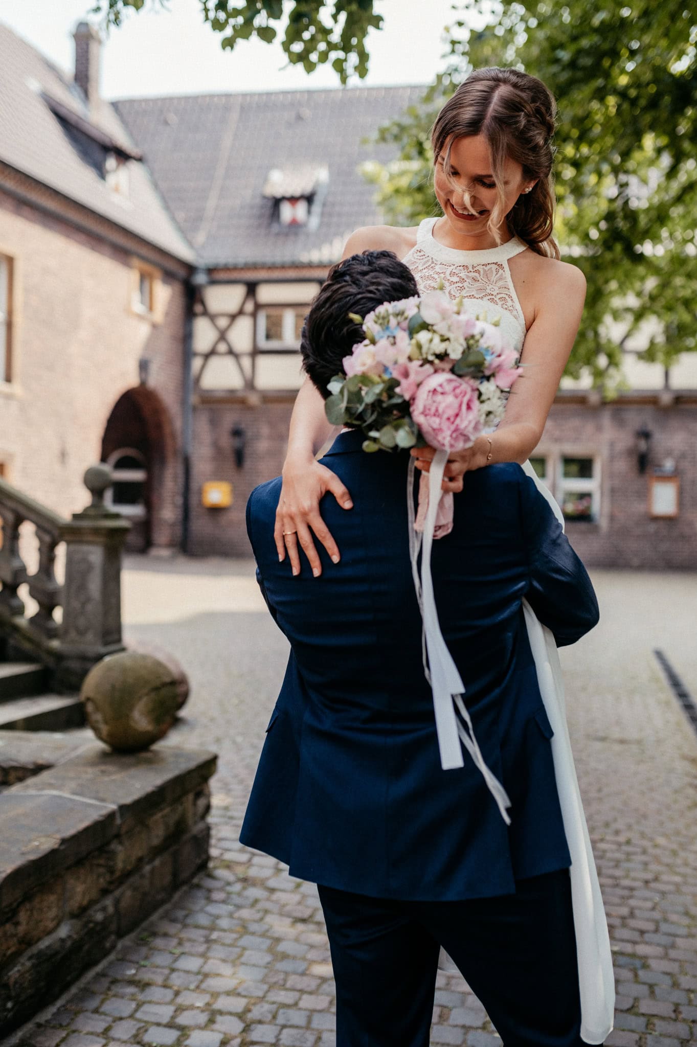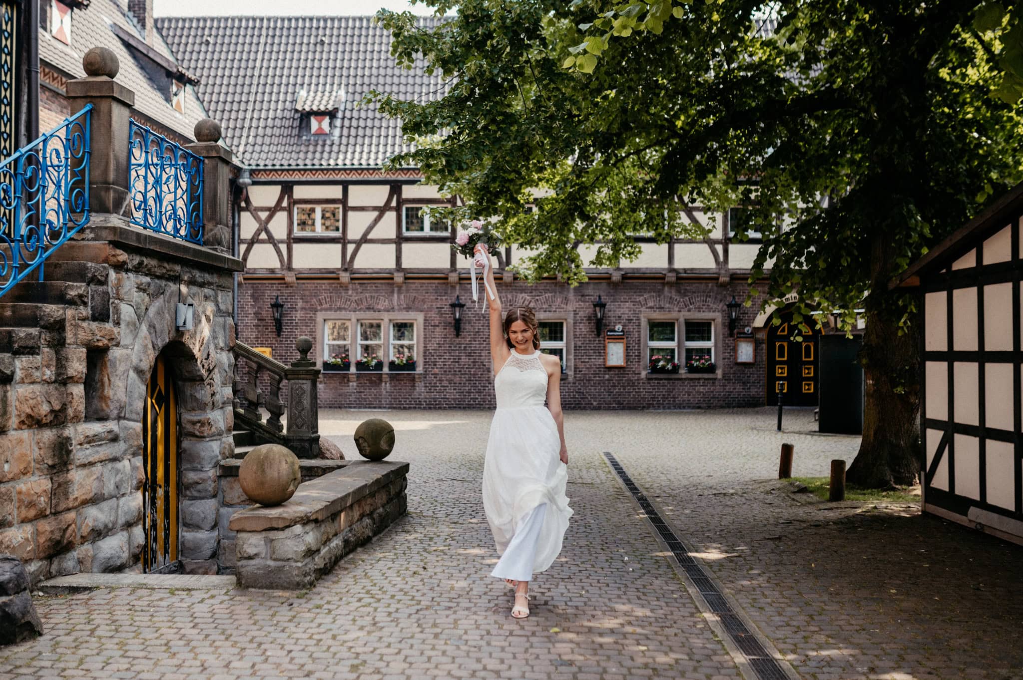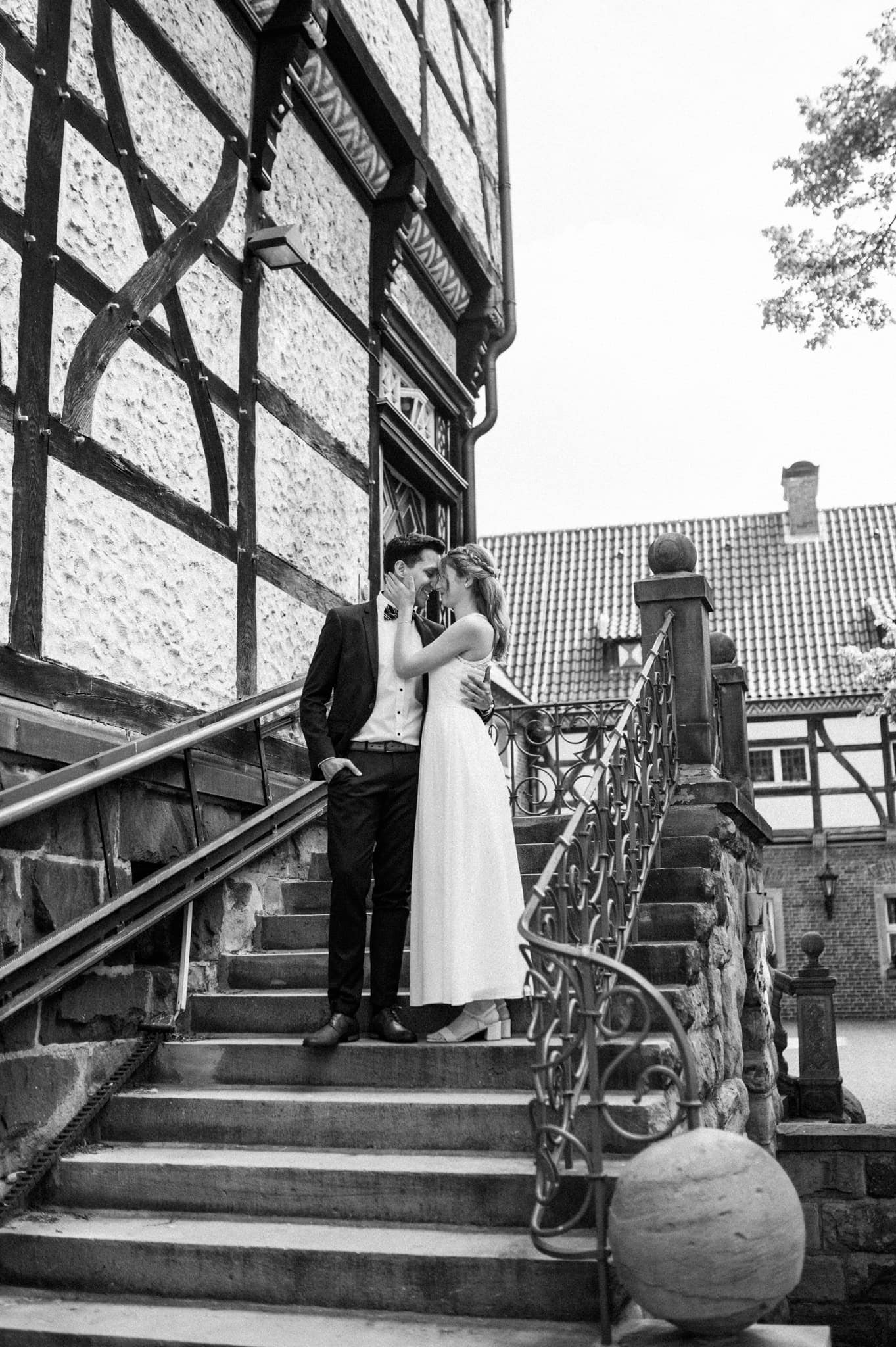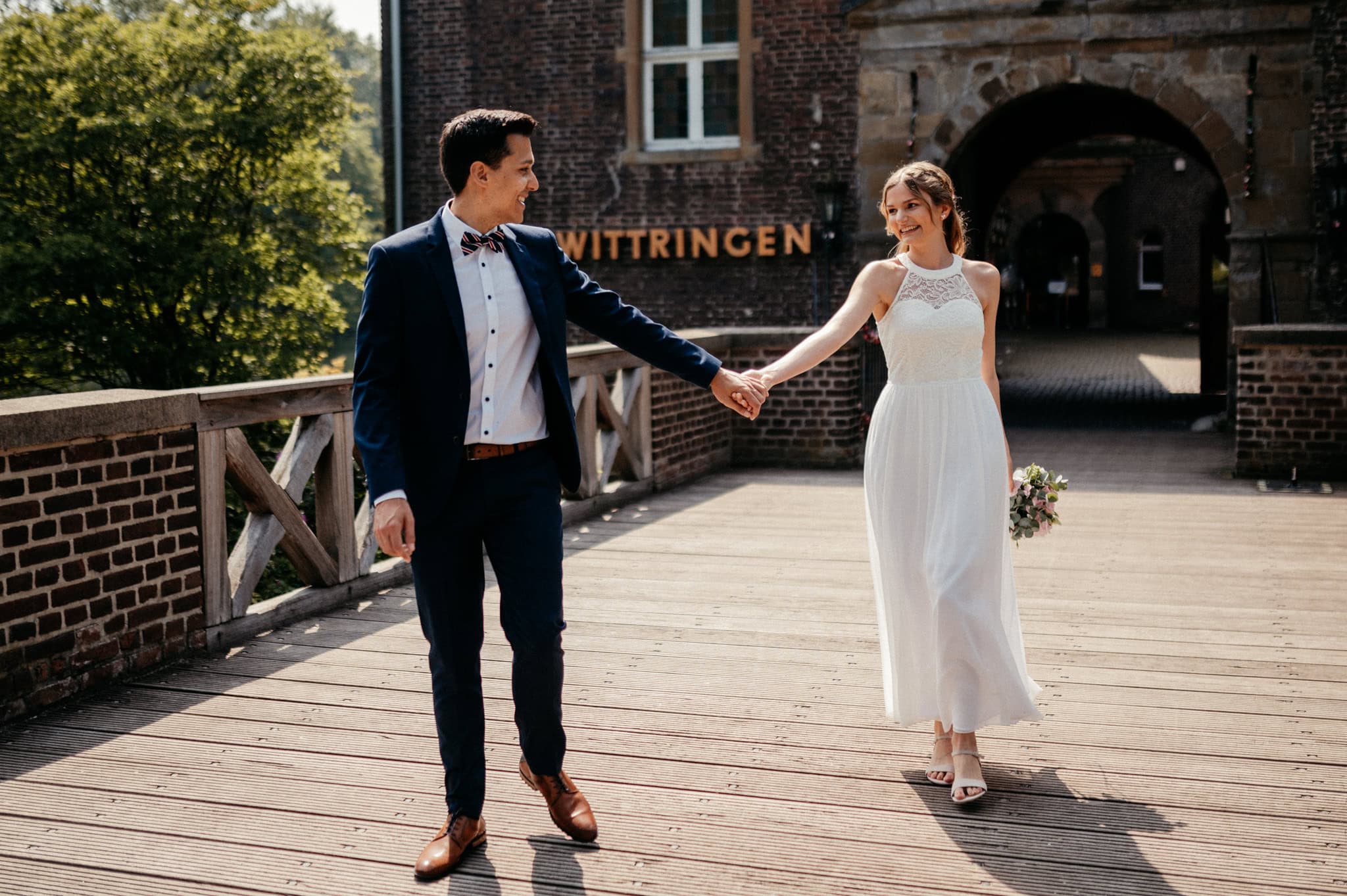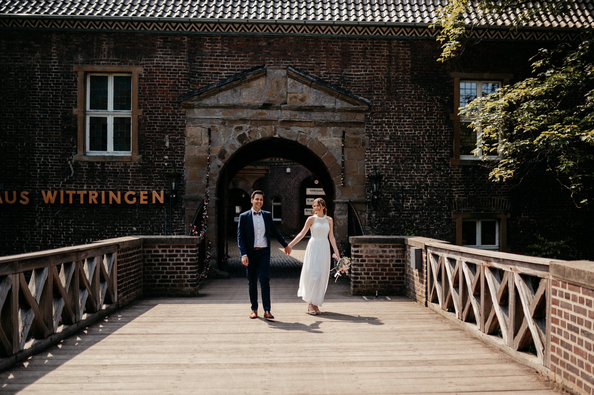 Das Schloss Wittringen hat einen ganz besonderen Charme. Umgeben von Natur, mit historischer Architektur und vielen ruhigen Ecken für emotionale Hochzeitsfotos. Tatsächlich waren wir dort auch schon im Winter zu einem Krimidinner – bei Schnee. Superschön, ganz egal zu welcher Jahreszeit. Aber genug abgeschweift.