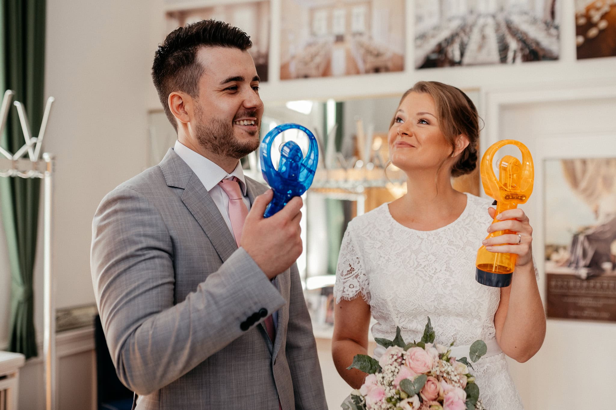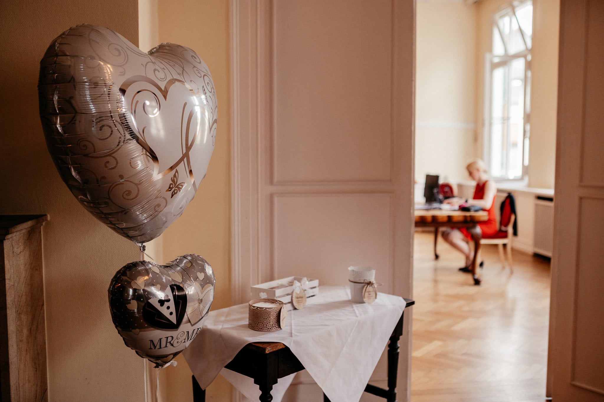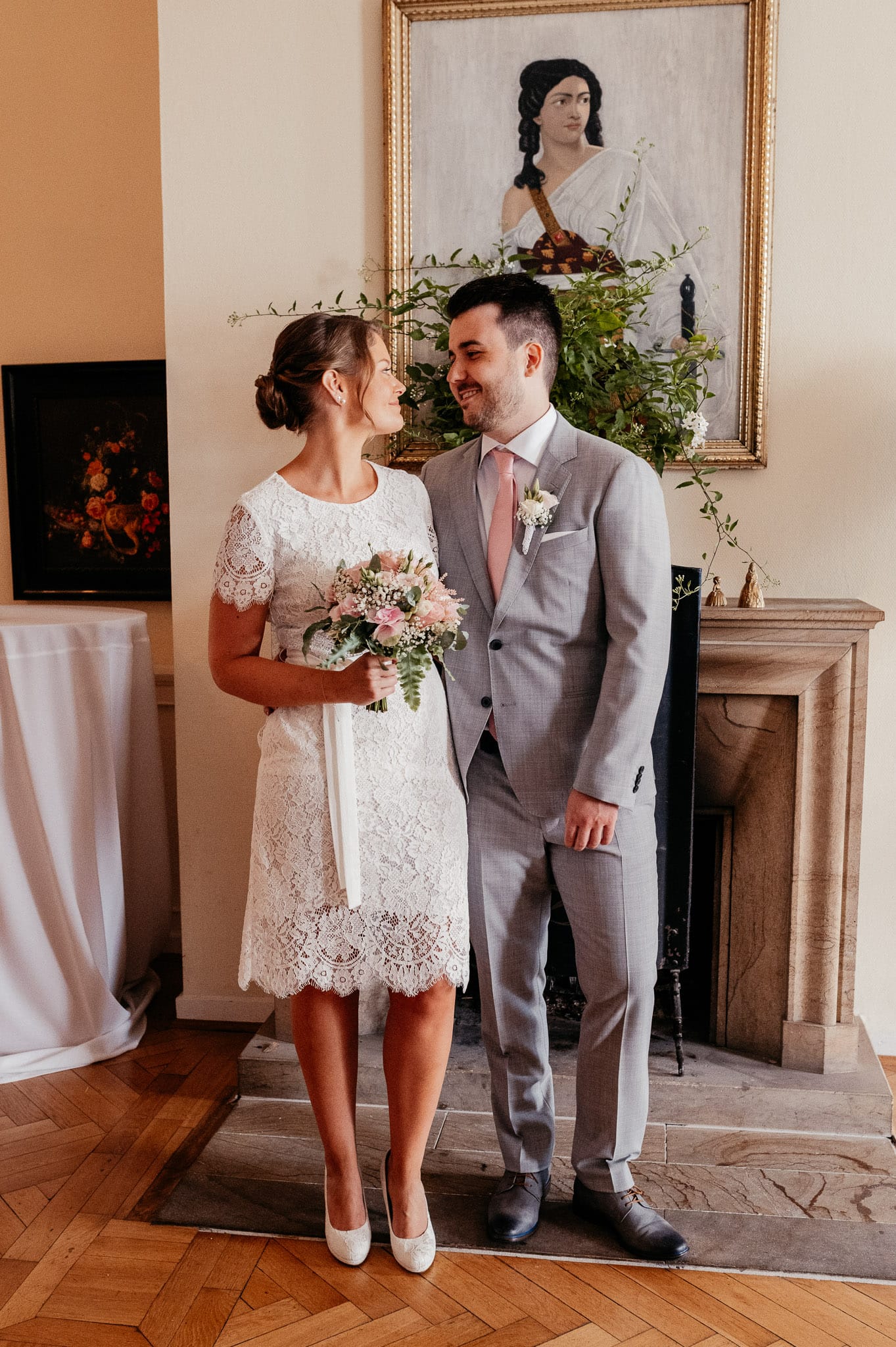 Eigentlich hatten die beiden einen anderen Plan. Aufgrund der Personenanzahlbegrenzung im Standesamt entschieden sie sich jedoch für diese wunderschöne Alternative. In der Kulturvilla hatten sie die Möglichkeit, den engsten Kreis der Familie mitzunehmen. Zu diesem Zeitpunkt lag die erlaubte Personenzahl bei etwa 20 Personen – perfekt für eine kleine, intime standesamtliche Hochzeit.