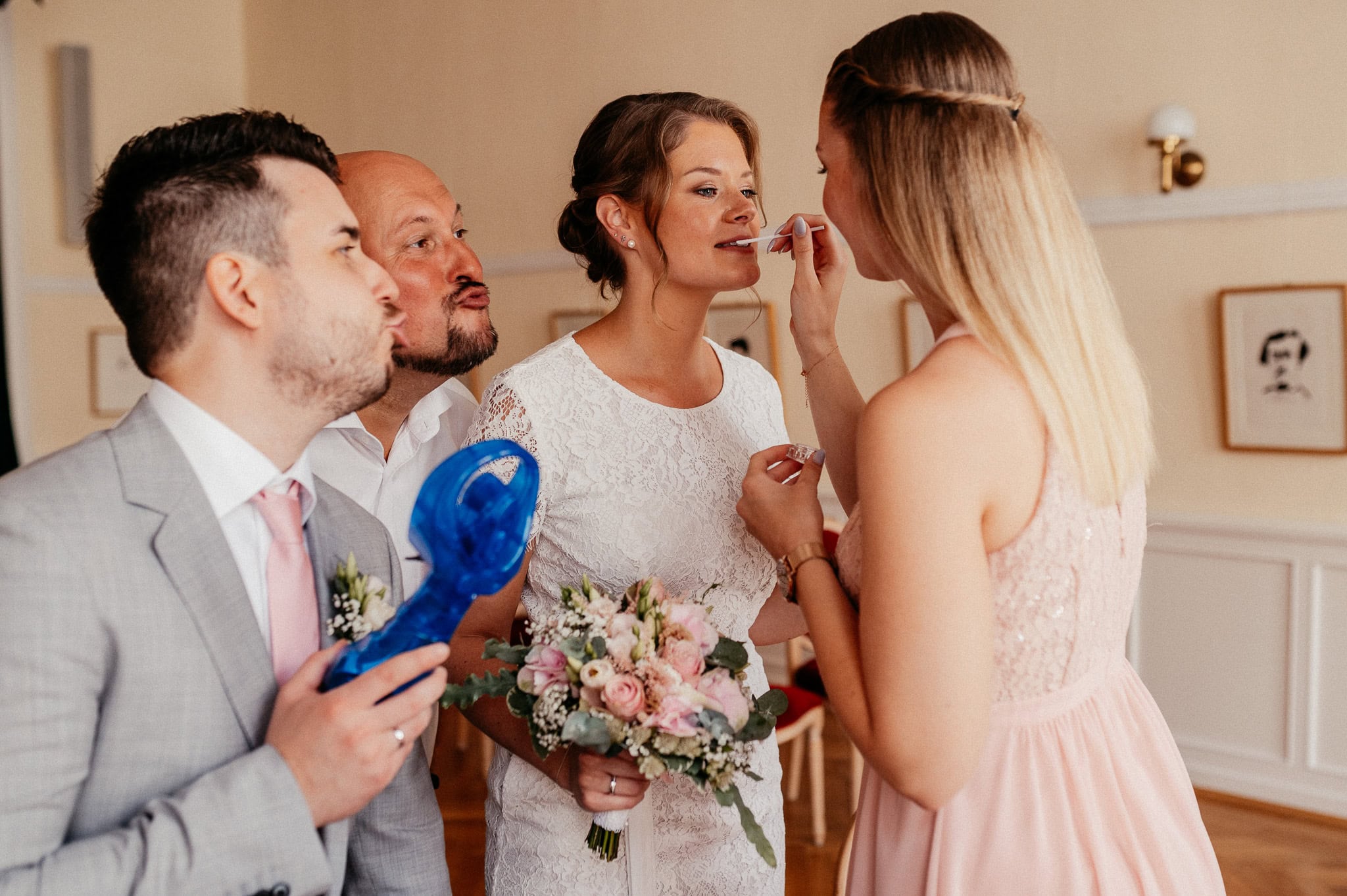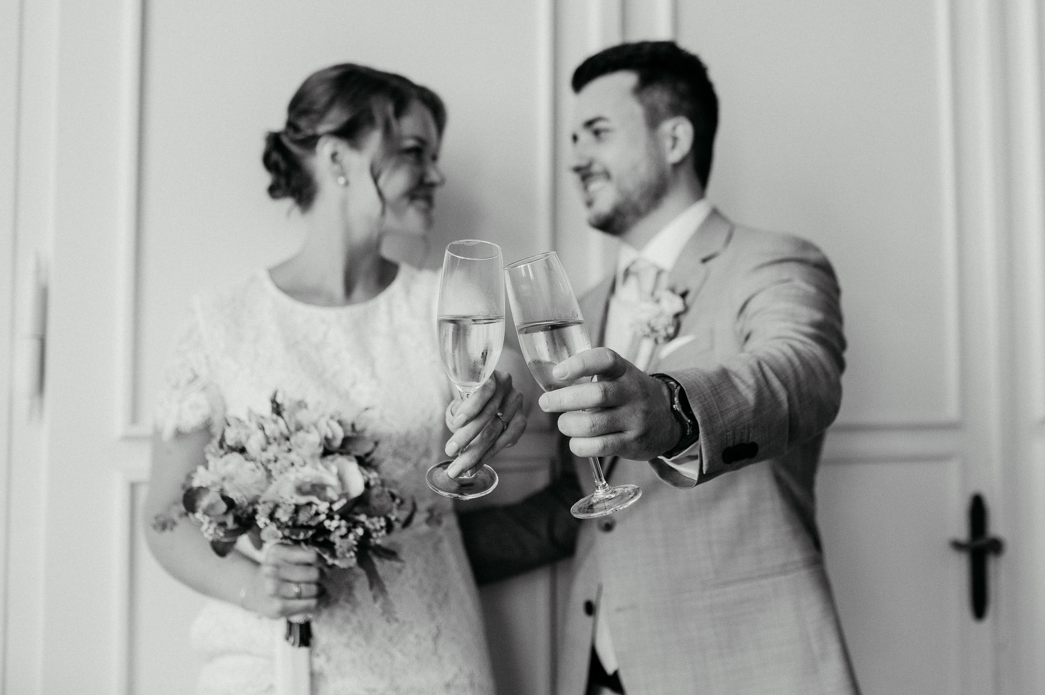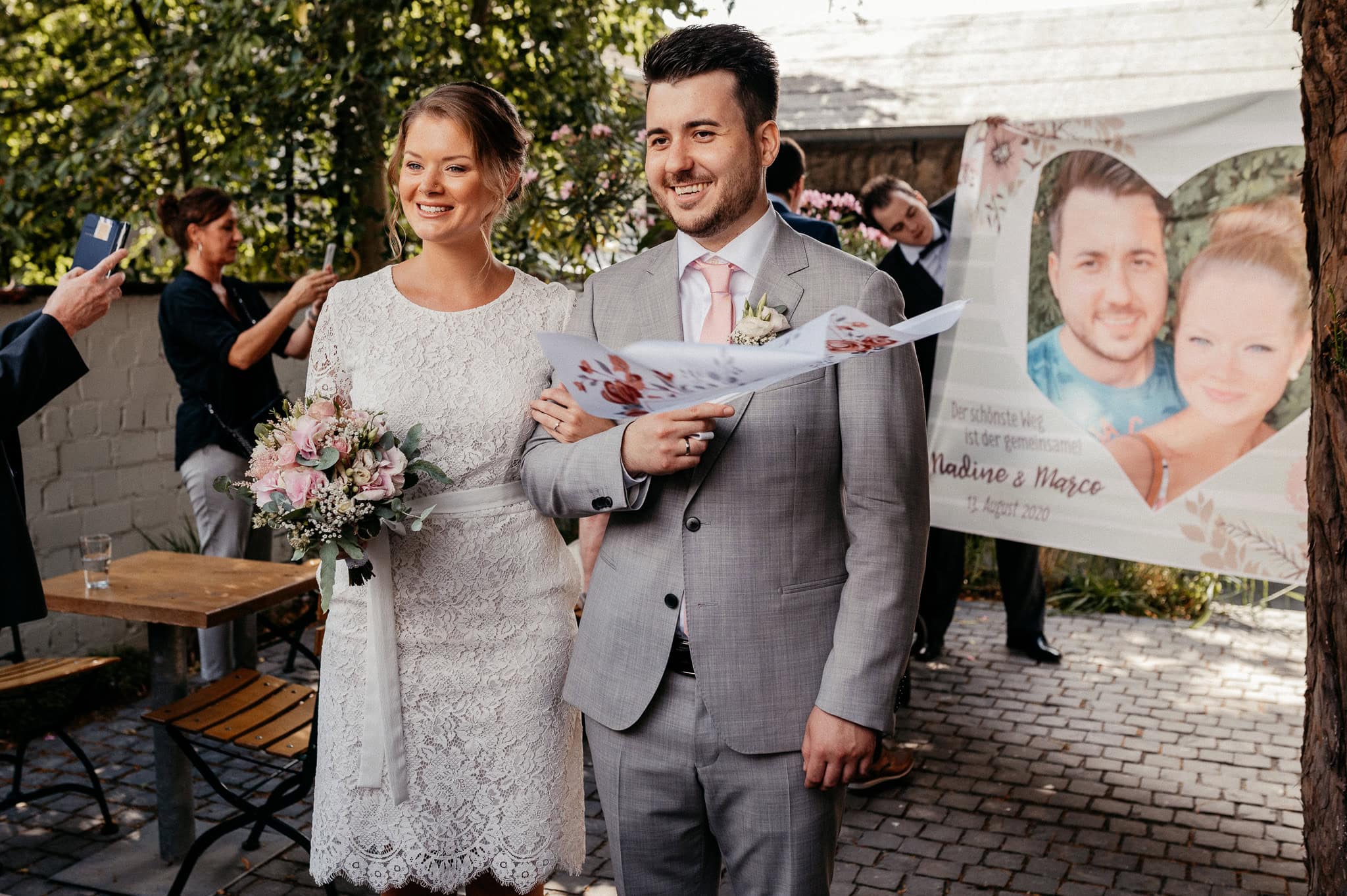 Eigentlich hatten die beiden einen anderen Plan. Aufgrund der Personenanzahlbegrenzung im Standesamt entschieden sie sich jedoch für diese wunderschöne Alternative. In der Kulturvilla hatten sie die Möglichkeit, den engsten Kreis der Familie mitzunehmen. Zu diesem Zeitpunkt lag die erlaubte Personenzahl bei etwa 20 Personen – perfekt für eine kleine, intime standesamtliche Hochzeit.
