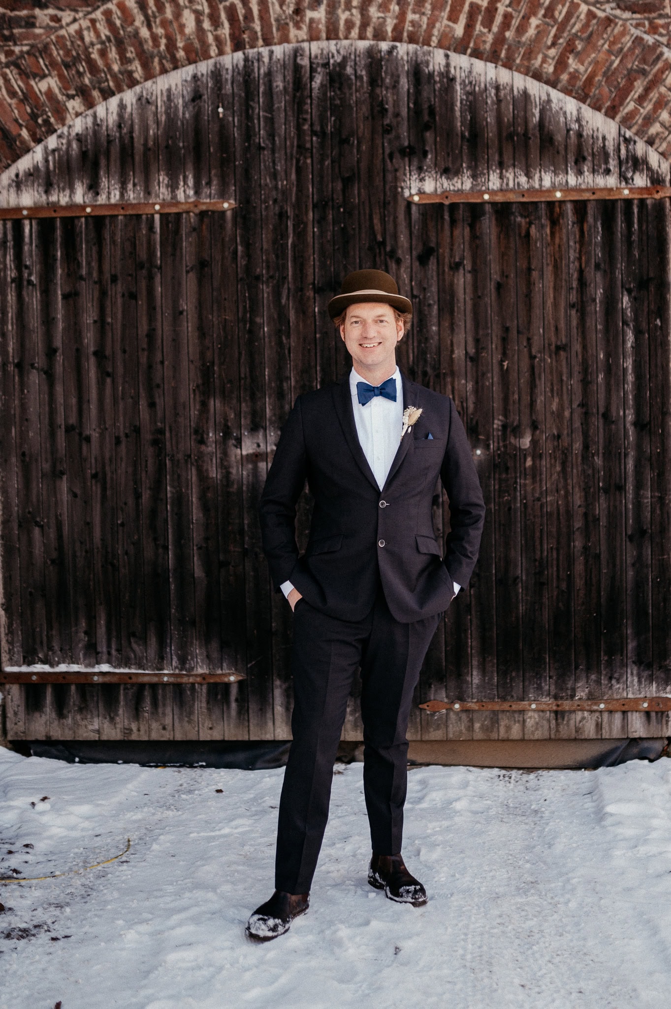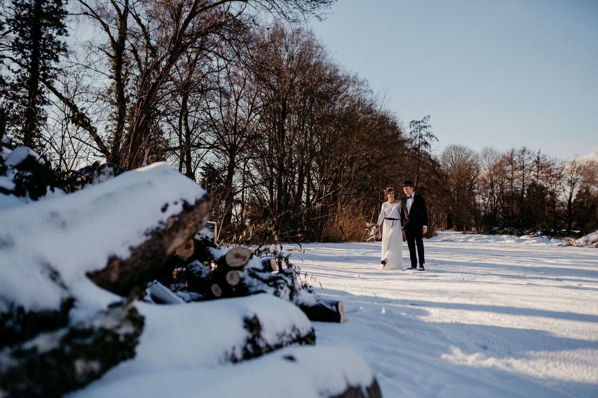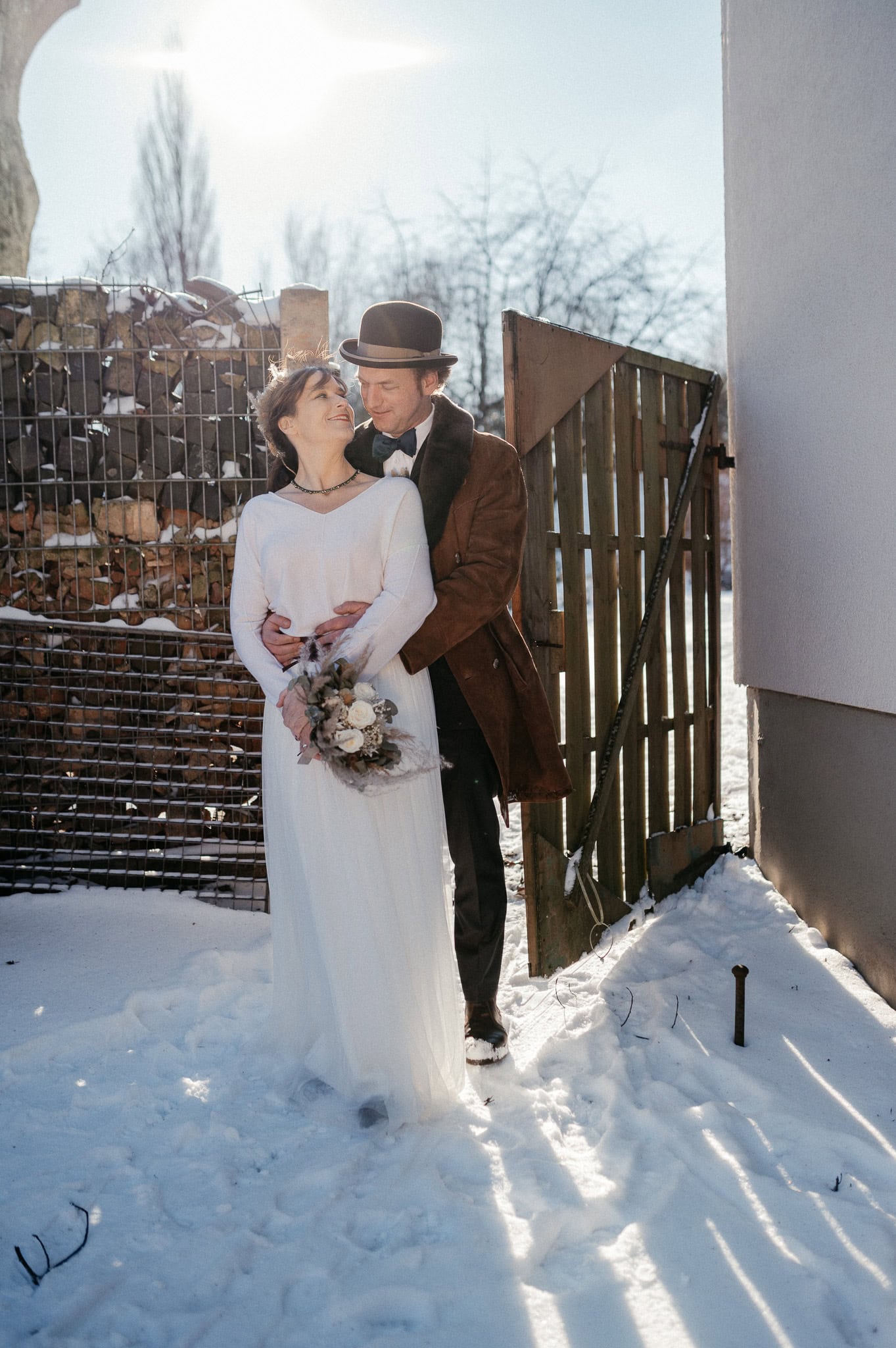 Eine Hochzeit im Schnee ist immer etwas ganz Besonderes. Genau deshalb haben wir diese Kulisse als Hochzeitsfotografen voll ausgekostet. Die Hochzeitsfotos sind am Elternhaus von Kai entstanden – einem alten Bauernhof mit ganz viel Charme und Geschichte.
