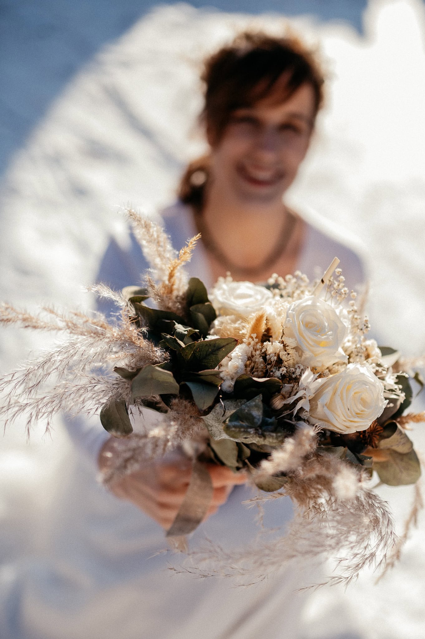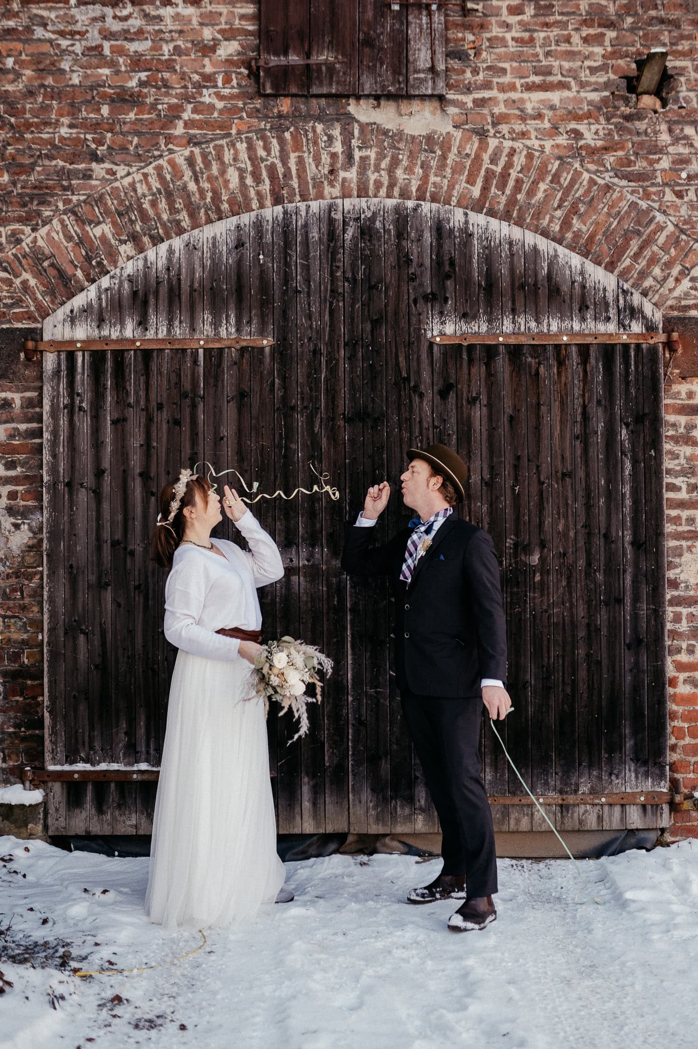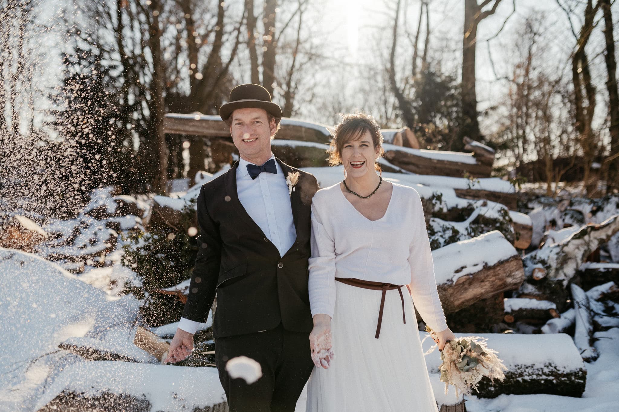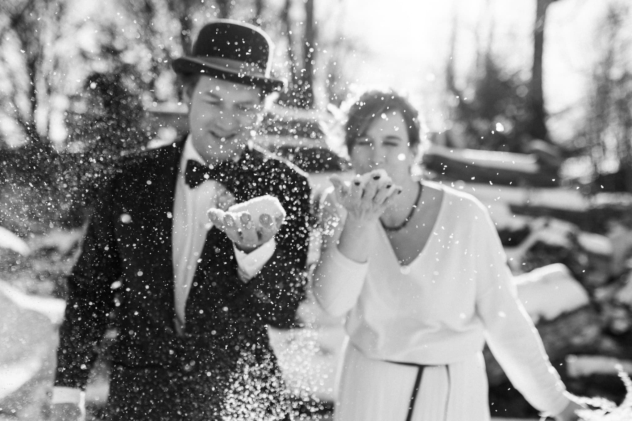 Am allerliebsten mögen wir aber die berühmten „Puste-Schnee-Bilder“. Diese kleinen, verspielten Momente machen Winterhochzeiten für uns so einzigartig. Es braucht nicht viel – nur Nähe, Vertrauen und ein bisschen Schnee.
