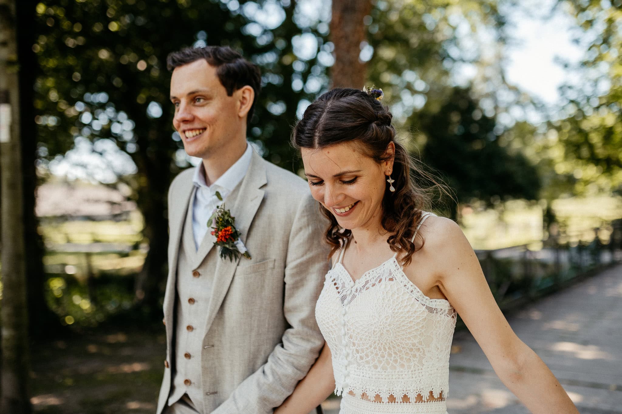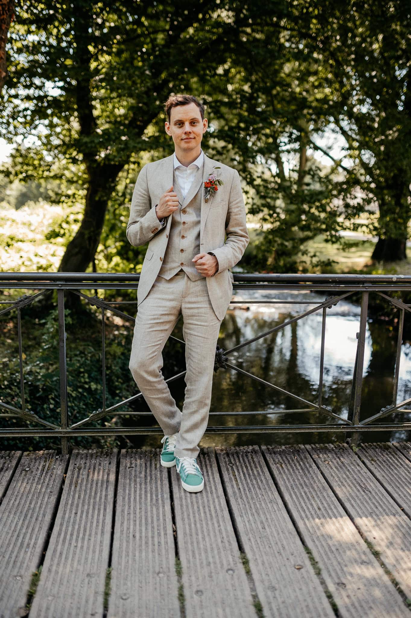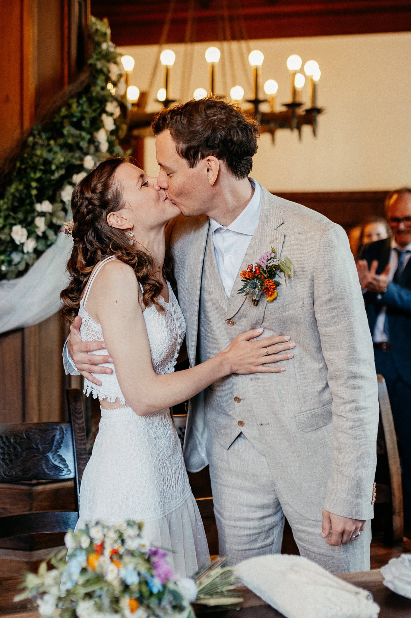 Der Bräutigam ergänzte das Bild ideal: Er wählte einen hellen Anzug in Creme, der nicht nur wunderbar zu ihrem Outfit passte, sondern auch die entspannte Boho-Atmosphäre und die sommerlichen Temperaturen perfekt aufgriff. Zusammen sahen die beiden einfach traumhaft aus – oder was meint ihr?